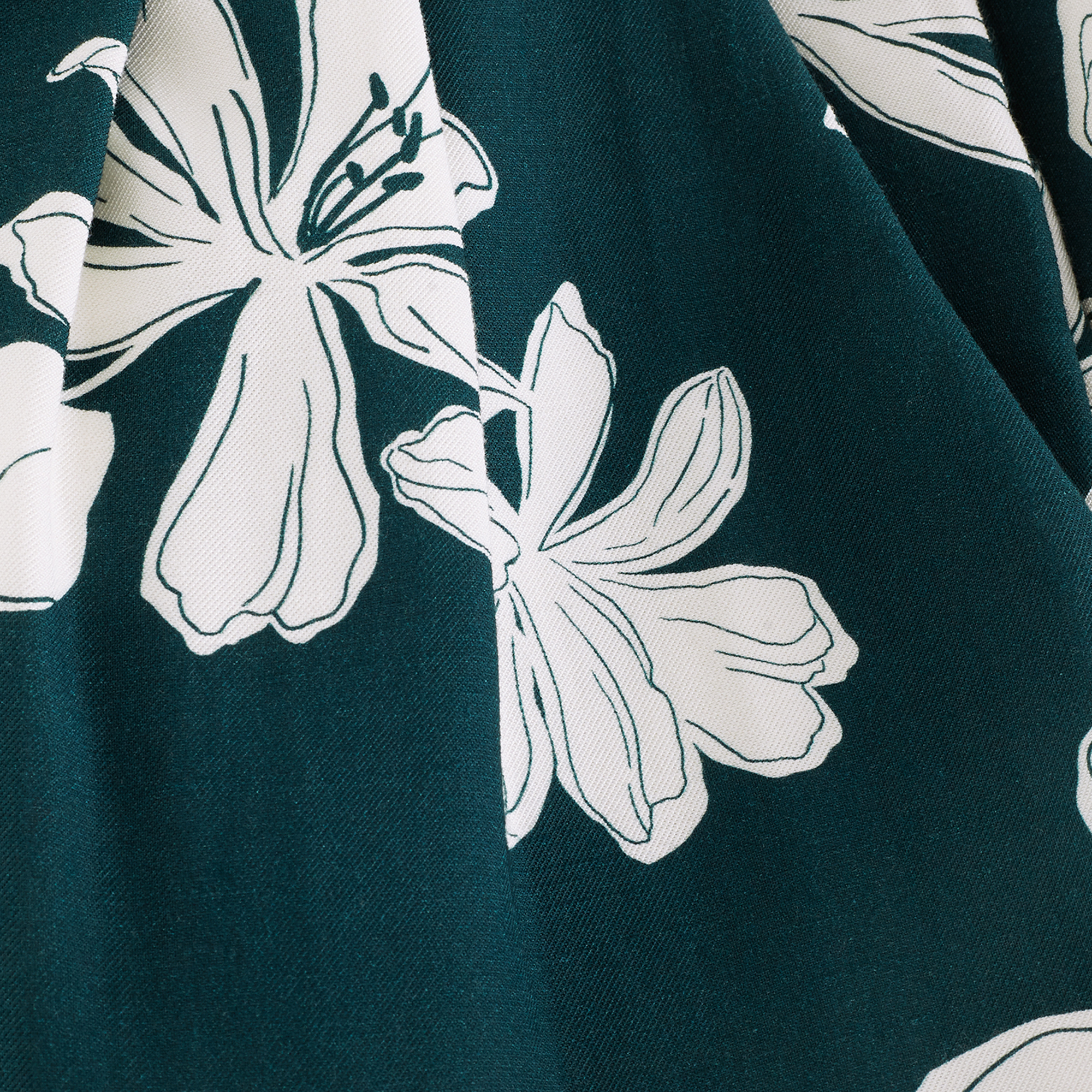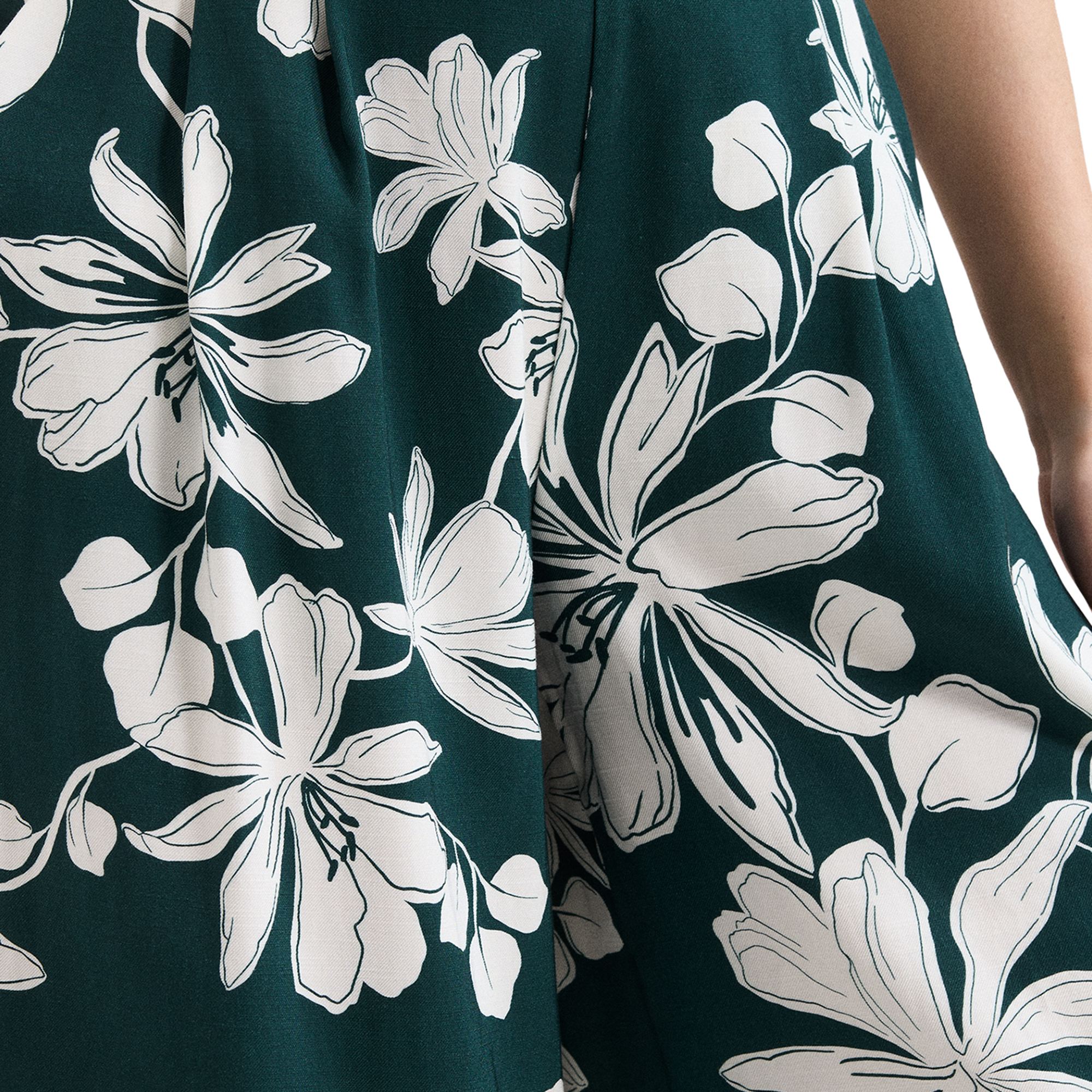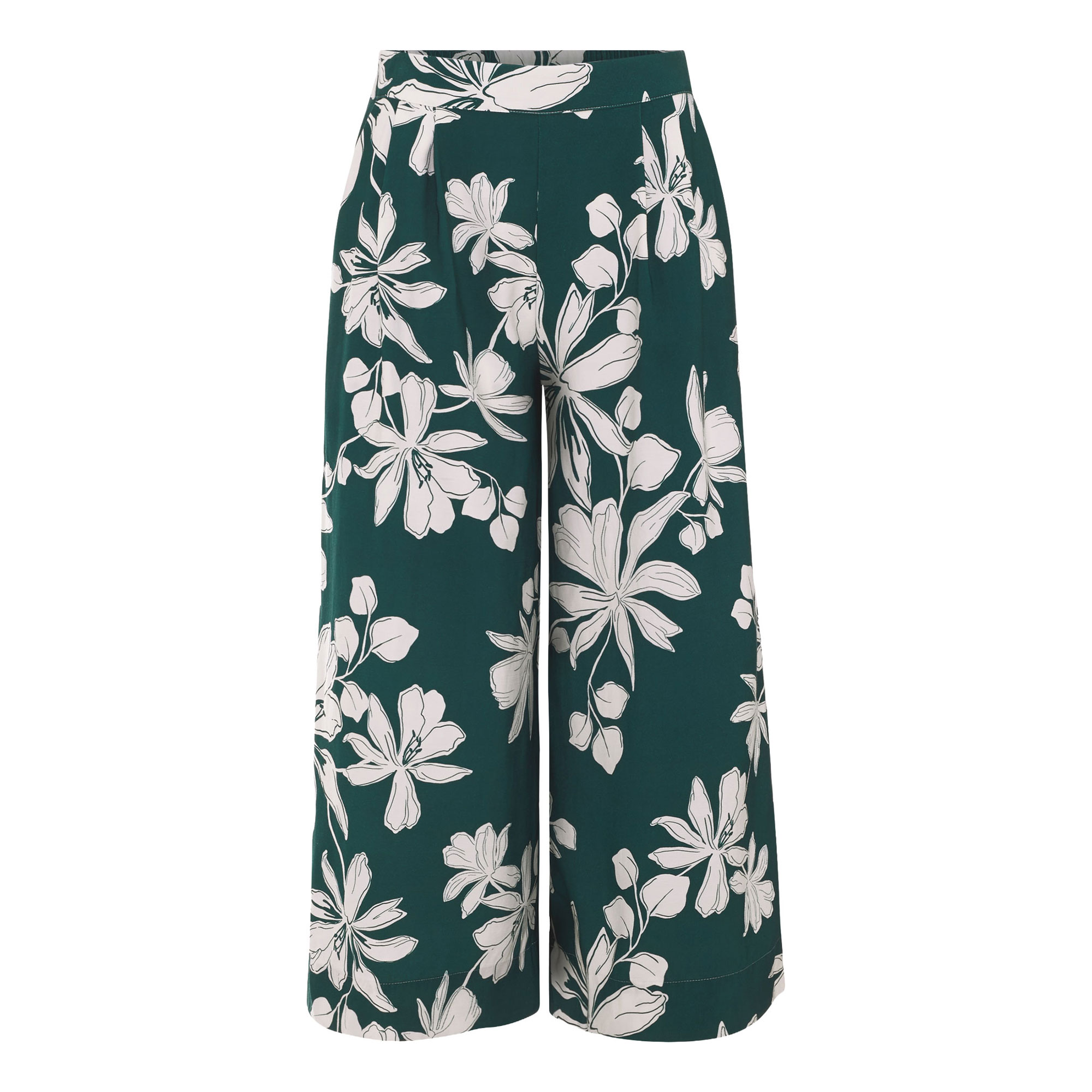 - Mid-rise, wide-leg, cropped length, elasticated waistband, pocket detail, clean hems, floral print