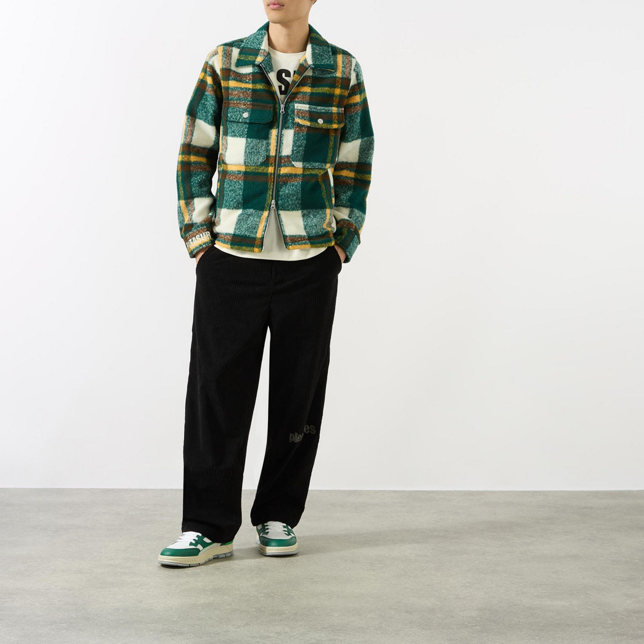 - Flat collar, two-way zip fastening, chest patch pockets, fitted cuffs, curved hemline, check pattern, embroidered logo detail