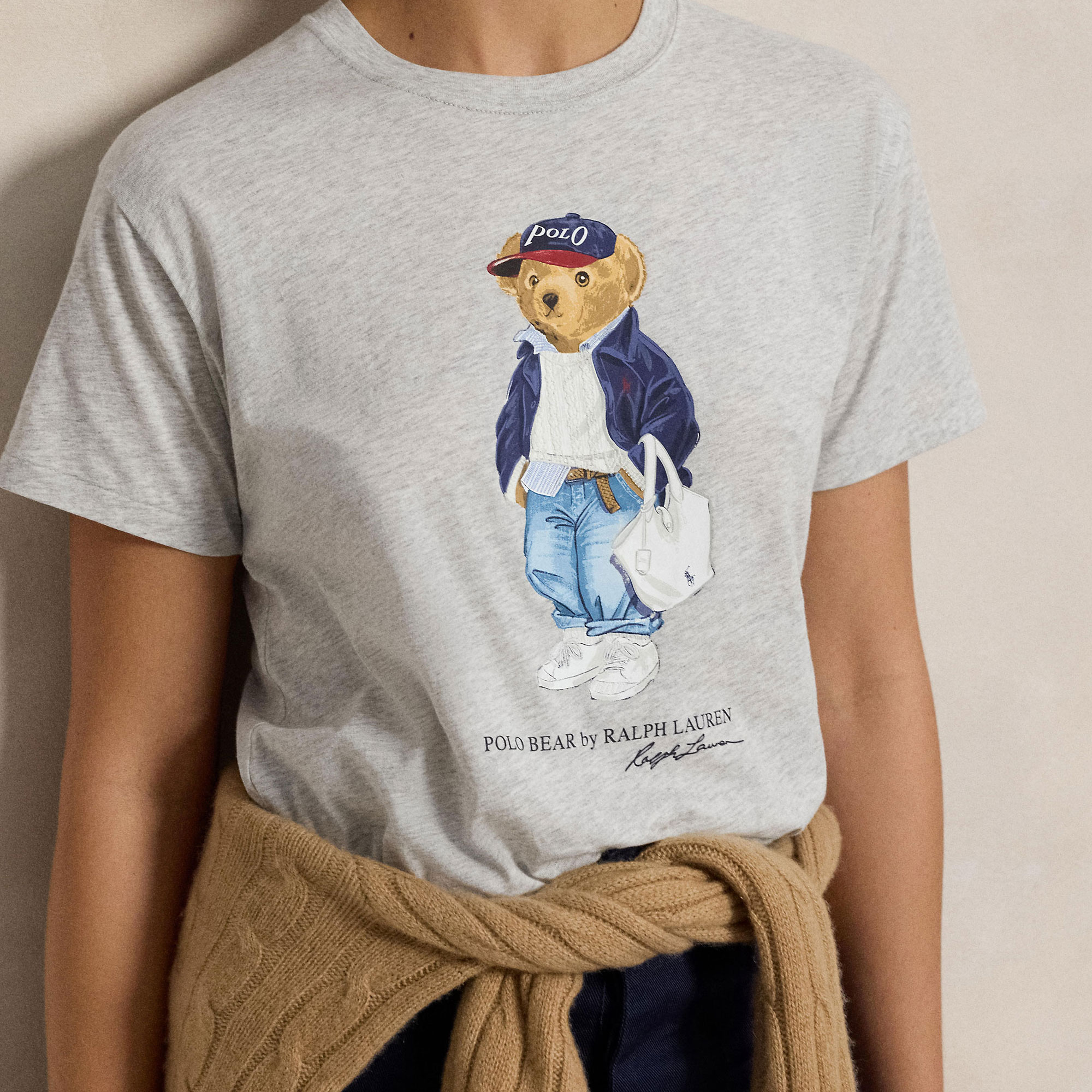 - Polo Bear print, jersey fabric, crew neckline, signature logo detailing, short sleeves, dropped shoulders, embroidered details, straight silhouette