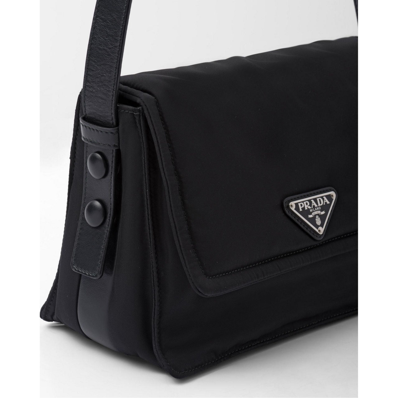 This sleek, compact shoulder bag is crafted from an evolved iteration of one of Prada's signature fabrics, Re-Nylon. The padded construction softens this shoulder bag's sleek lines, and the iconic enamelled triangle logo details the front flap. Style this functional yet elegant accessory with your everyday outfits for a contemporary sign off.