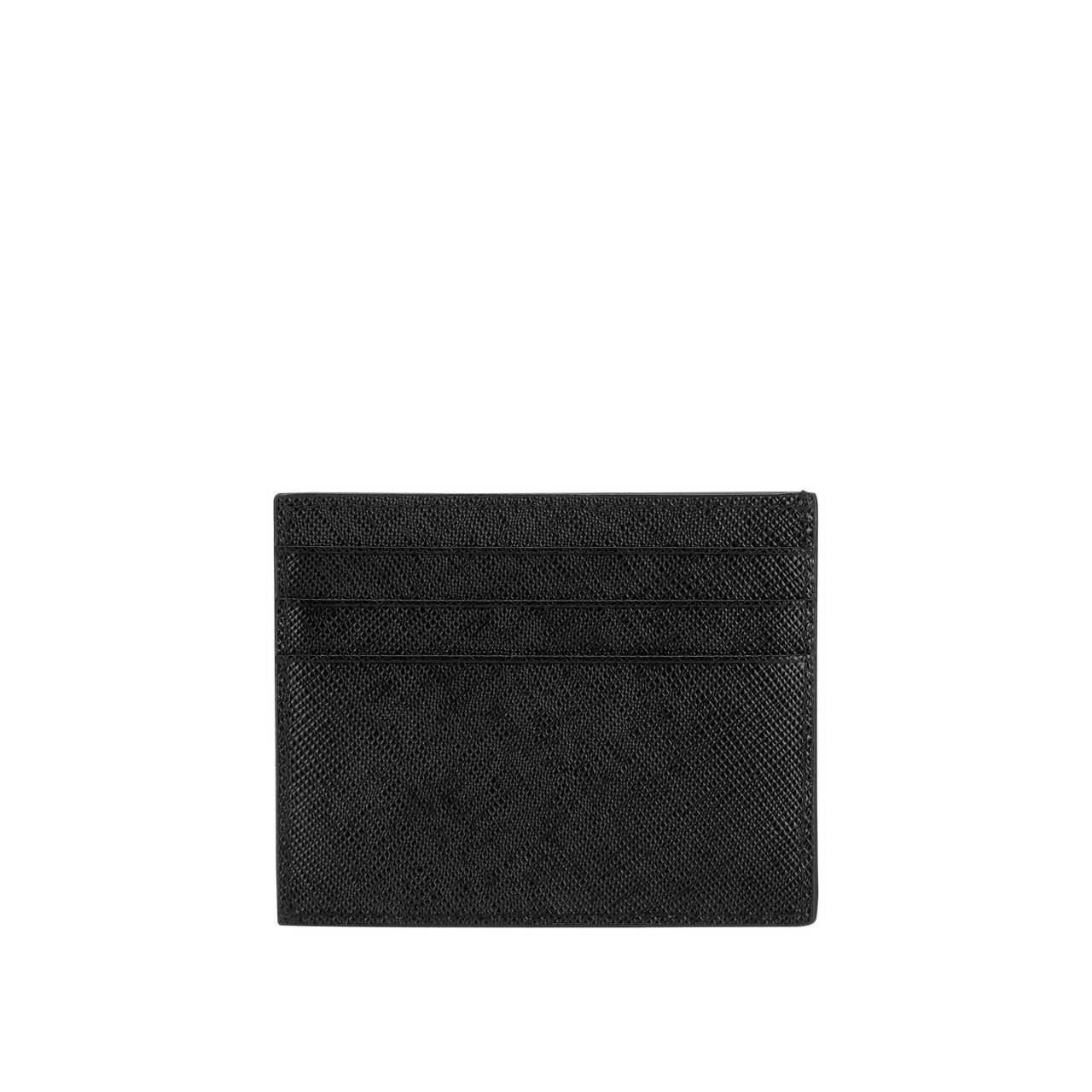 - Six-card slots, triangle logo embellishment, tonal stitching, grained leather finish