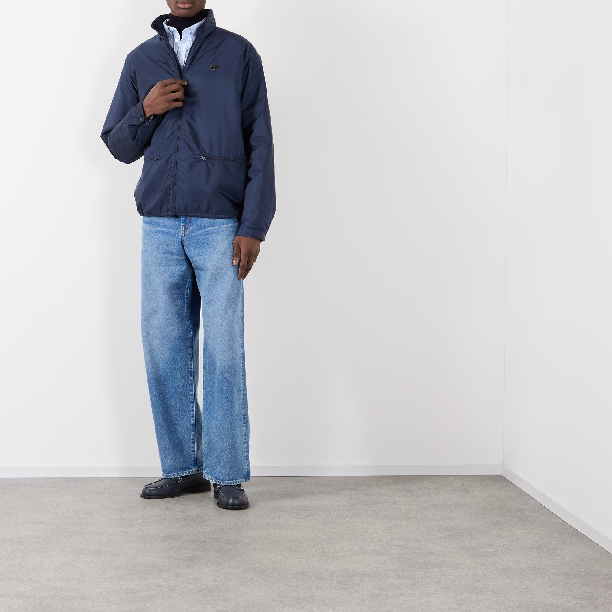 • Funnel neck, stowable hood with zip fastening, long sleeves, snap buttoned cuffs, two-way front zip fastening, two horizontal pockets with zip fastenings, straight hem, triangle logo hardware