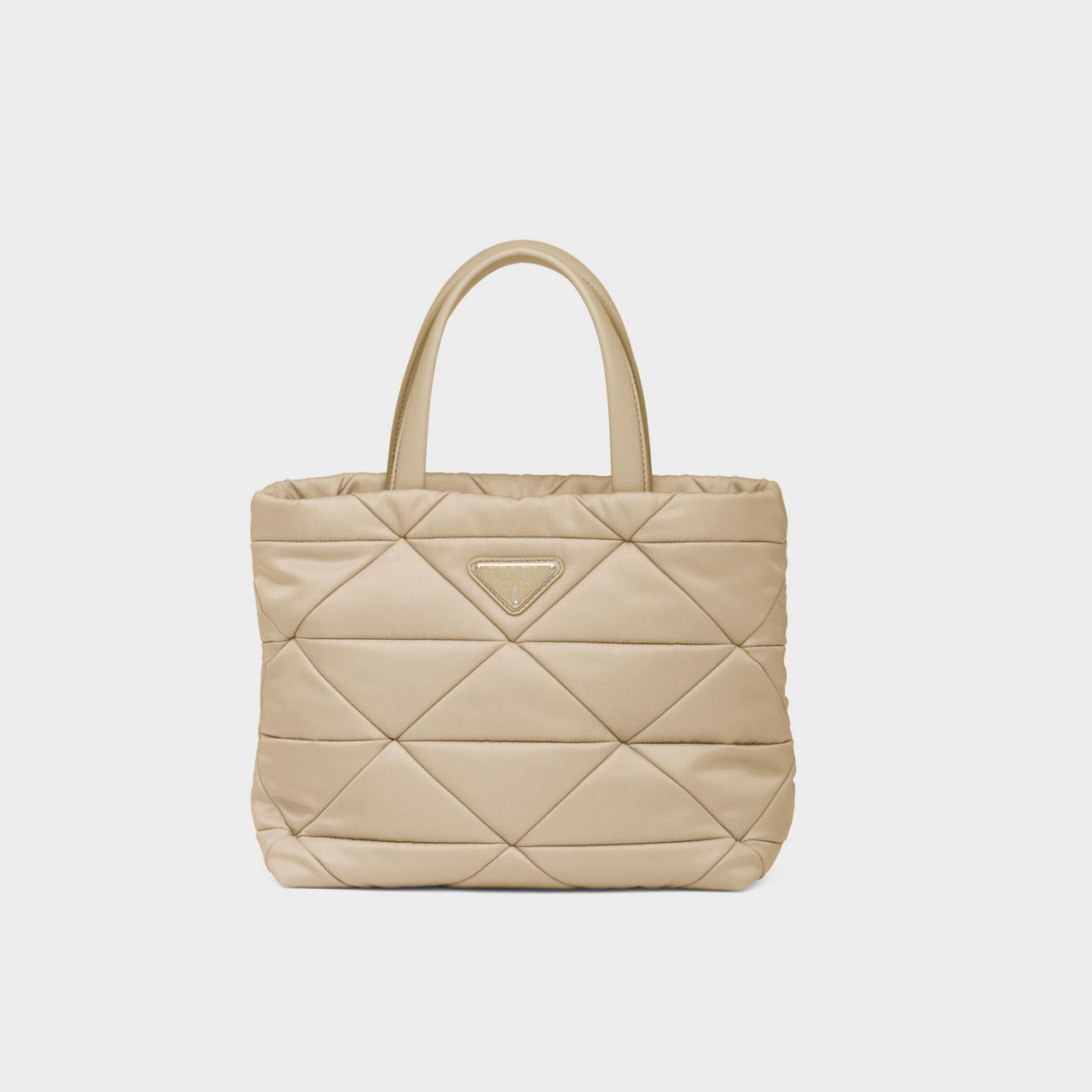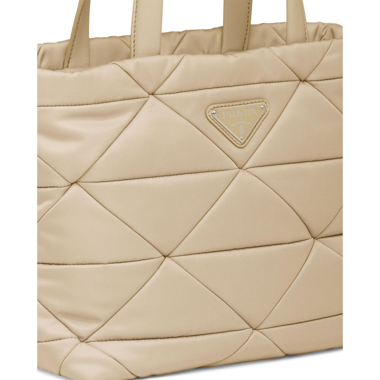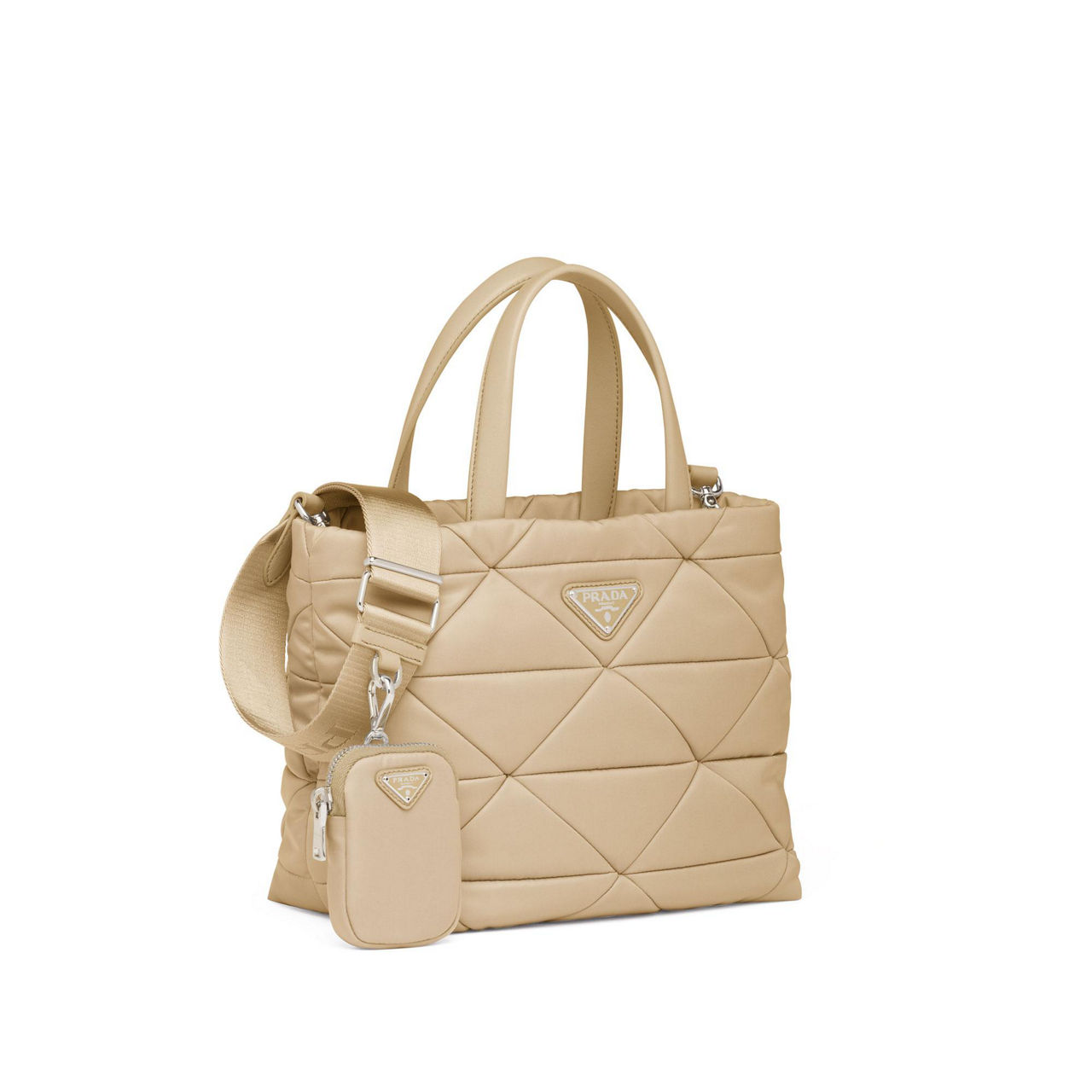 Since it first appeared over 100 years ago, Prada's instantly recognisable triangle logo has had many interpretations and on this tote bad it forms the quilting. Crafted from the house's signature Re-Nylon fabric, it unzips to reveal a spacious interior, while a detachable pouch on the strap keeps all the essentials close at hand.