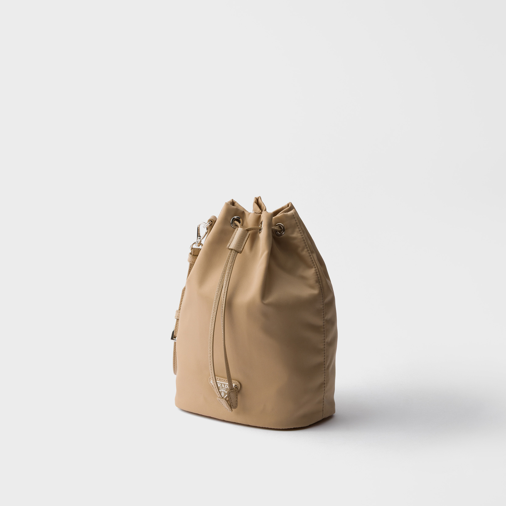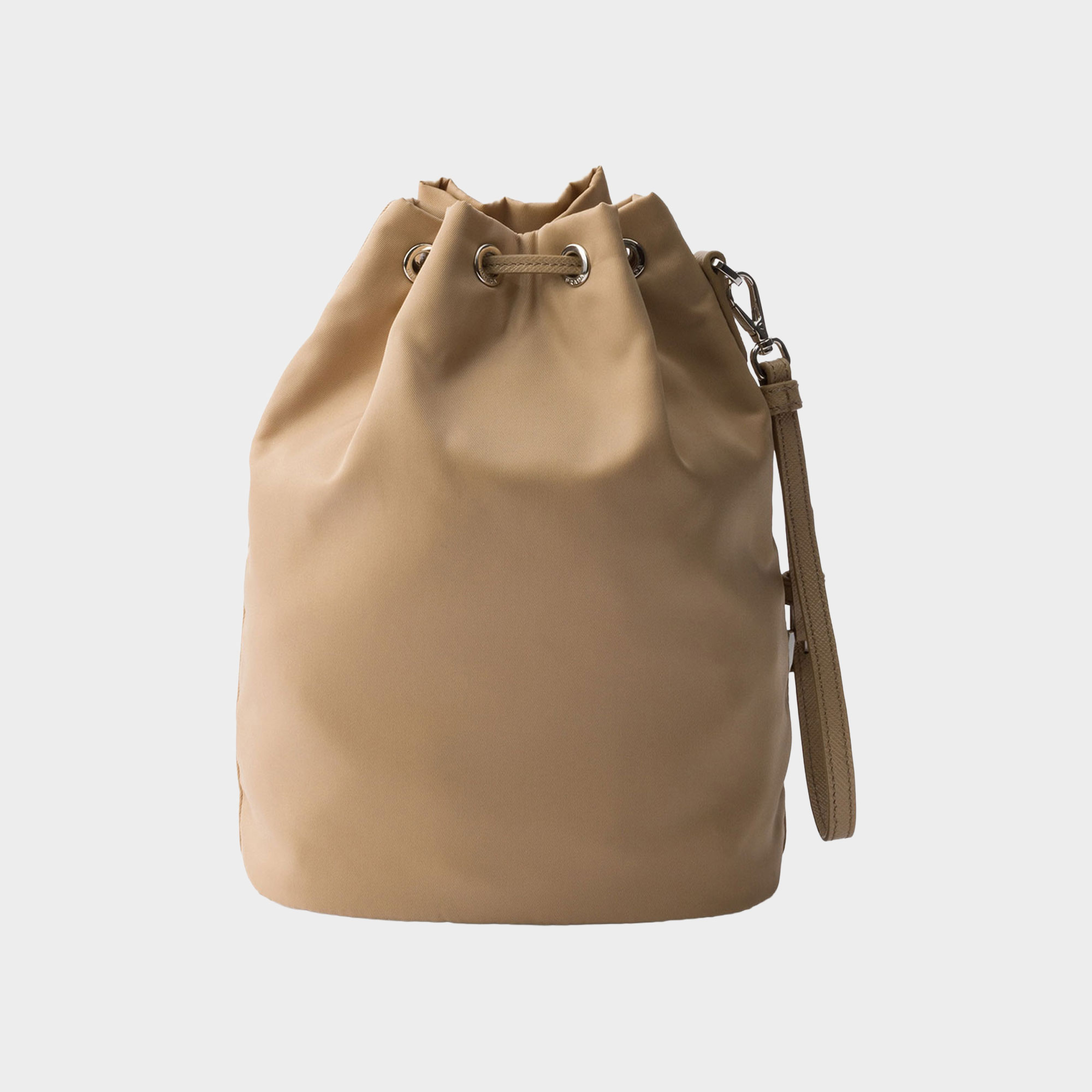• Drawstring closure, enamelled metal triangle logo, removable leather wristlet, ReNylon lining