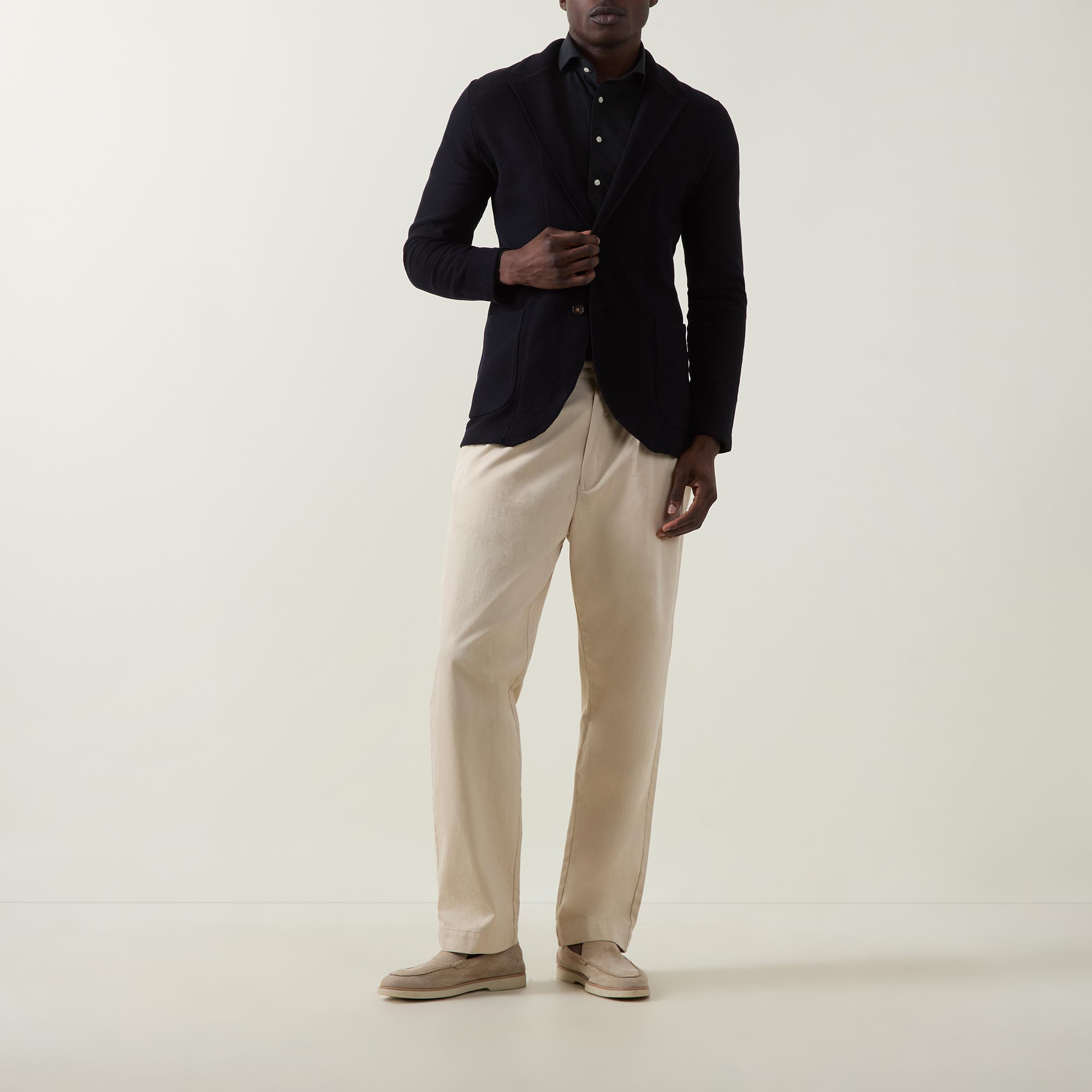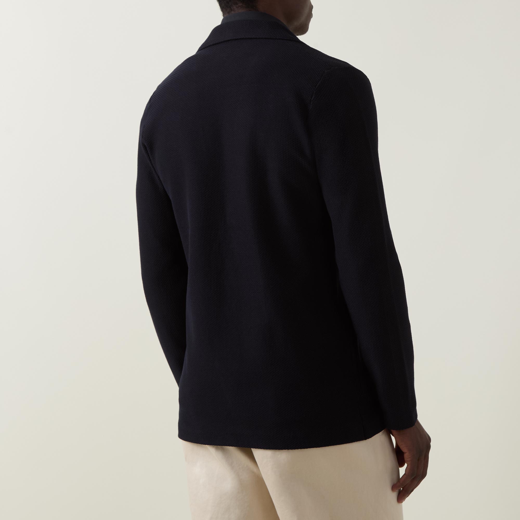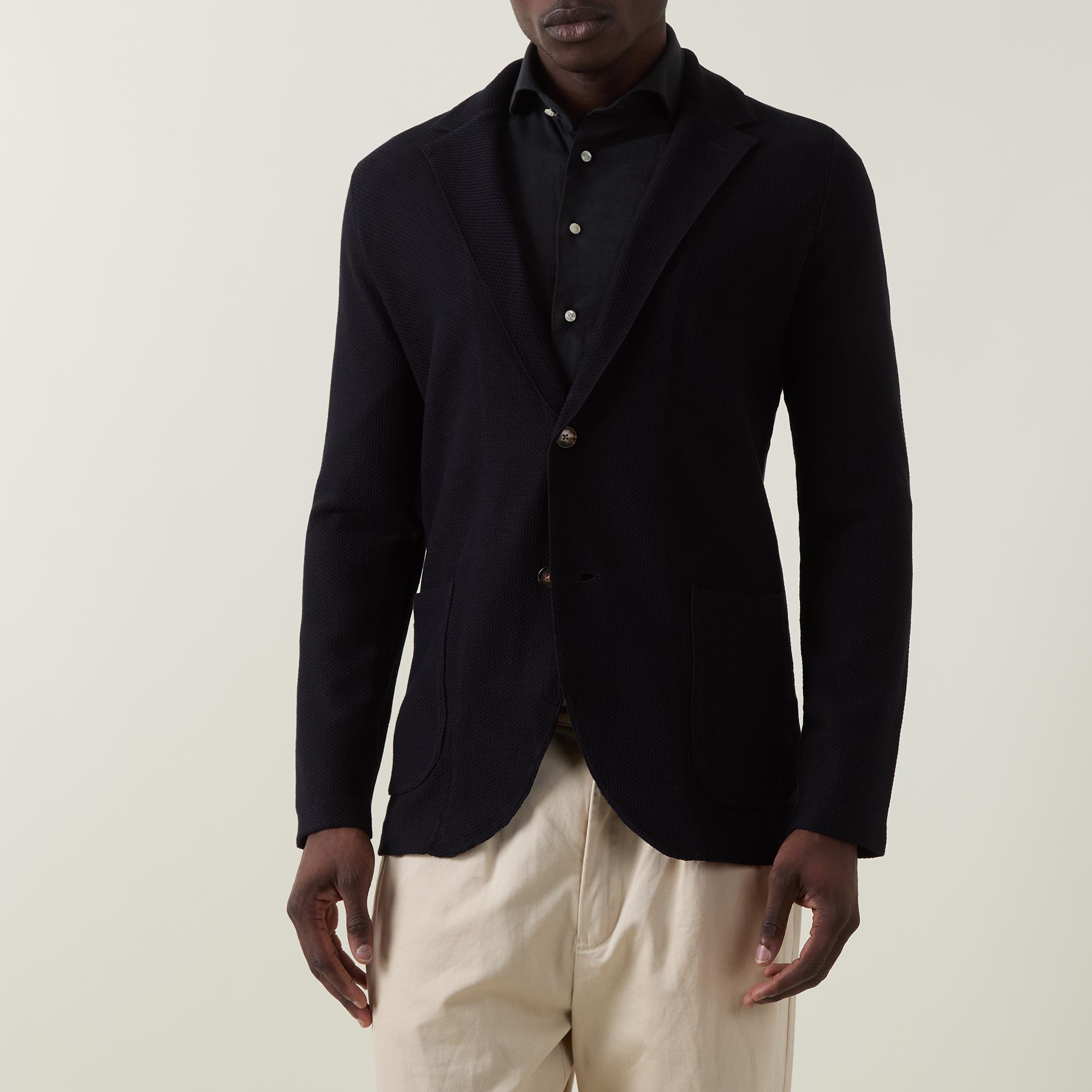 - Single-breasted, long sleeves, regular fit, honeycomb texture, two button fastenings, two side patch pockets