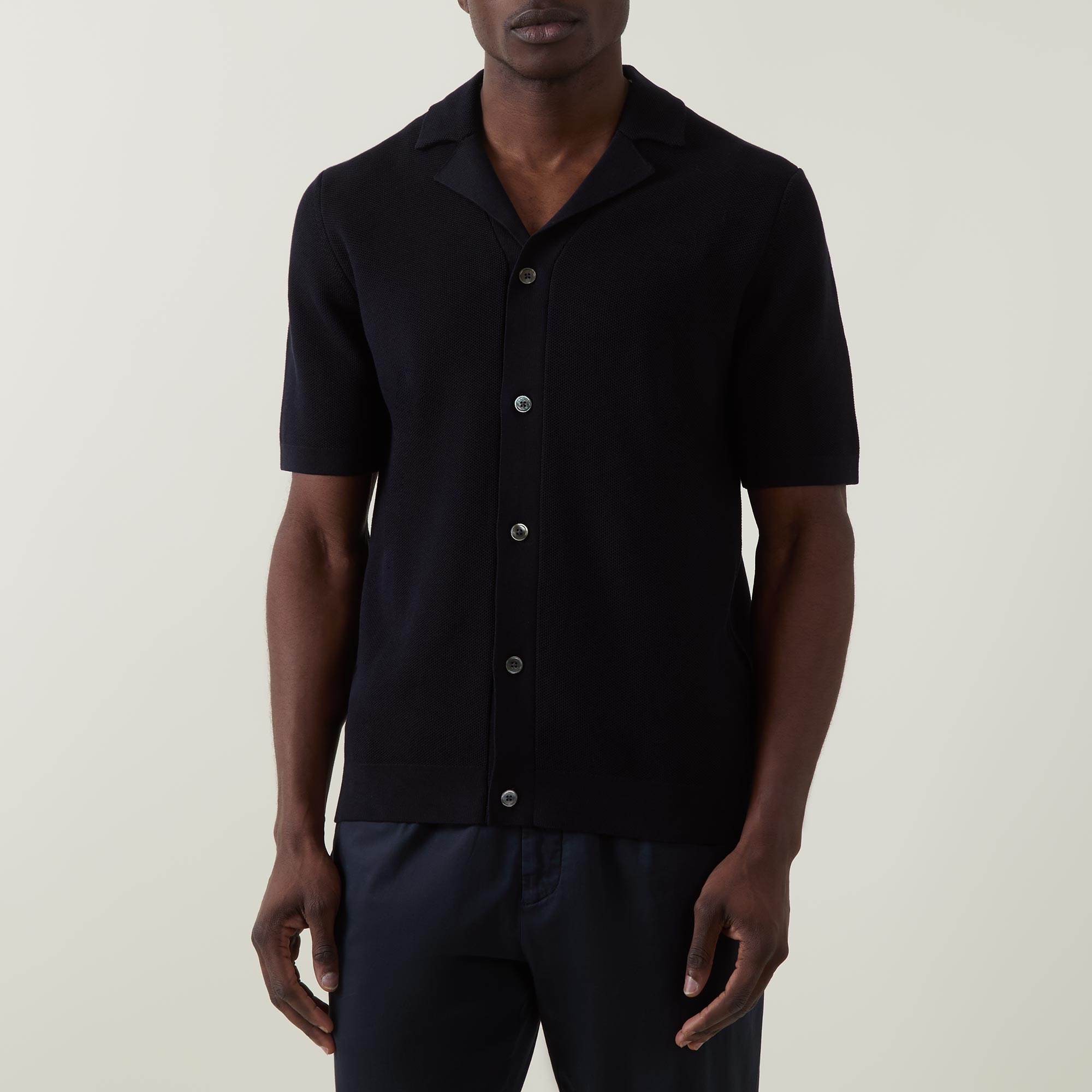 - Short sleeves, button fastenings, noted collar, regular fit