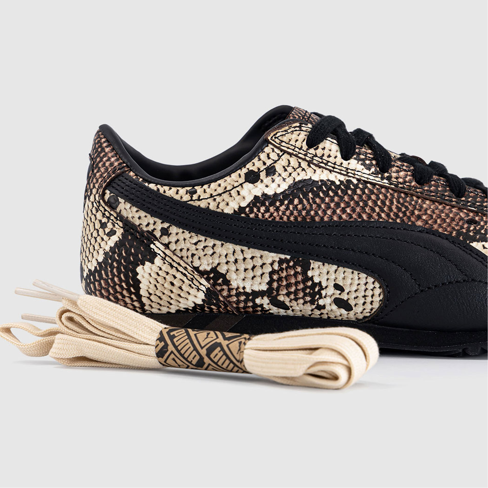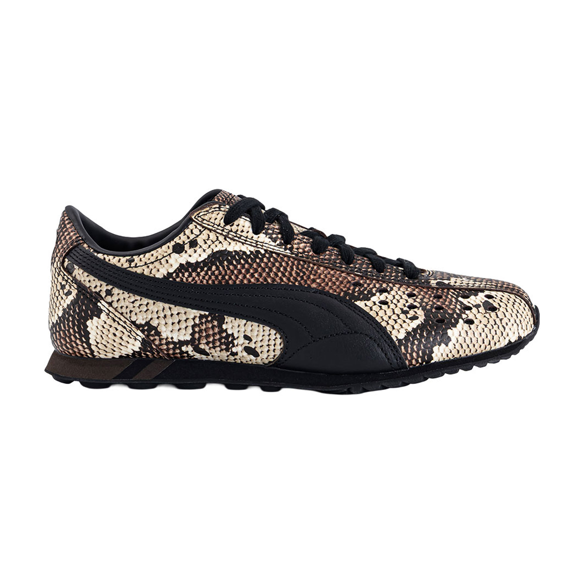 Straight from the archives and into the streets, the PUMA Sprint blends early 2000s running heritage with modern lifestyle flair. Featuring a sleek black upper with breathable perforations and a crisp white form strip, this shoe delivers timeless style with a sporty edge. Gold branding details on the side and heel add a refined touch, while the cushioned moulded footbed ensures all-day comfort. A durable rubber outsole provides reliable traction, making it perfect for everyday wear. Finished with a rounded toe and lace-up closure, the Sprint is your go-to for effortless style and performance.