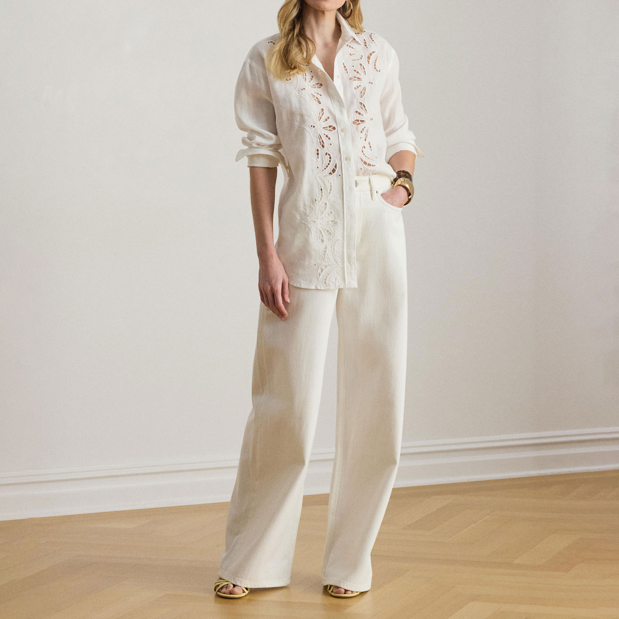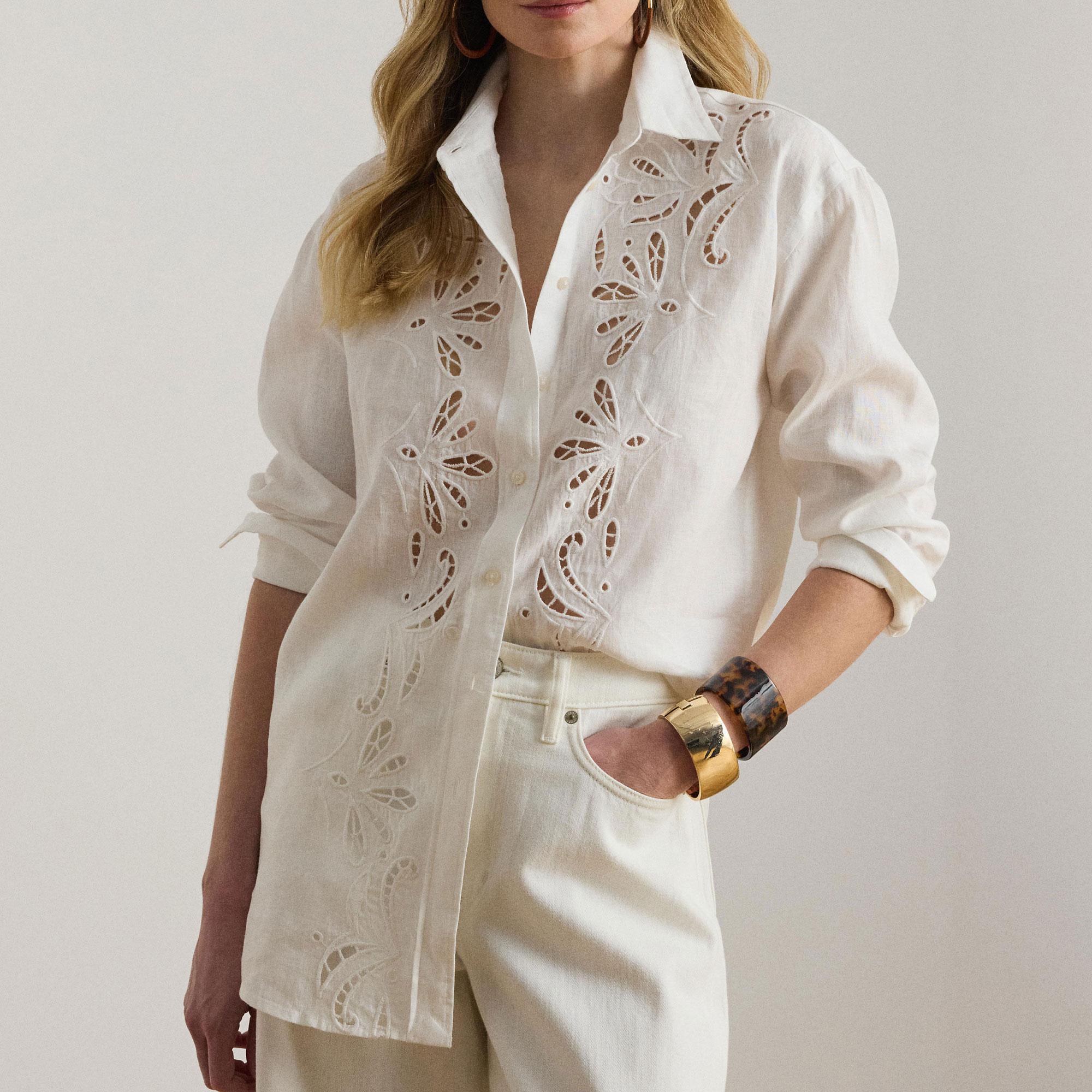 - Composition and Care: Shell: 100% linen. Eyelet embroidery: 100% polyester. Machine wash or dry clean