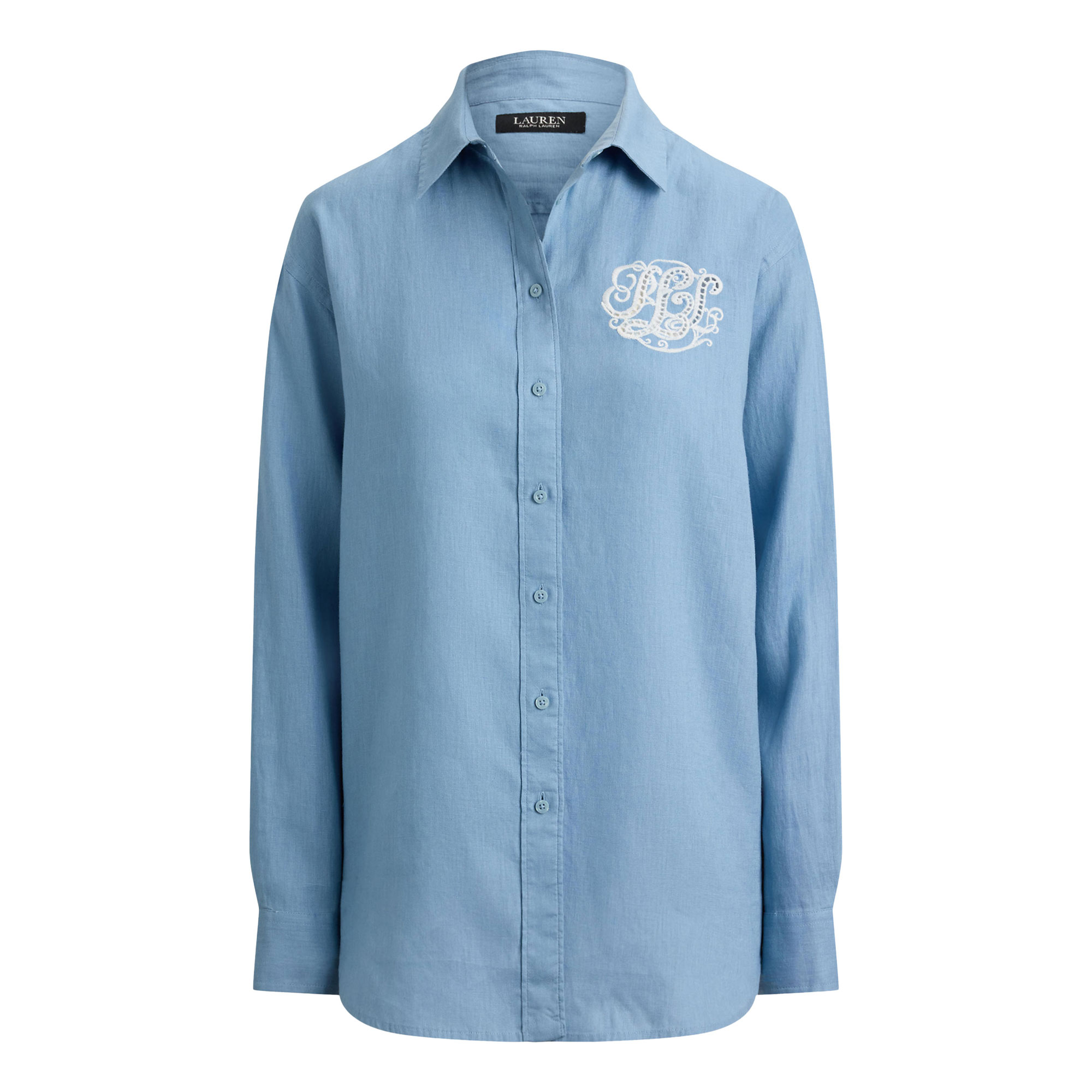 LAUREN Eyelet-Logo Linen Shirt