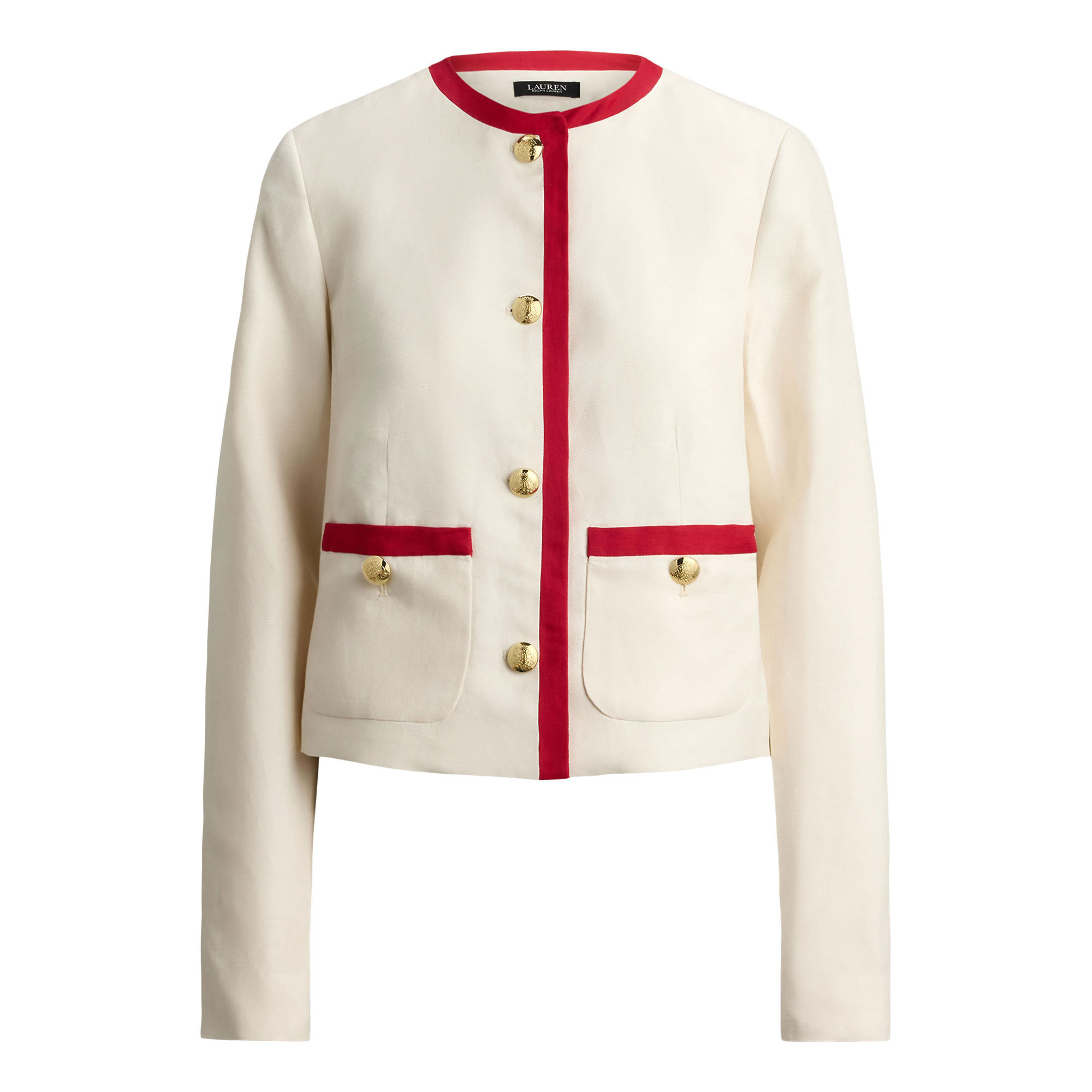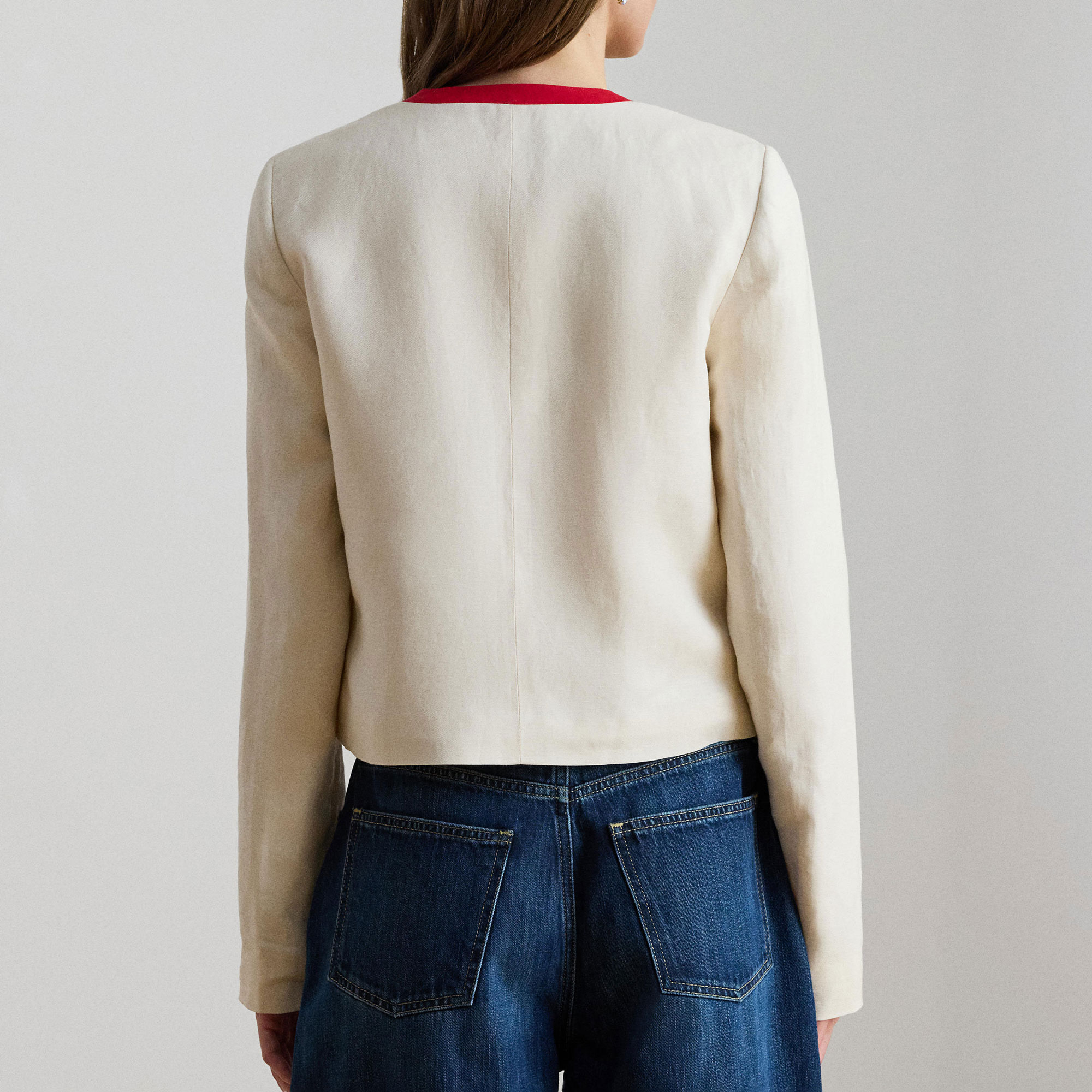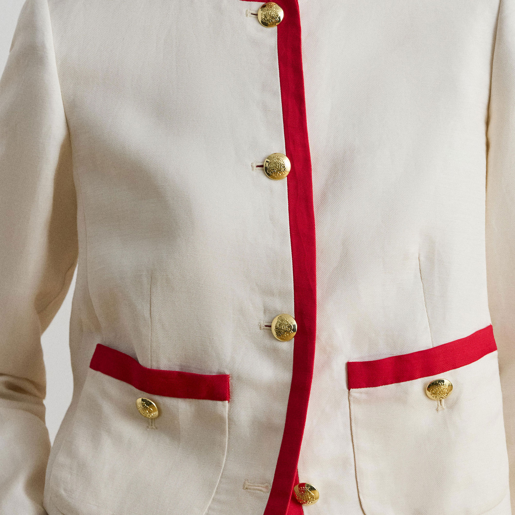 - Composition and Care: Shell: 55% linen, 45% viscose. Lining: 94% polyester, 6% elastane. Dry clean