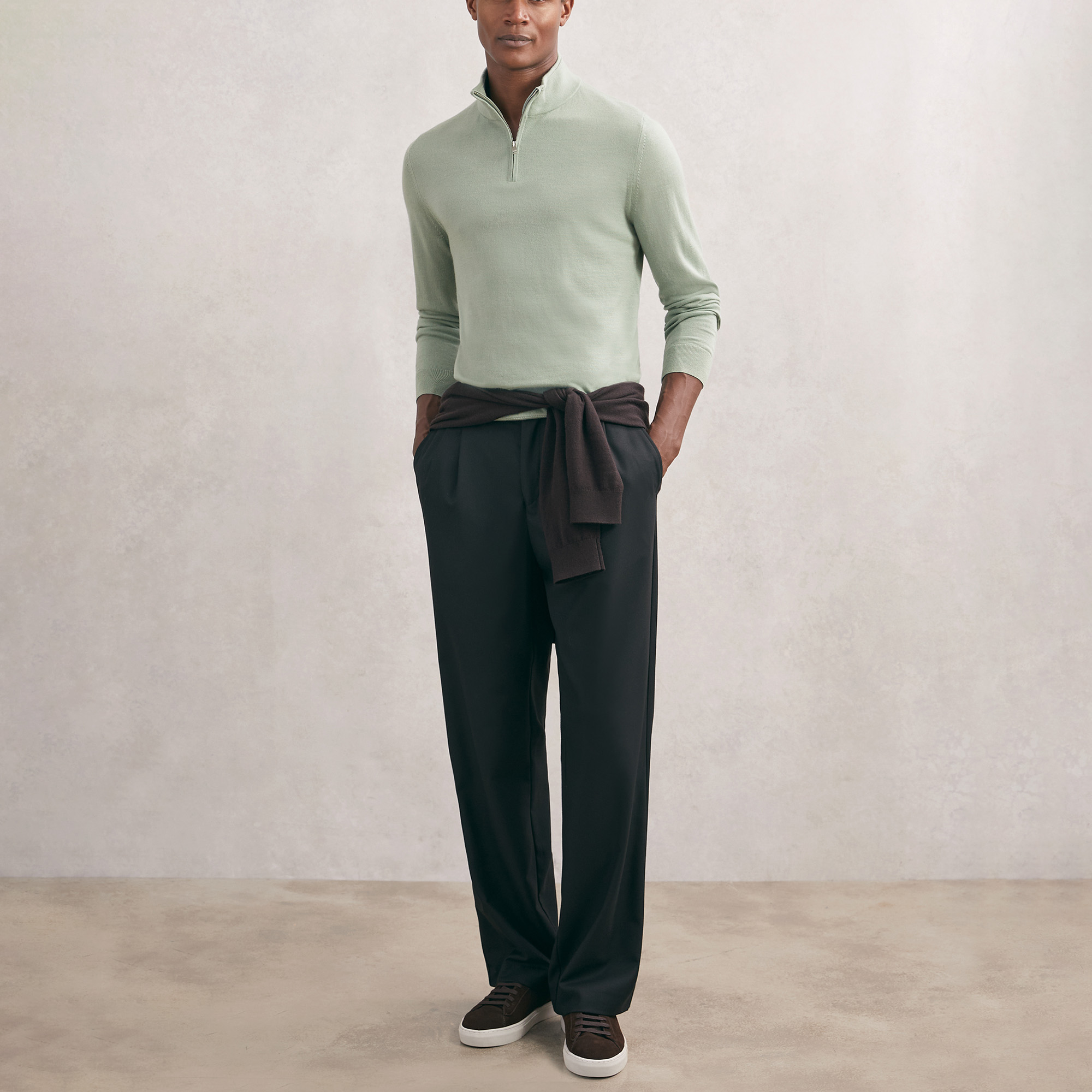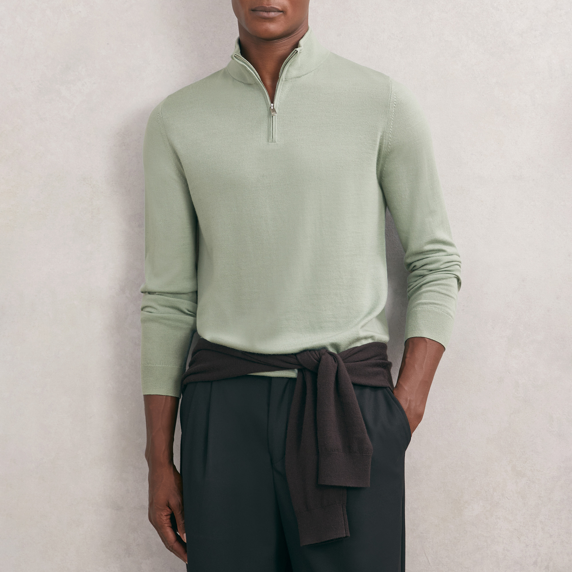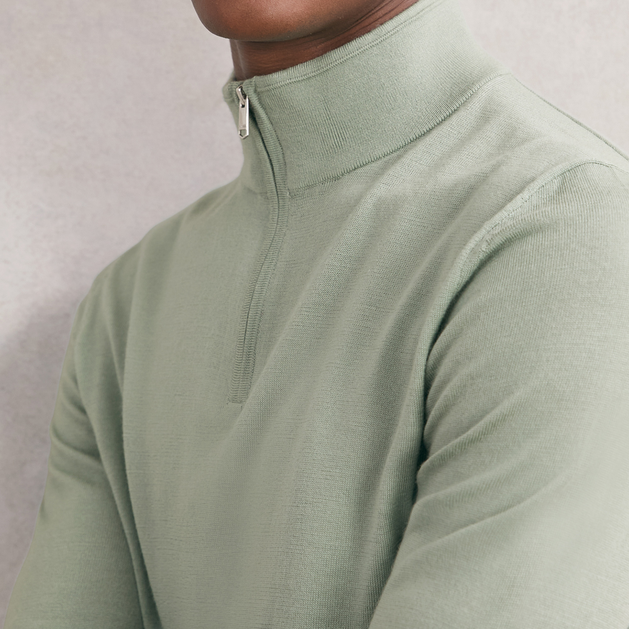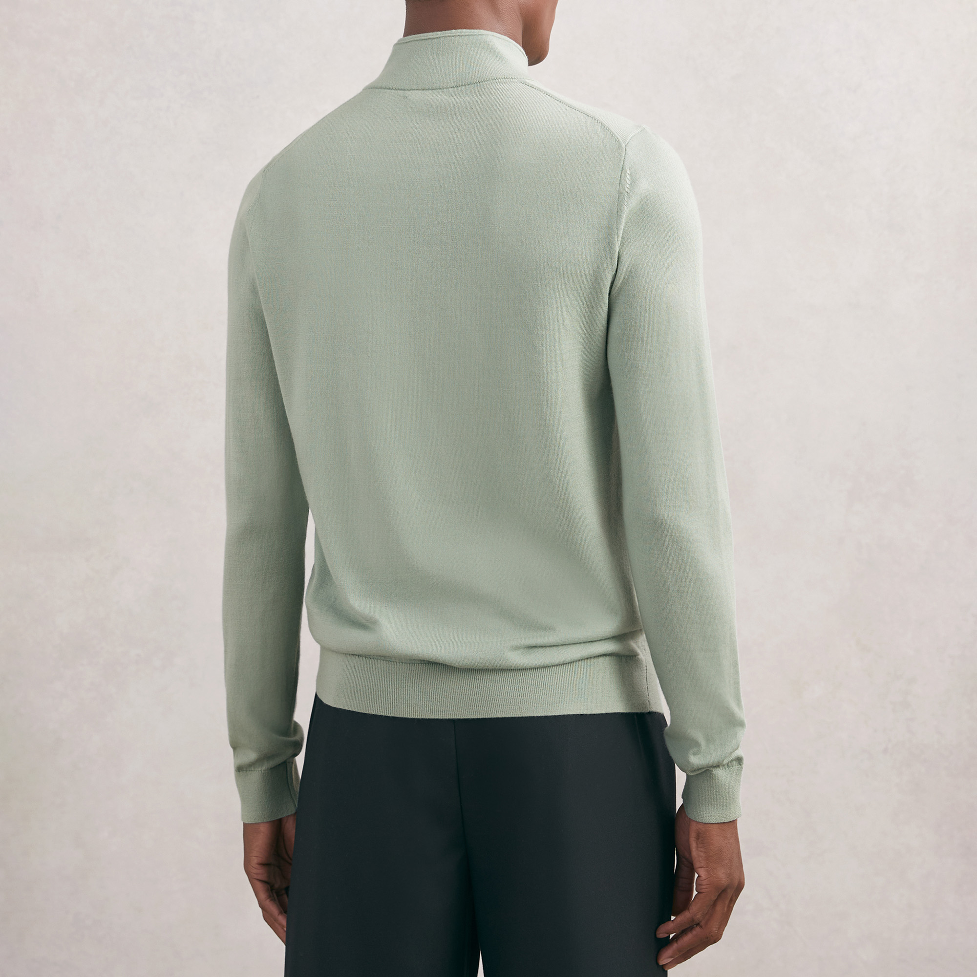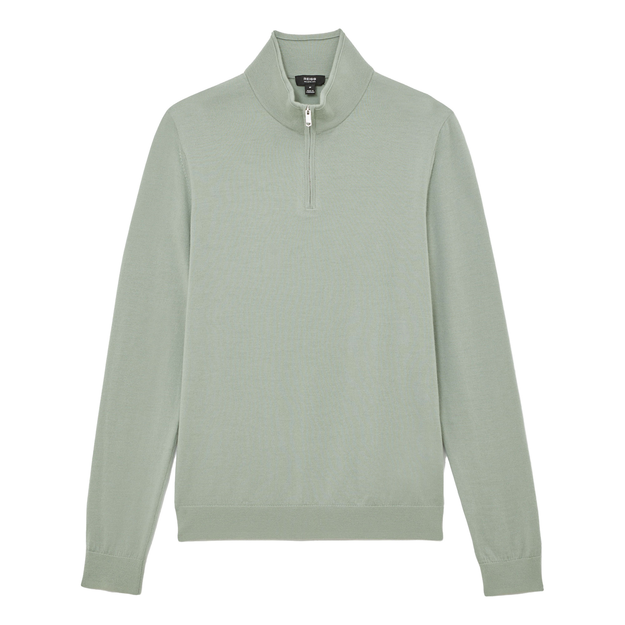 • Half-zip fastening, extra-fine merino wool, ribbed trims, funnel neckline