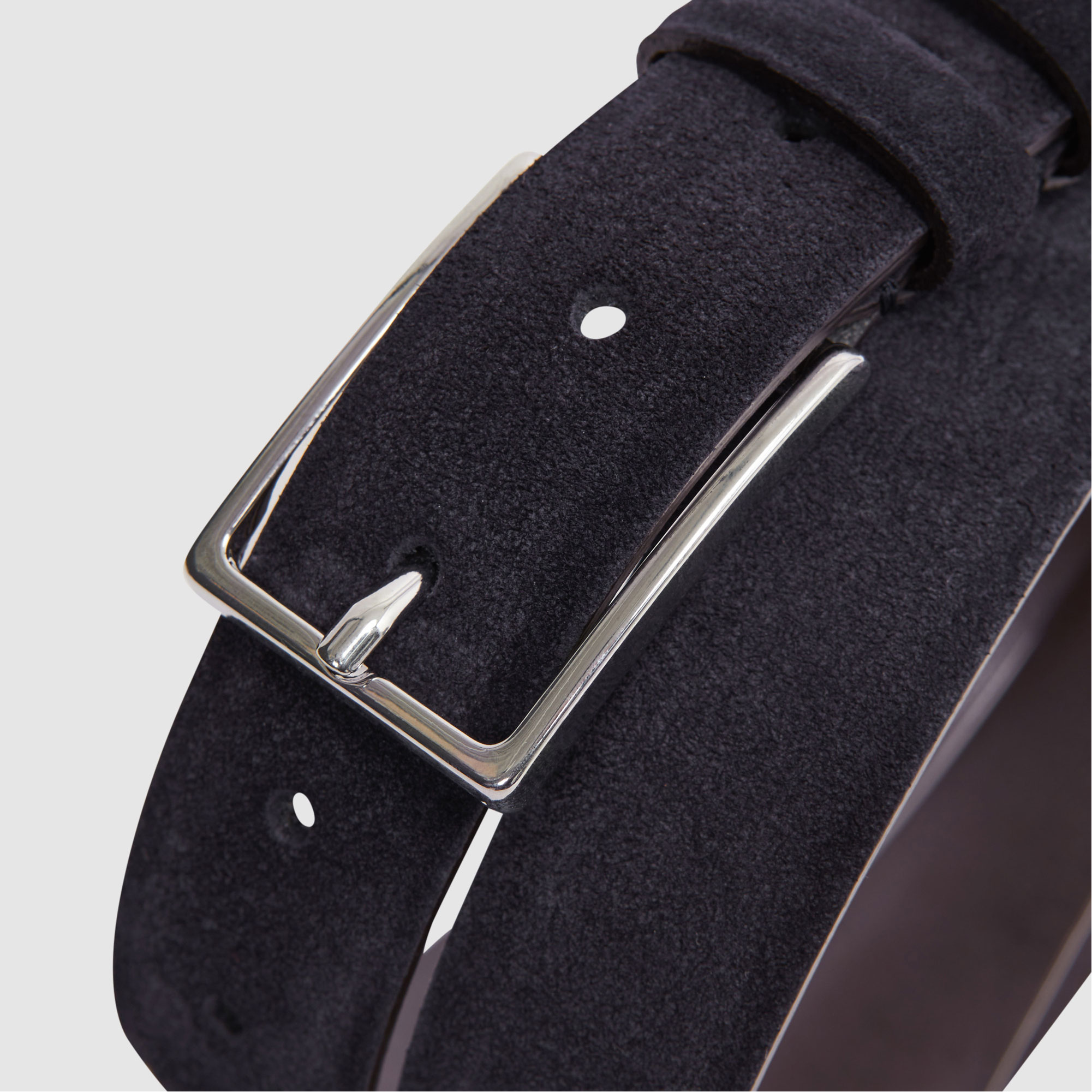 • Adjustable slim rectangle buckle, silver-tone hardware, suede finish