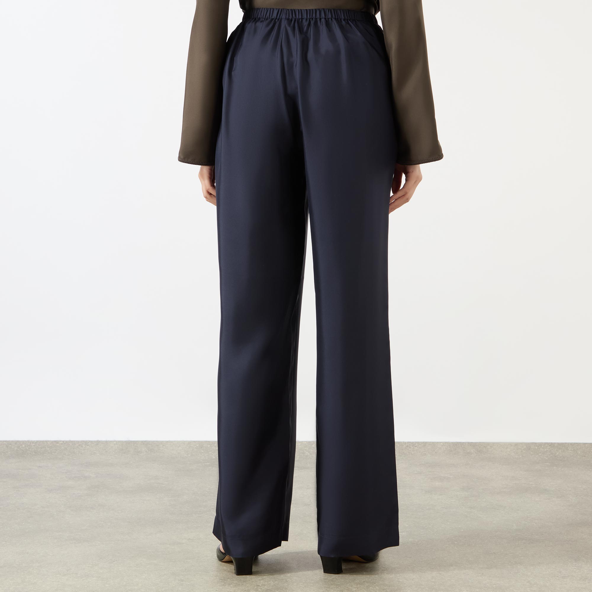 - Mid-rise, wide-leg, full-length, elasticated waistband, faux fly with button detailing, two side entry pockets, clean hems, smooth finish