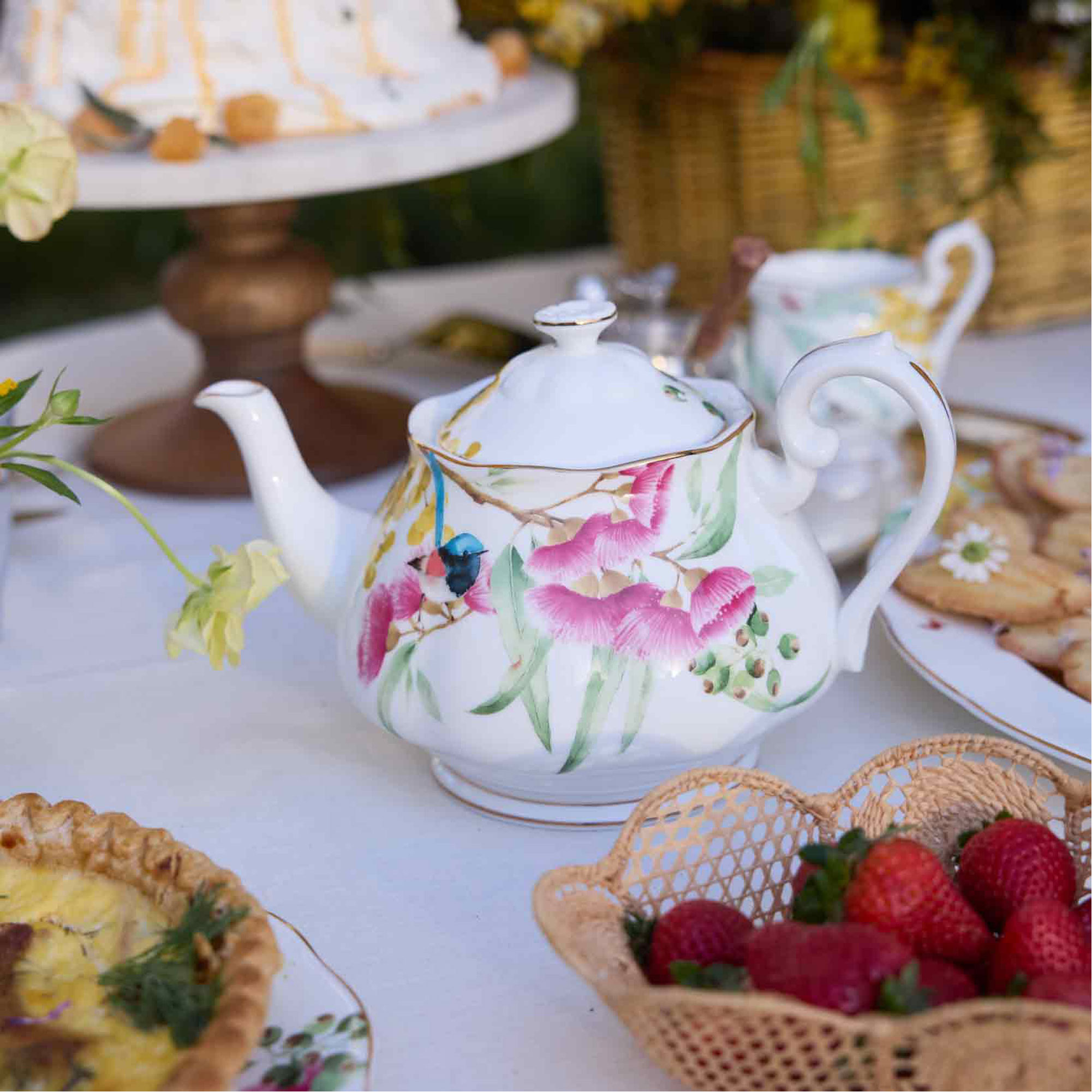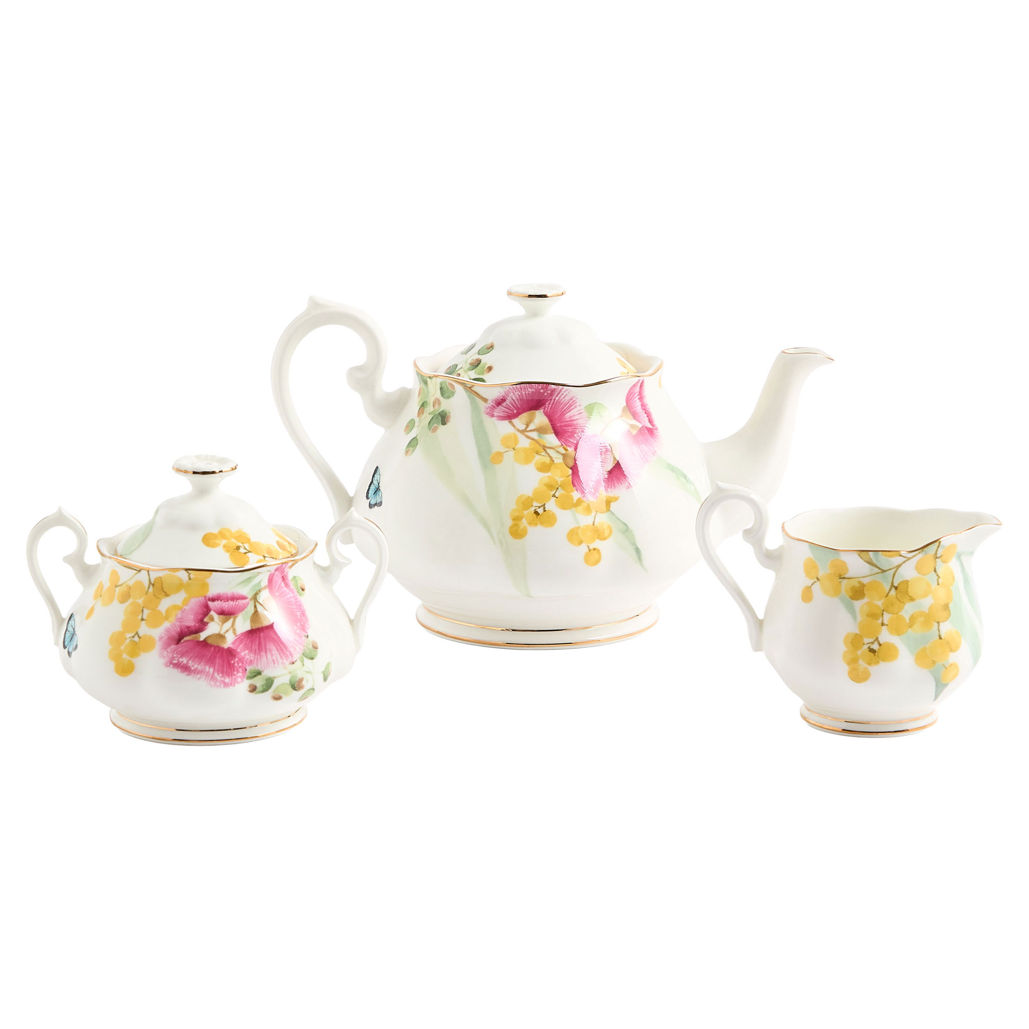 - Includes: One teapot, one sugar pot, one cream jug