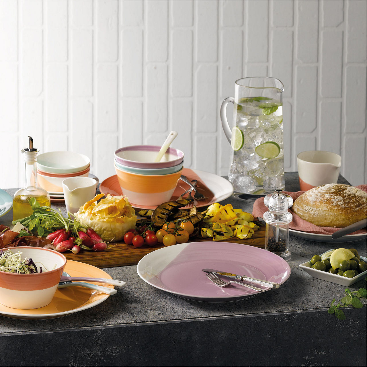 Crafted from porcelain, this set of four 1815 Bright dinner plates by Royal Doulton is a great way to add colour to your table. Stacking to save kitchen cabinet space, this plate set mixes effortlessly with other items in the 1815 collection.