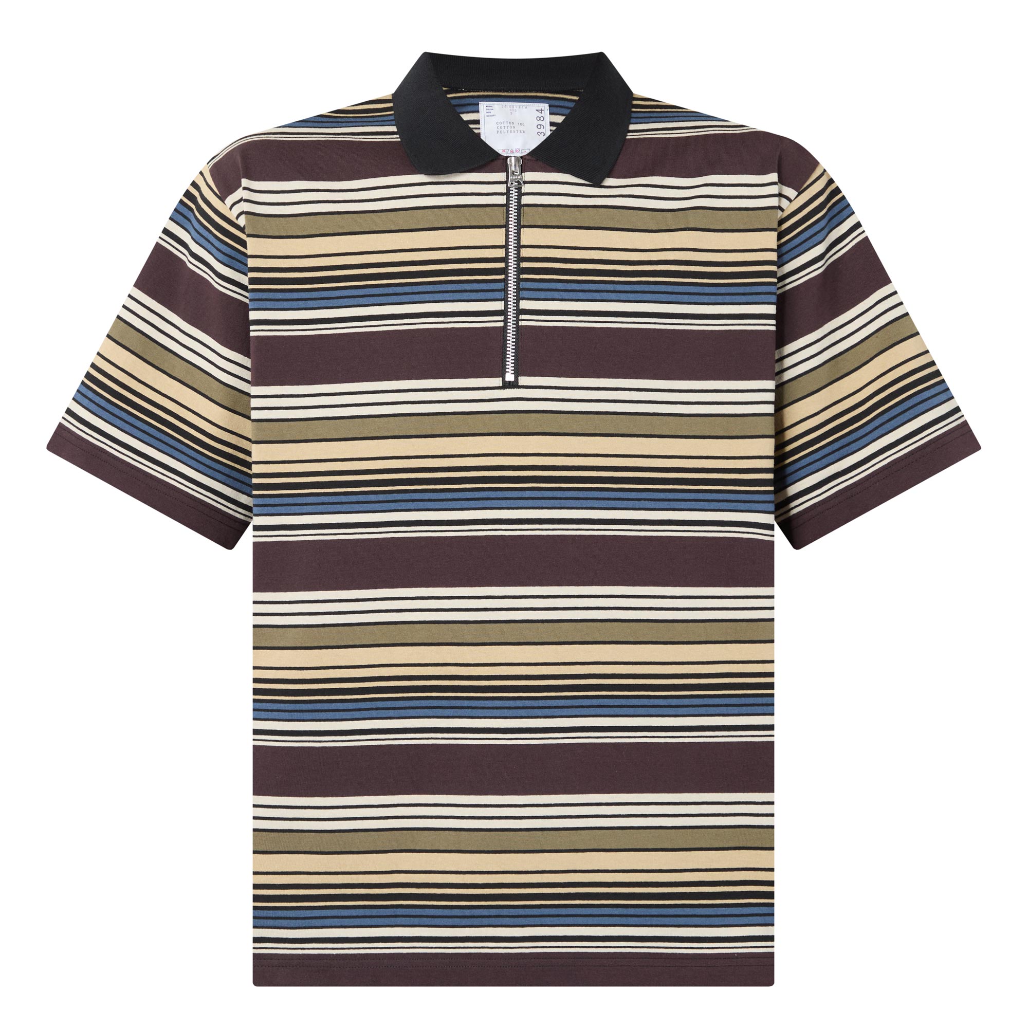 SACAI Horizontal Striped Half-Zip Polo Shirt