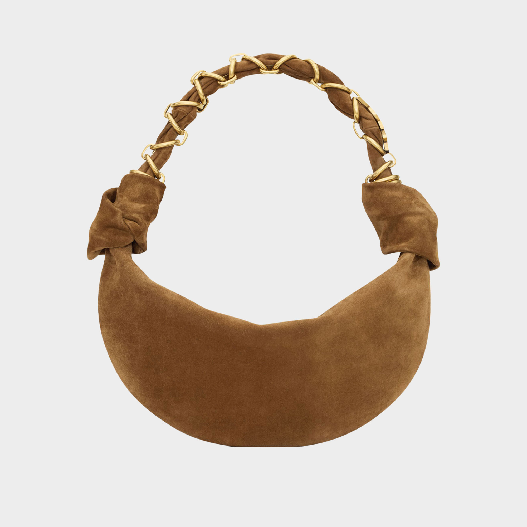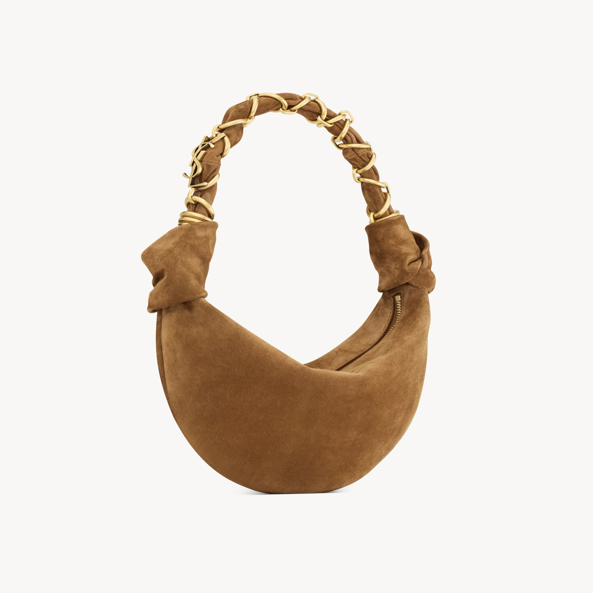 • Mini size, hobo style, woven Cassandre chain strap, bronze-tone hardware, zip fastening