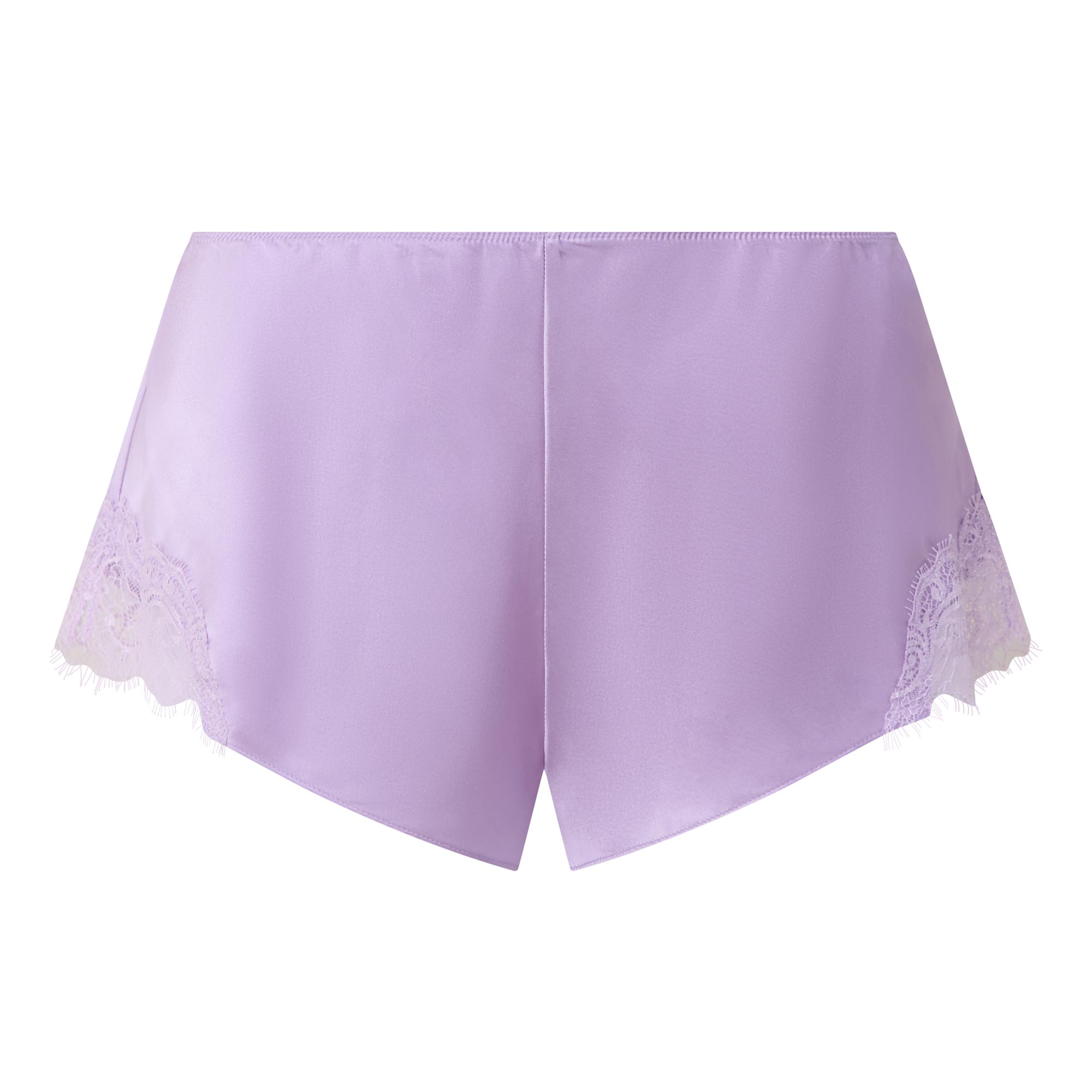 • Mid-rise, straight-leg, elasticated waist, tonal lace trim side panels, smooth silk finish