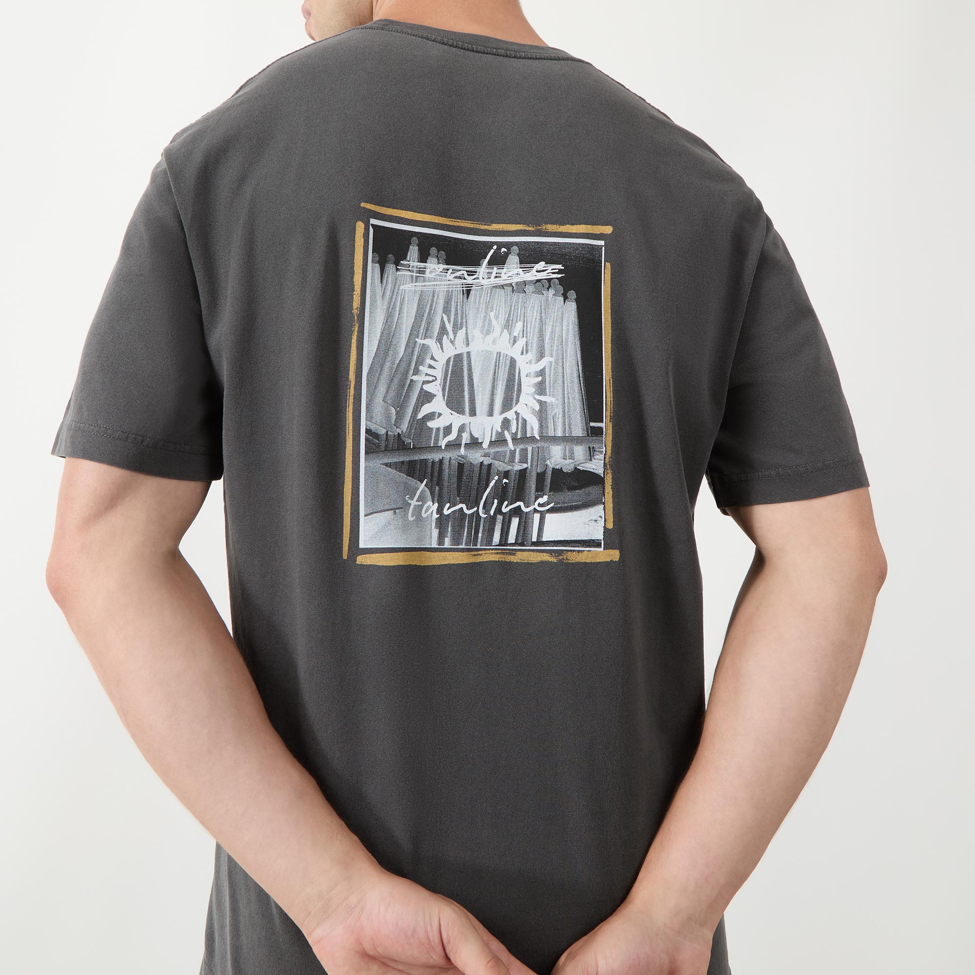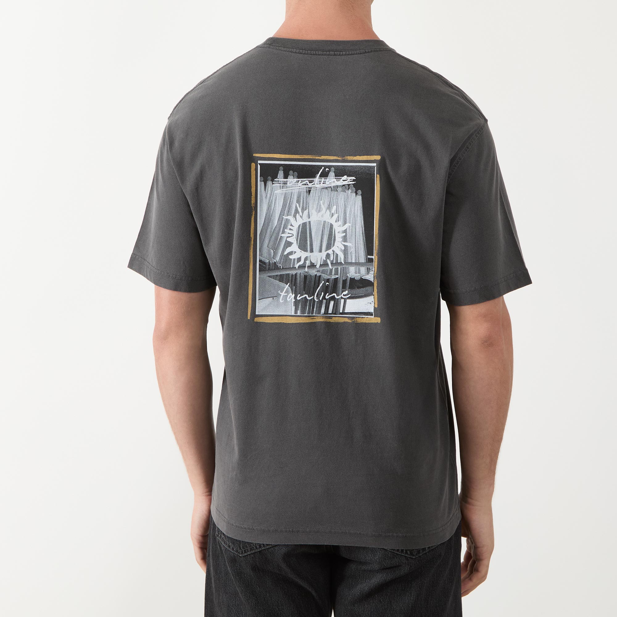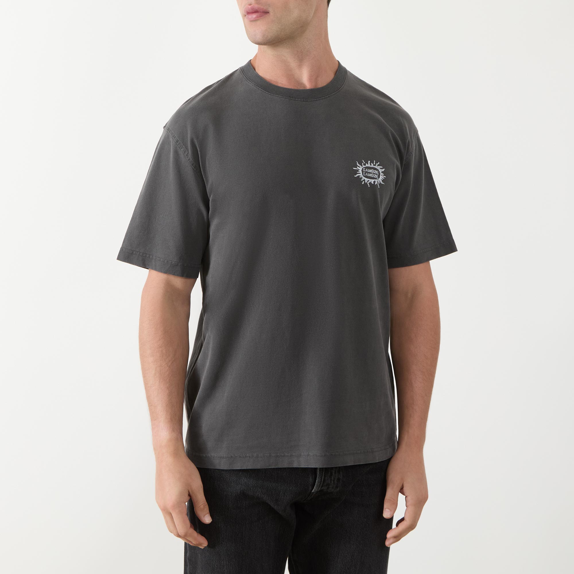 - Crew neck, dropped shoulders, short sleeves, straight hem, contrast logo detail on the chest, enlarged logo graphic on the back, tonal stitching, washed finish