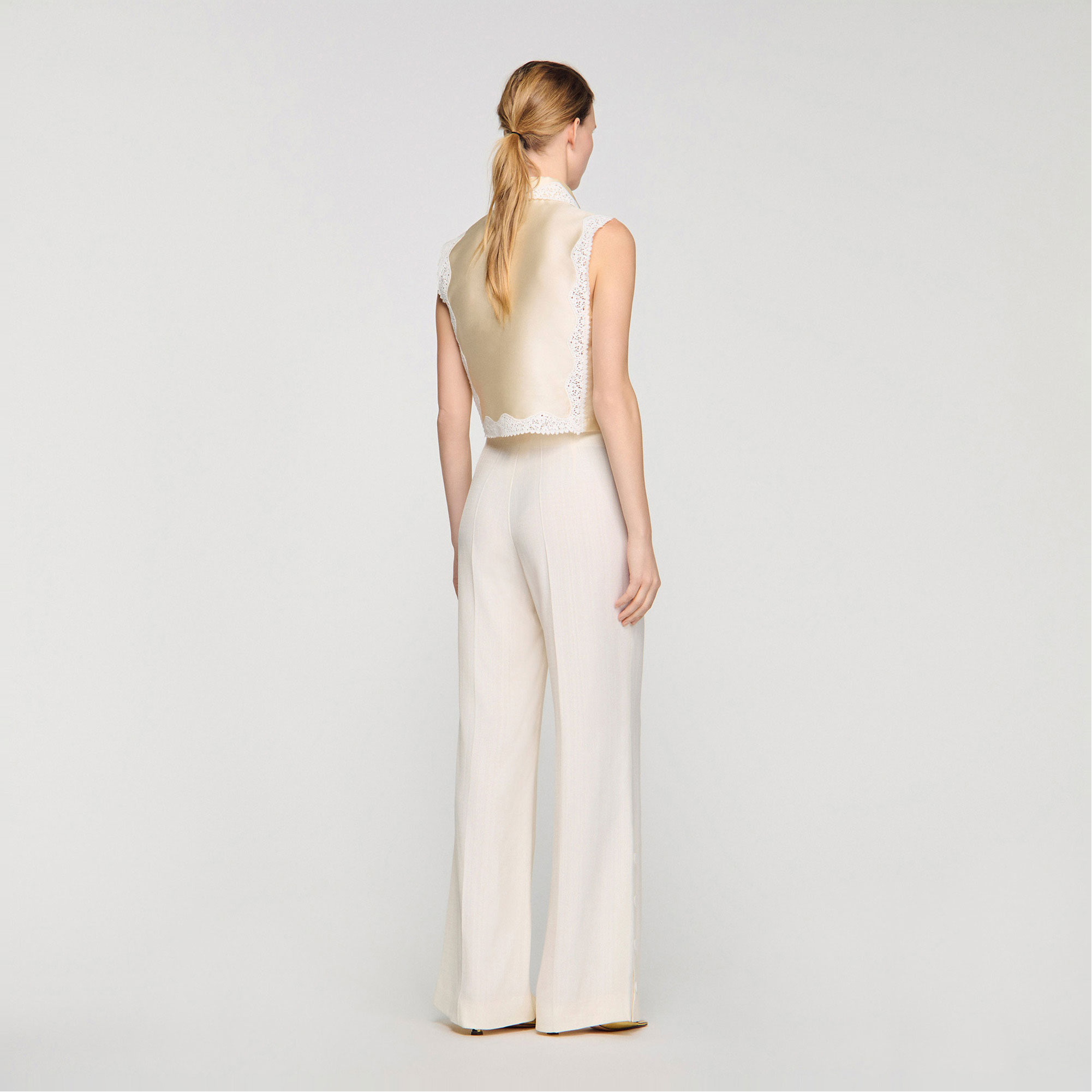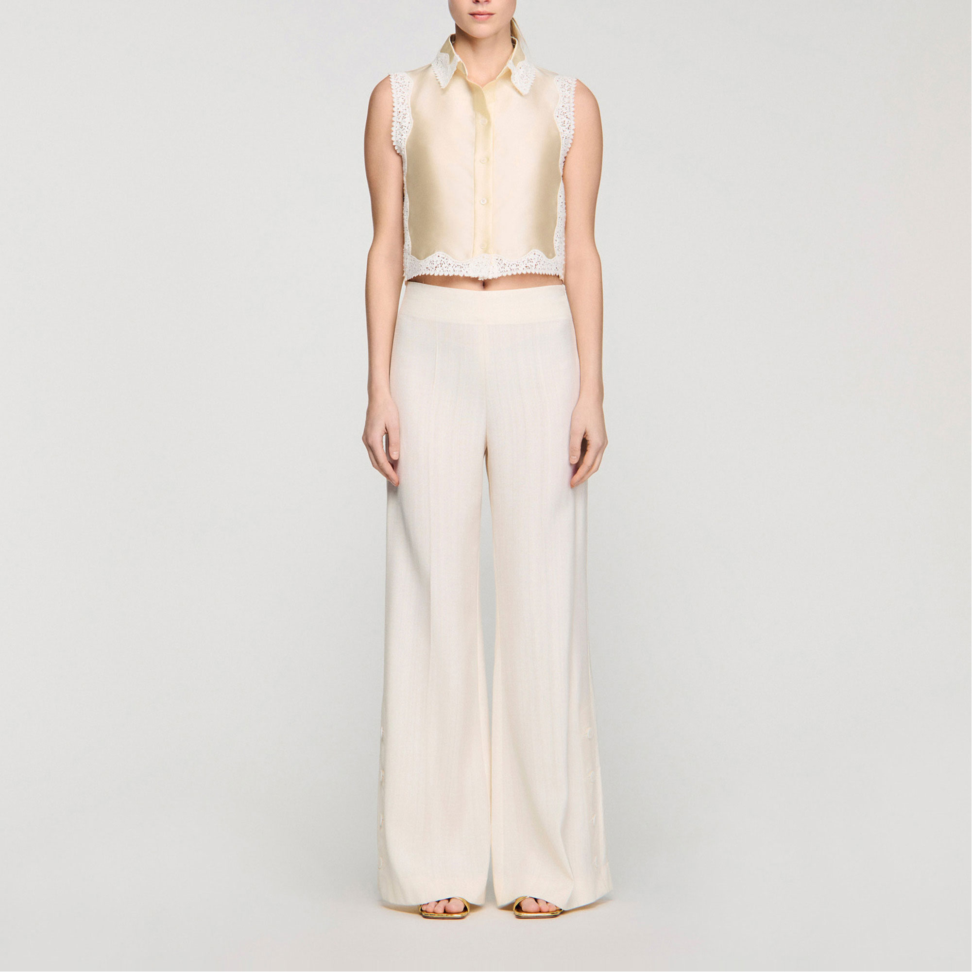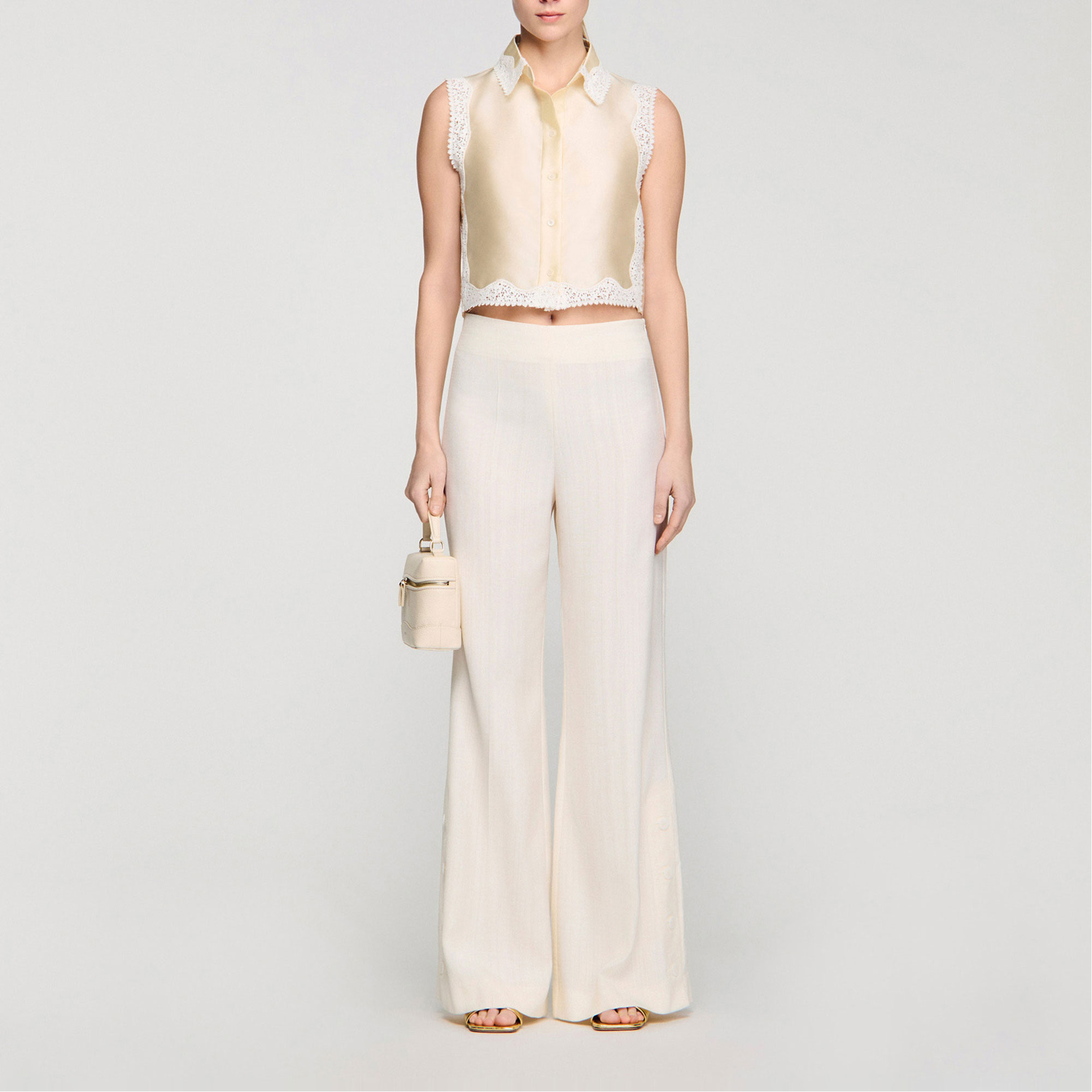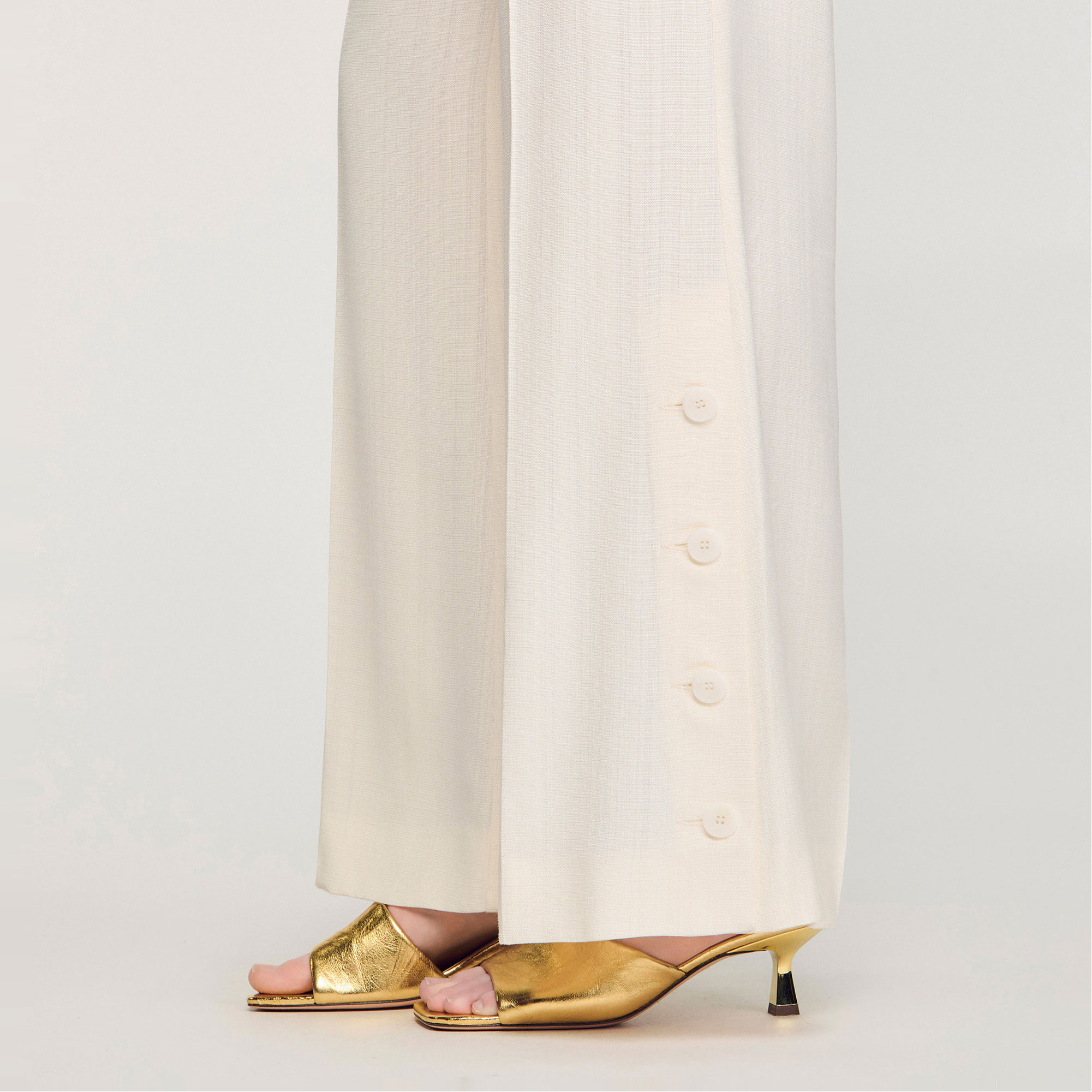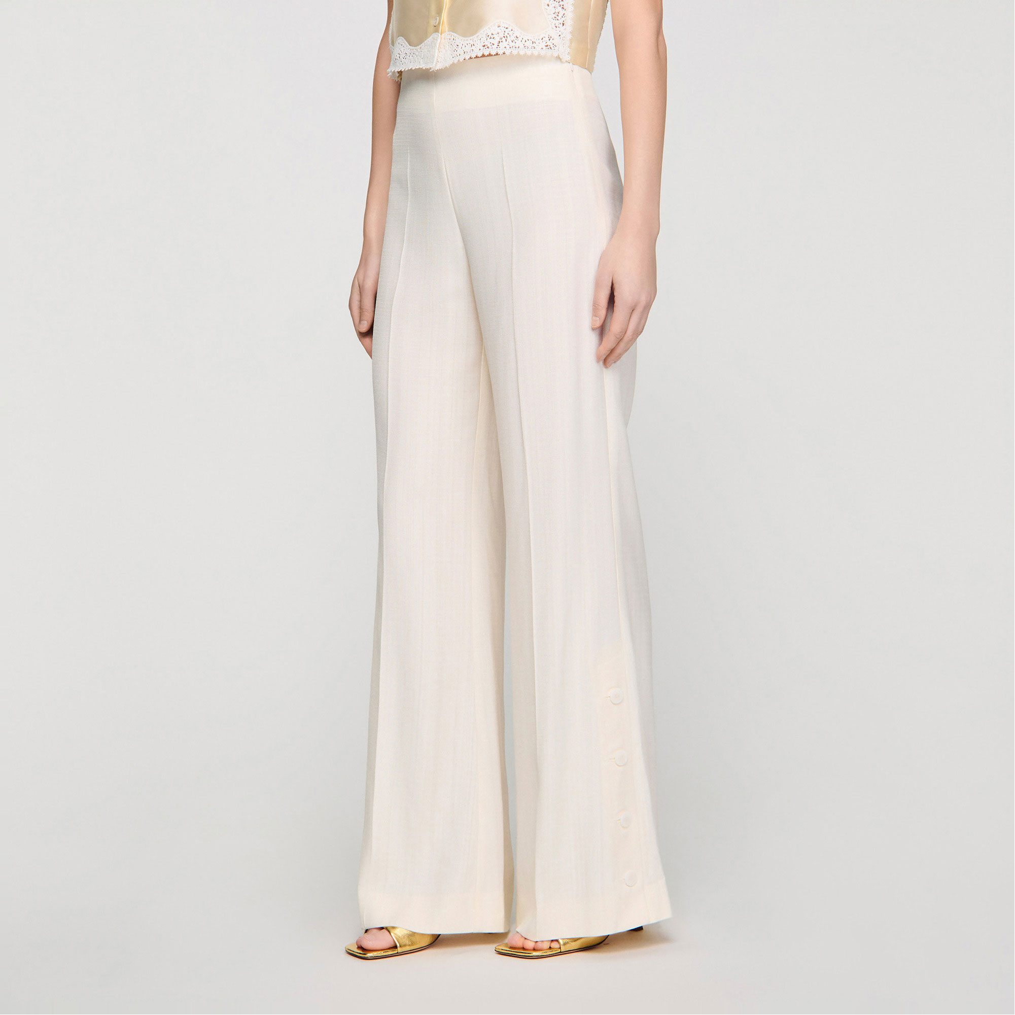SANDRO Buttoned Slit Wide Leg Trousers