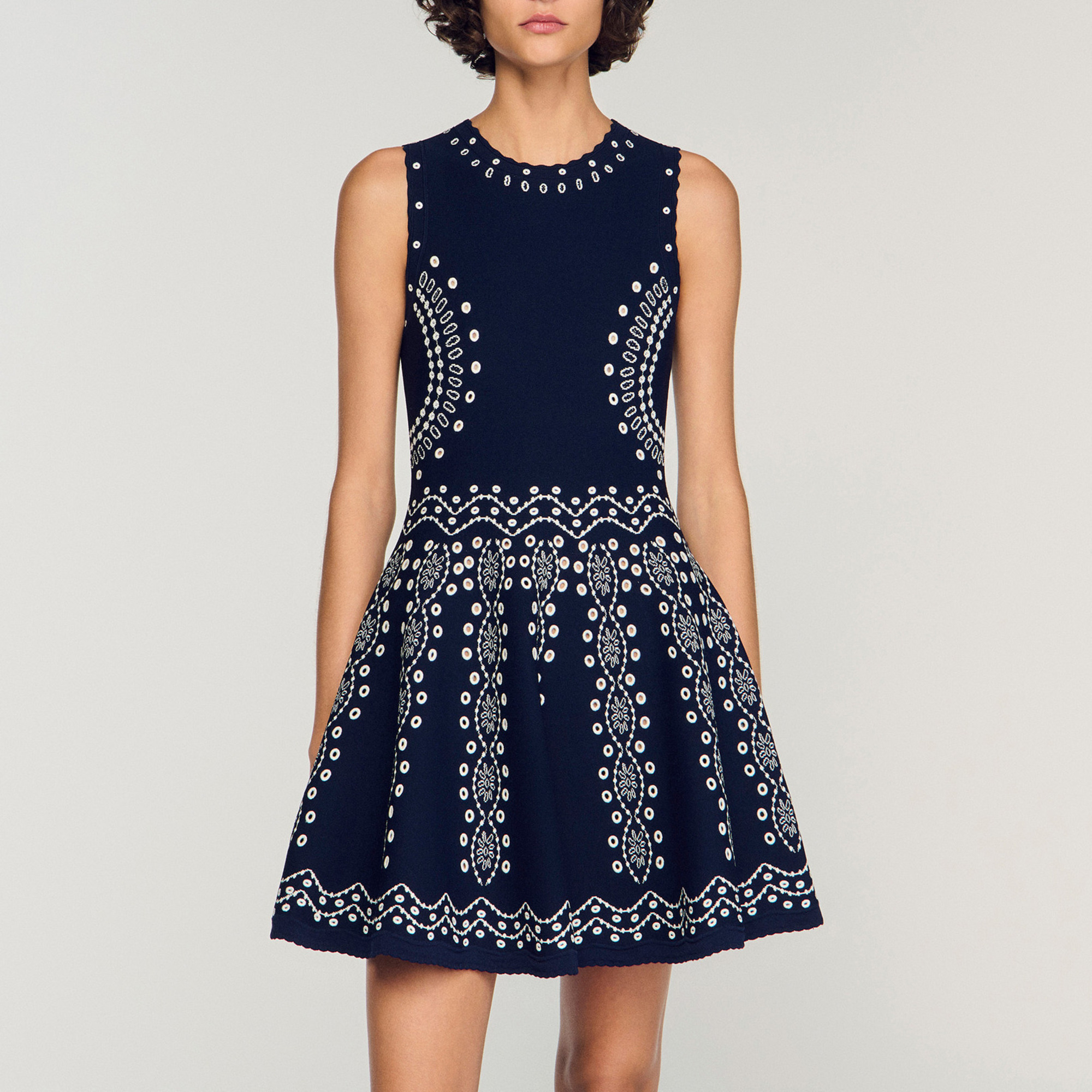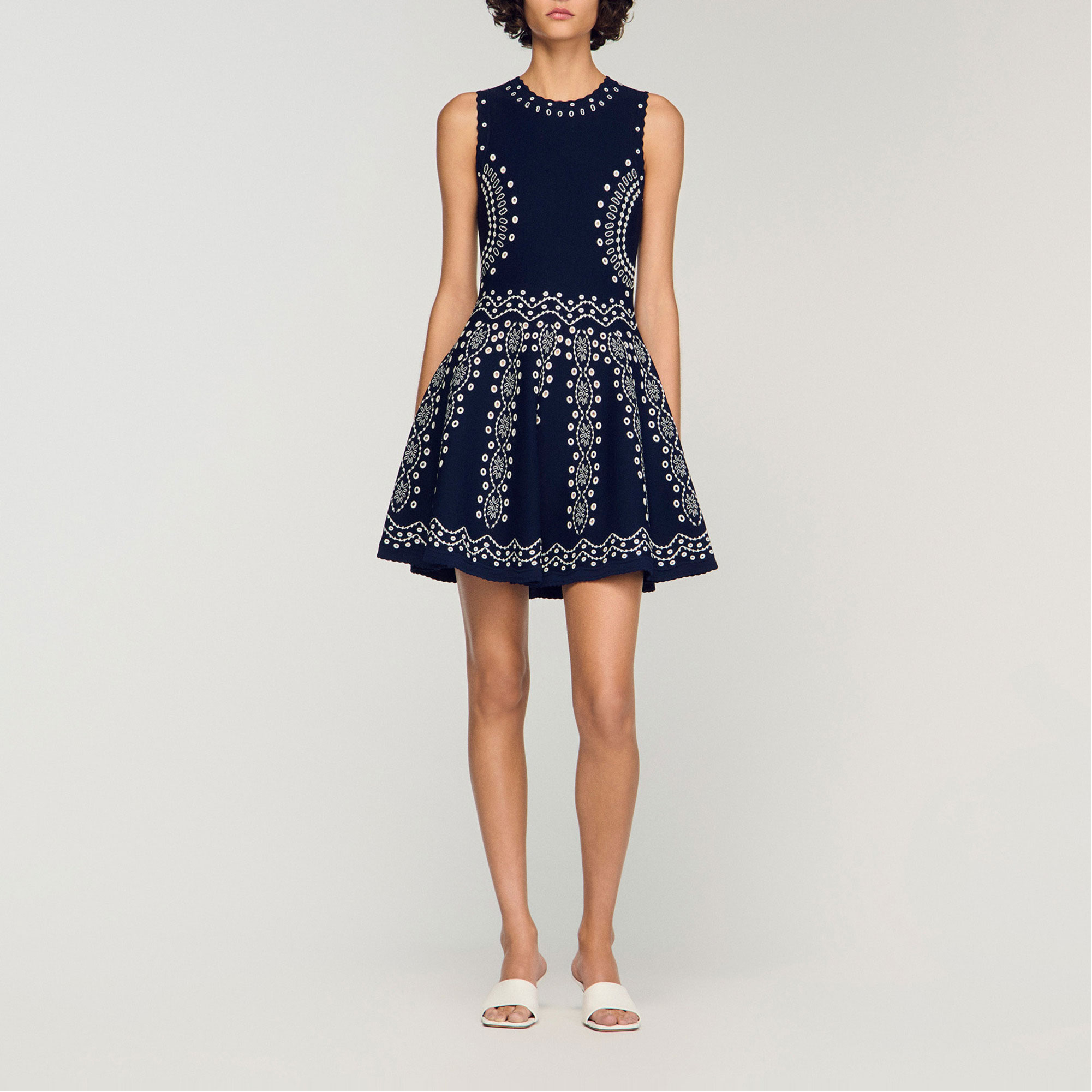 SANDRO Embroidered Mini Flared Dress