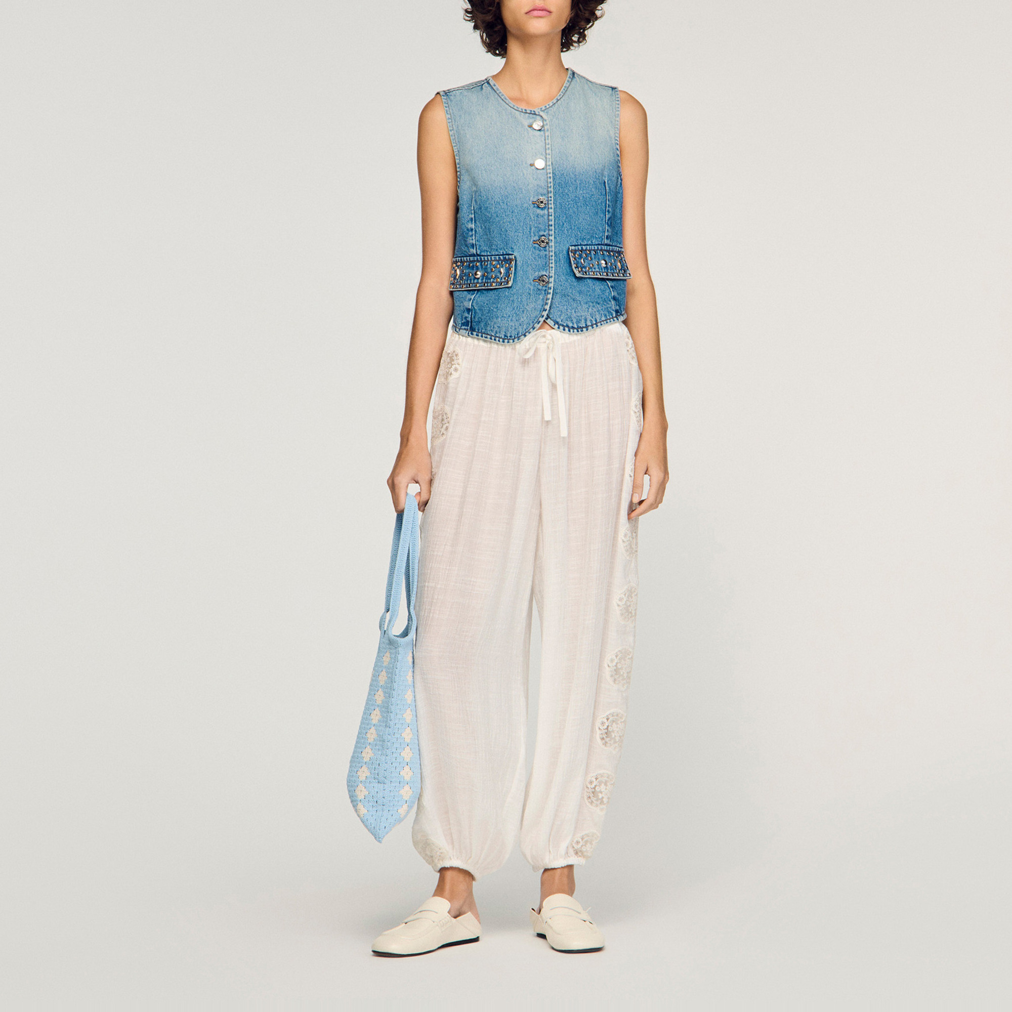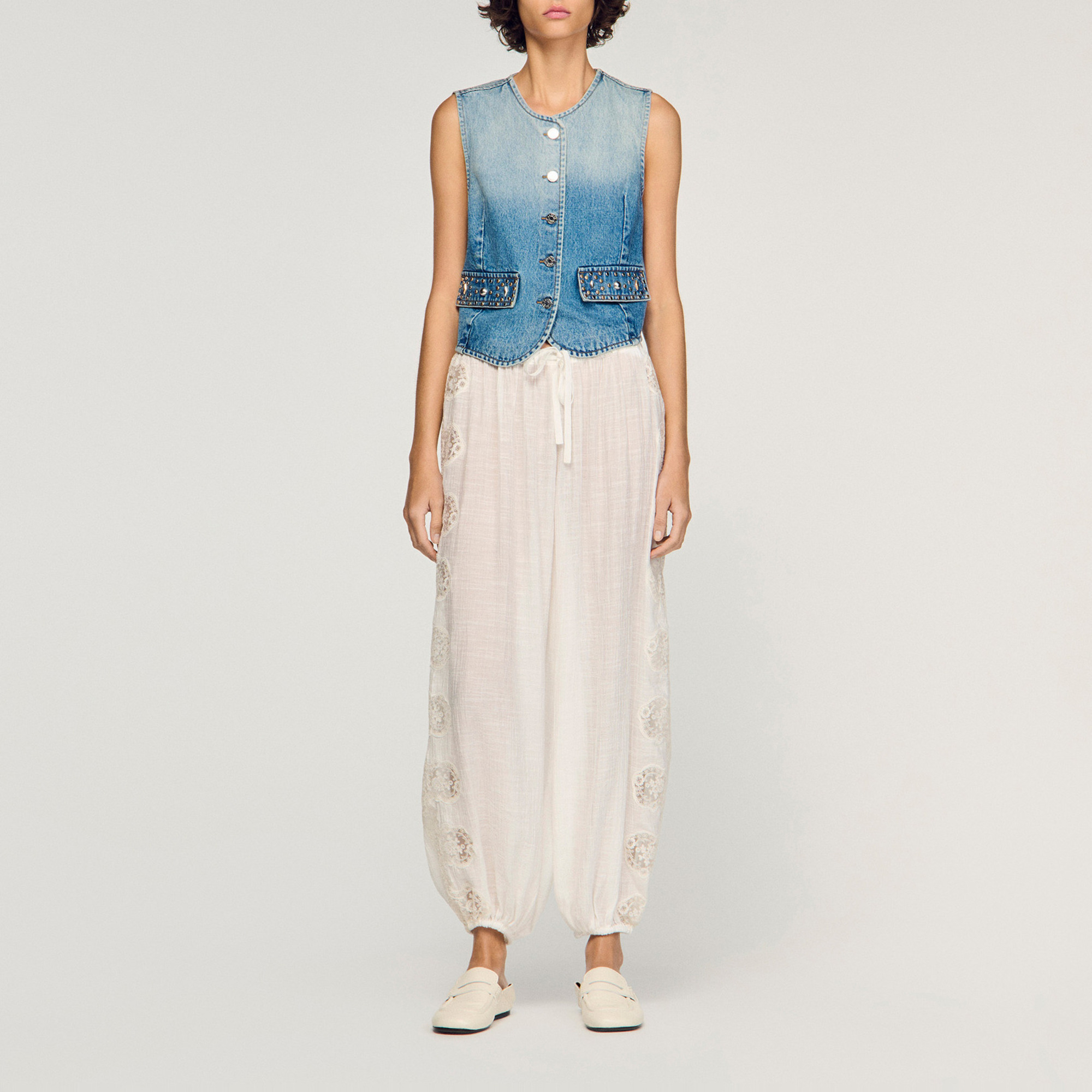 SANDRO The Sustainable Edit Embroidered Wide Leg Trousers