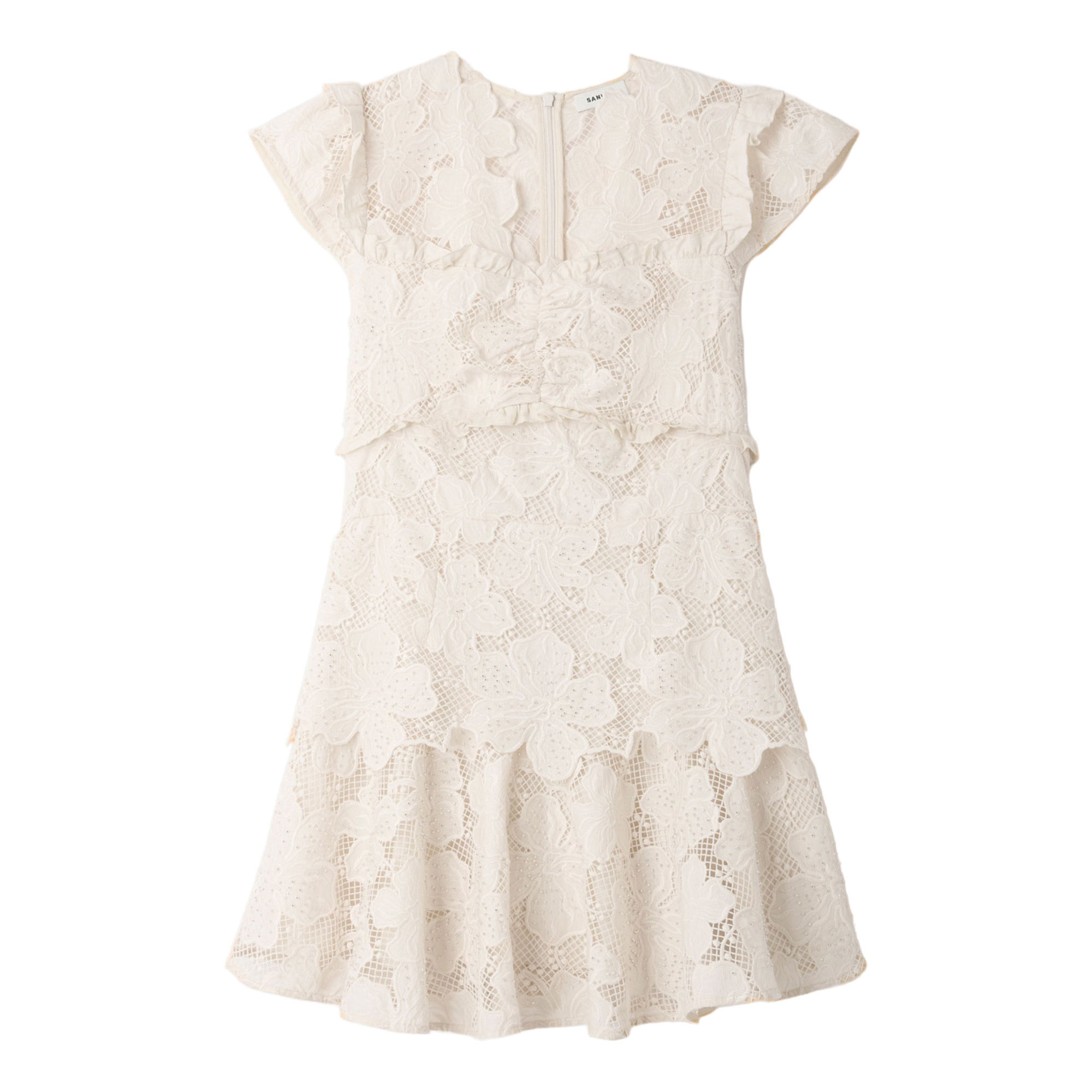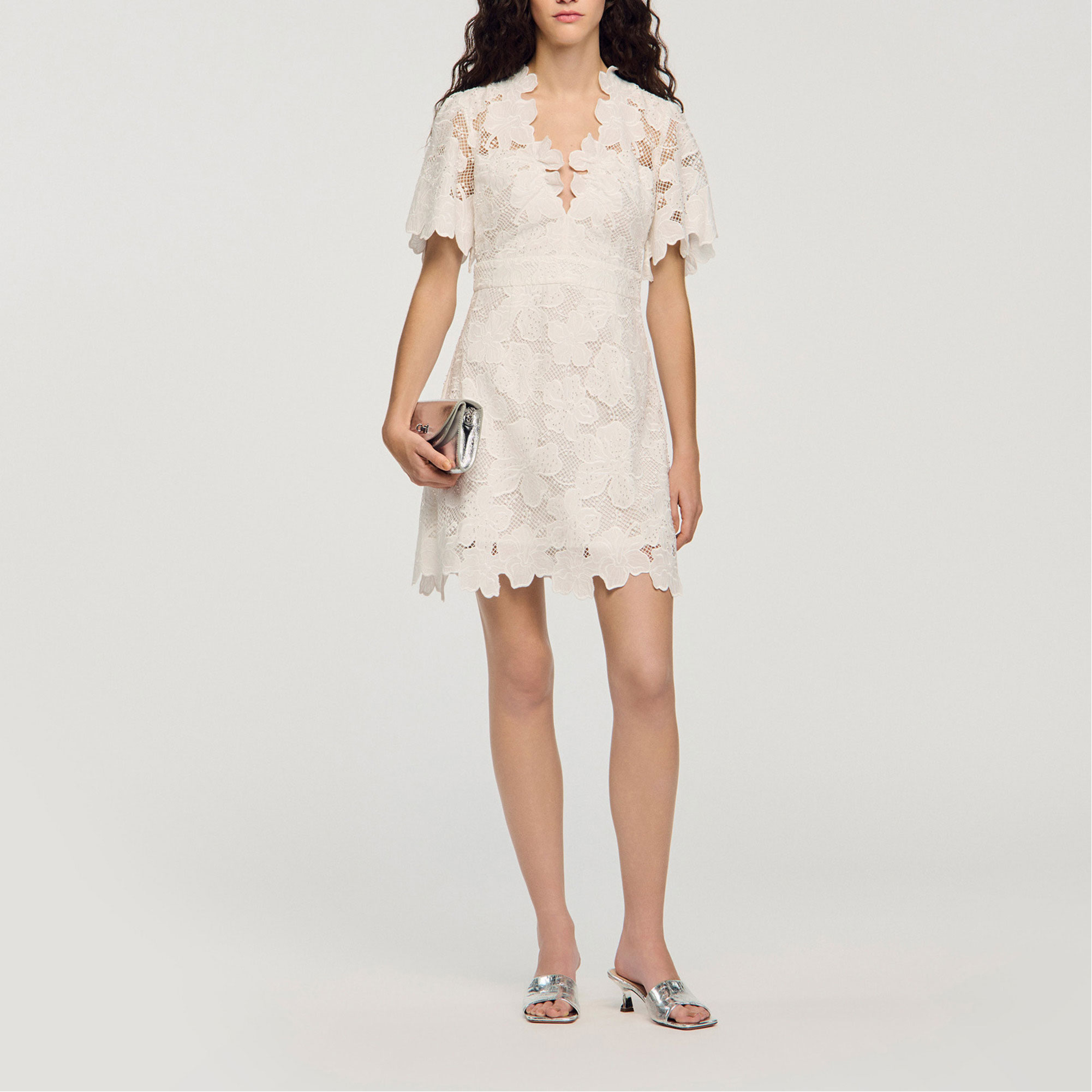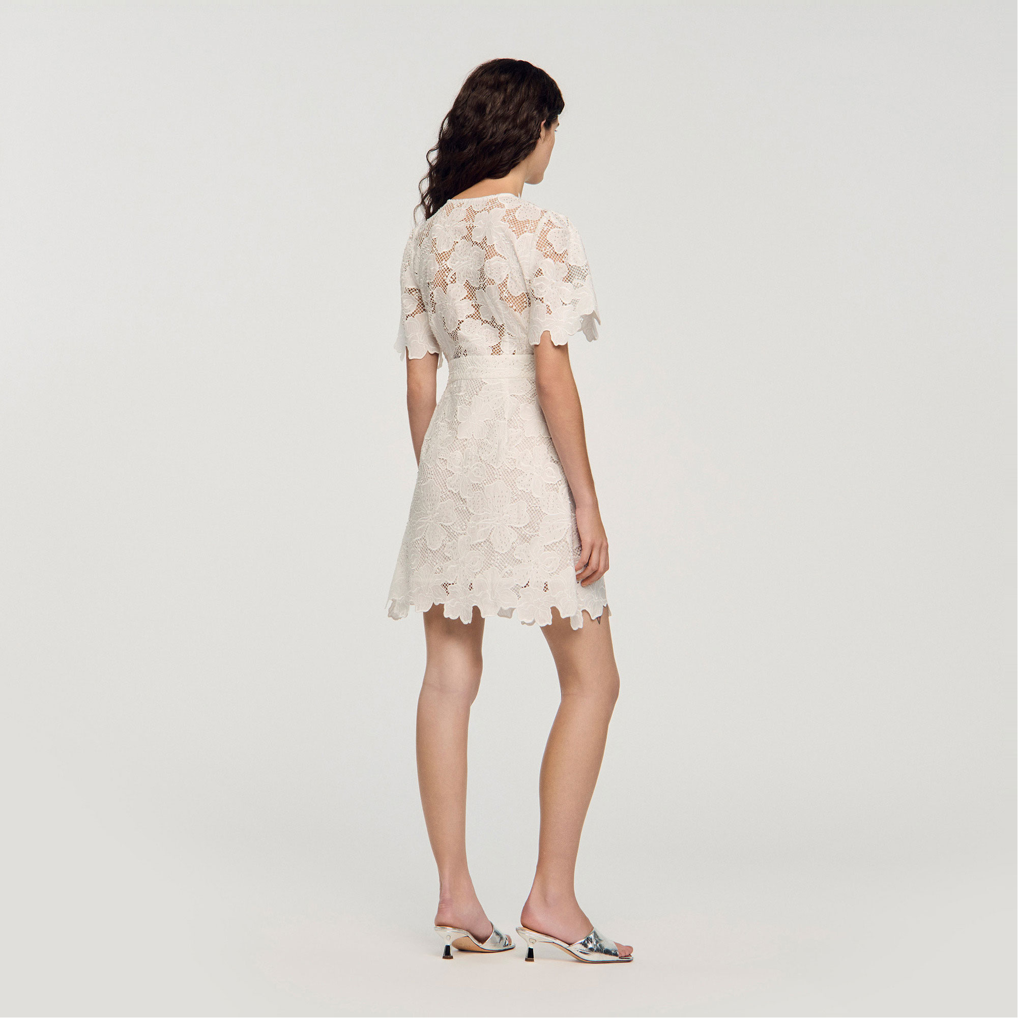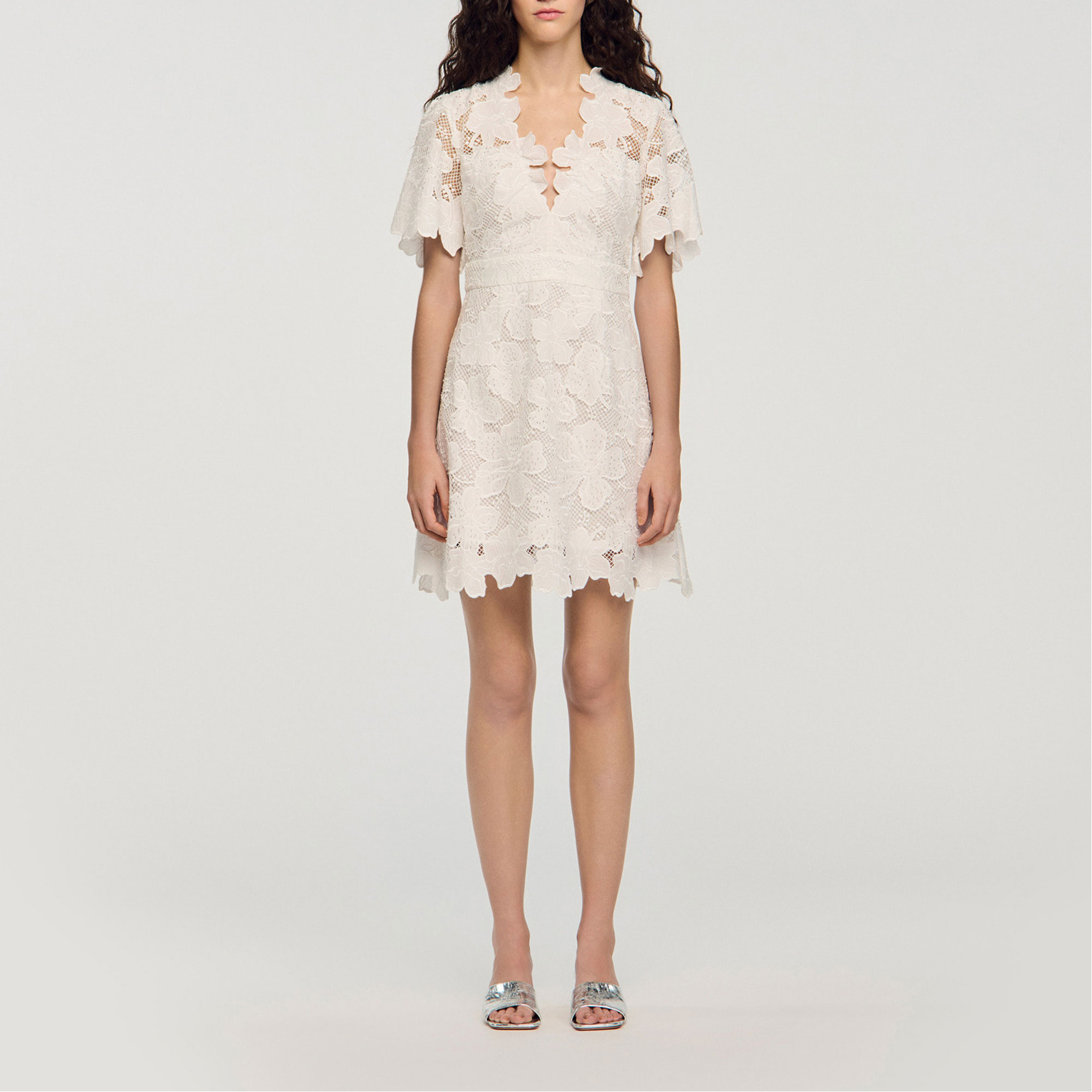 SANDRO Floral Lace Mini Flared Dress