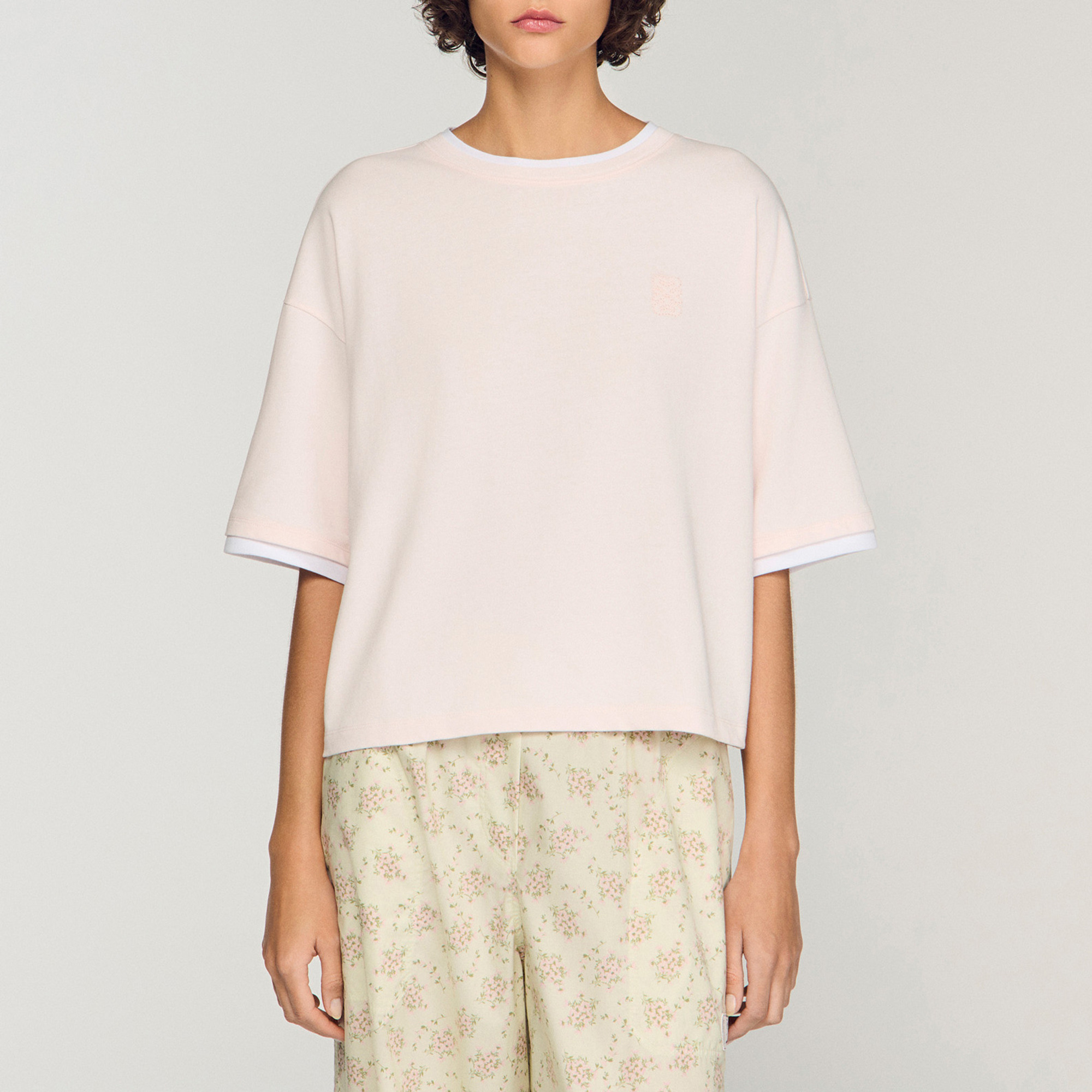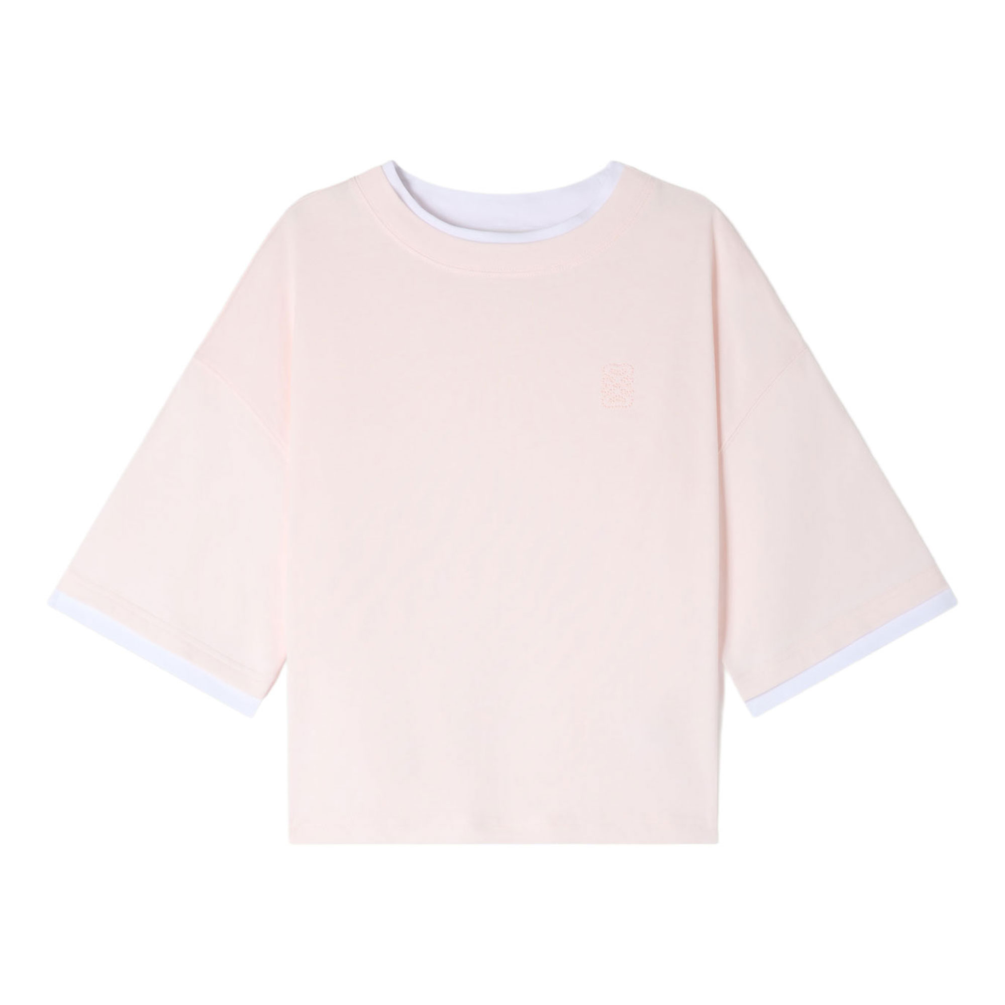 - Contrasting layered-effect trim, round neck, short sleeves, 4S embroidery on the chest