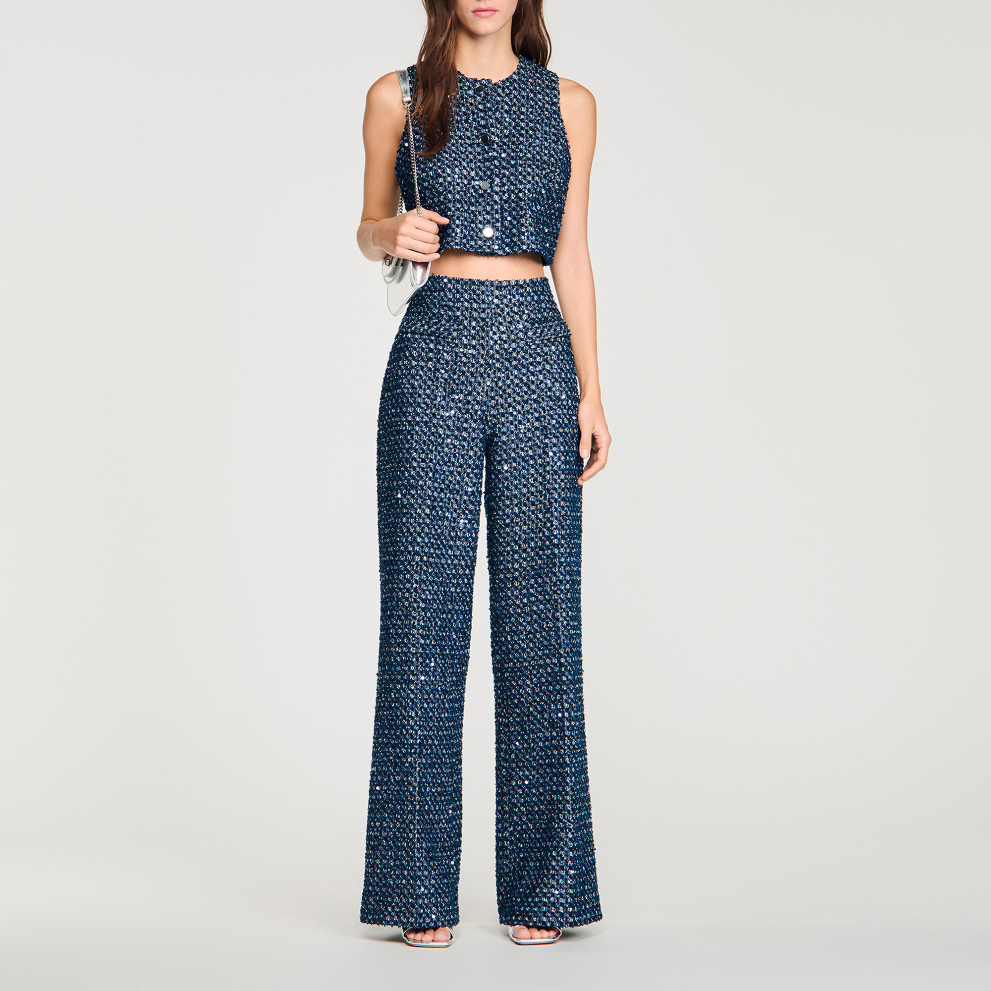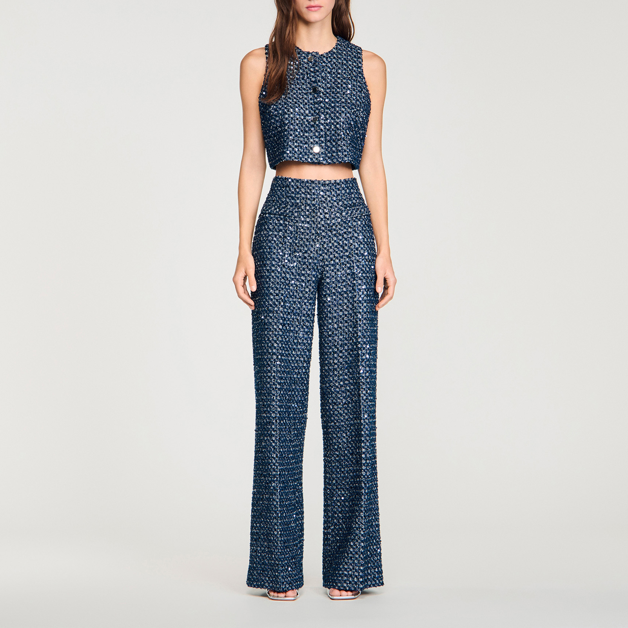 SANDRO Sequin Wide Leg Trousers