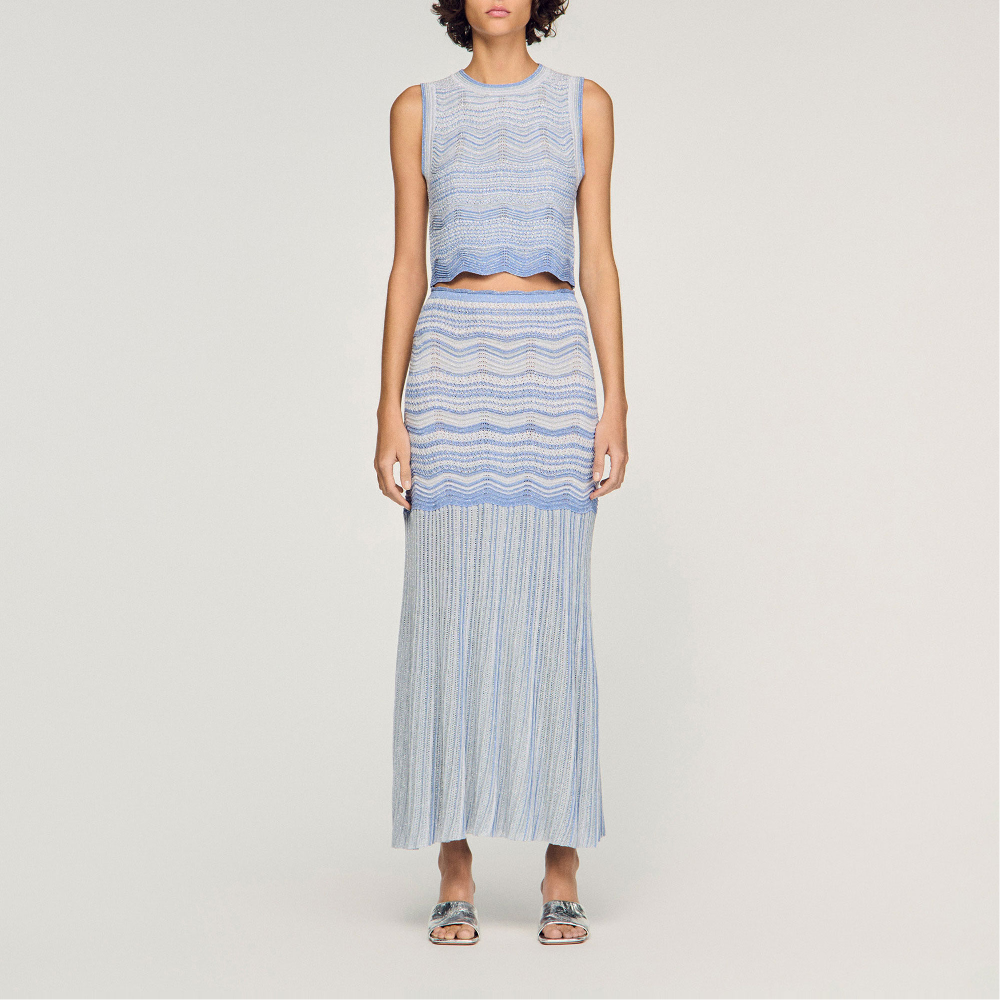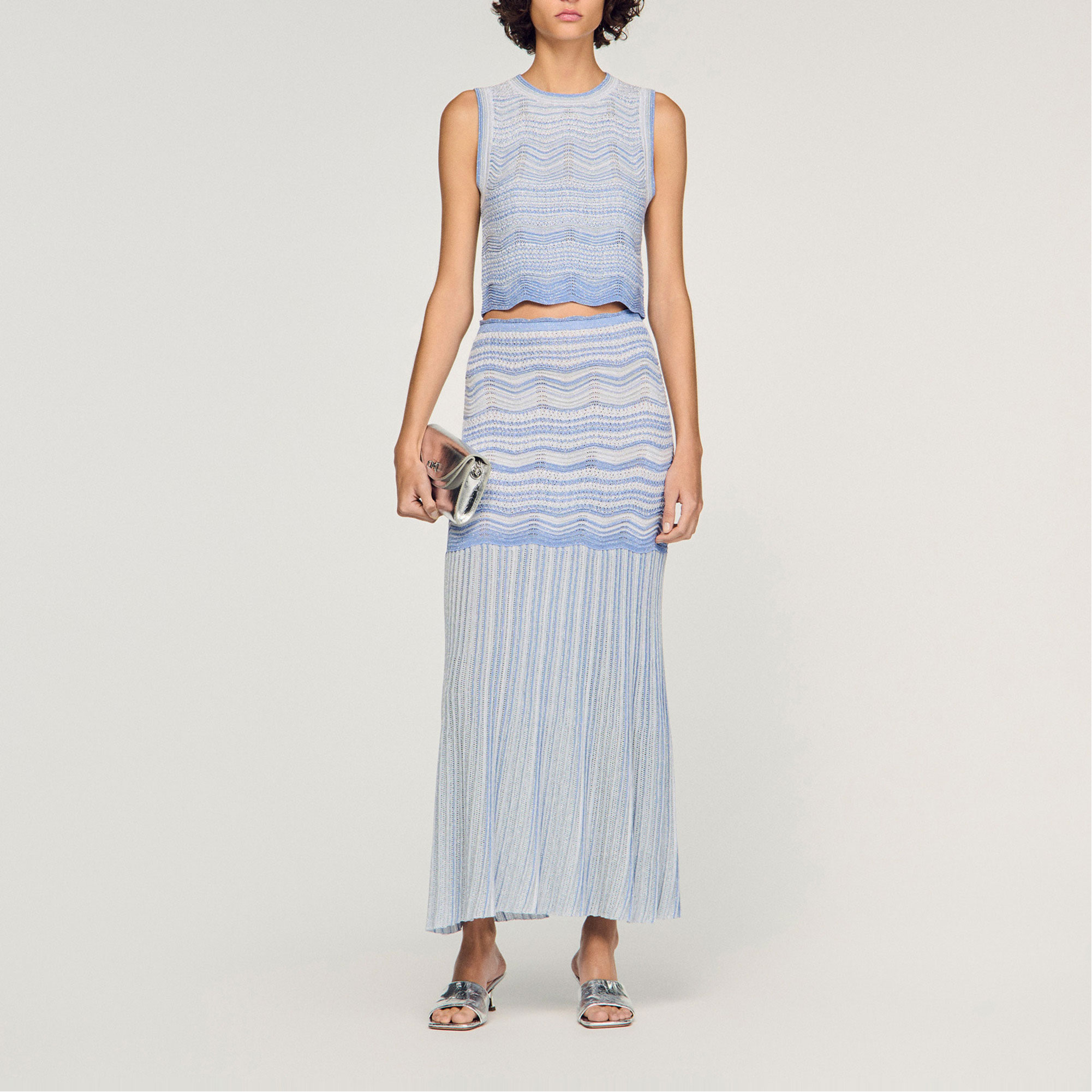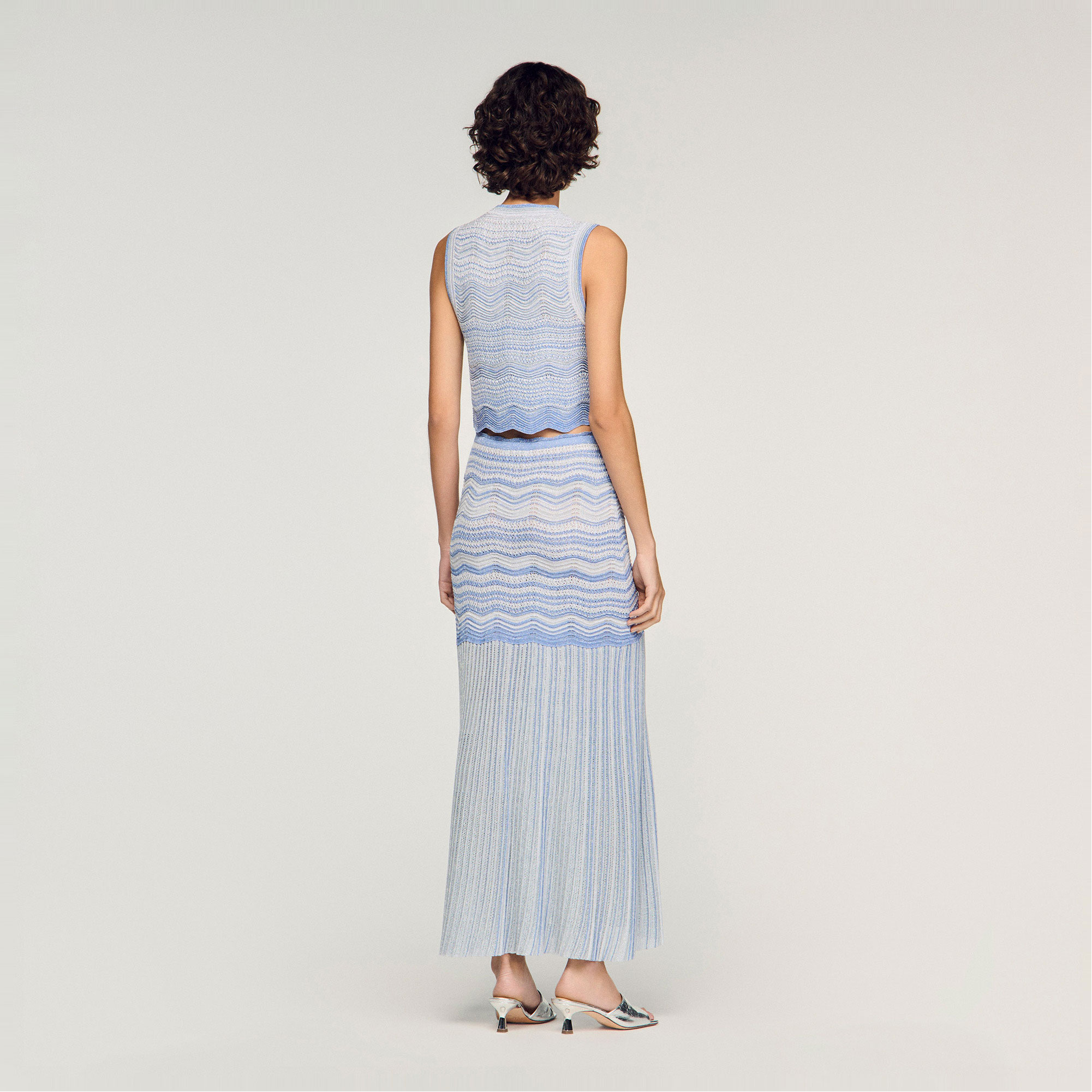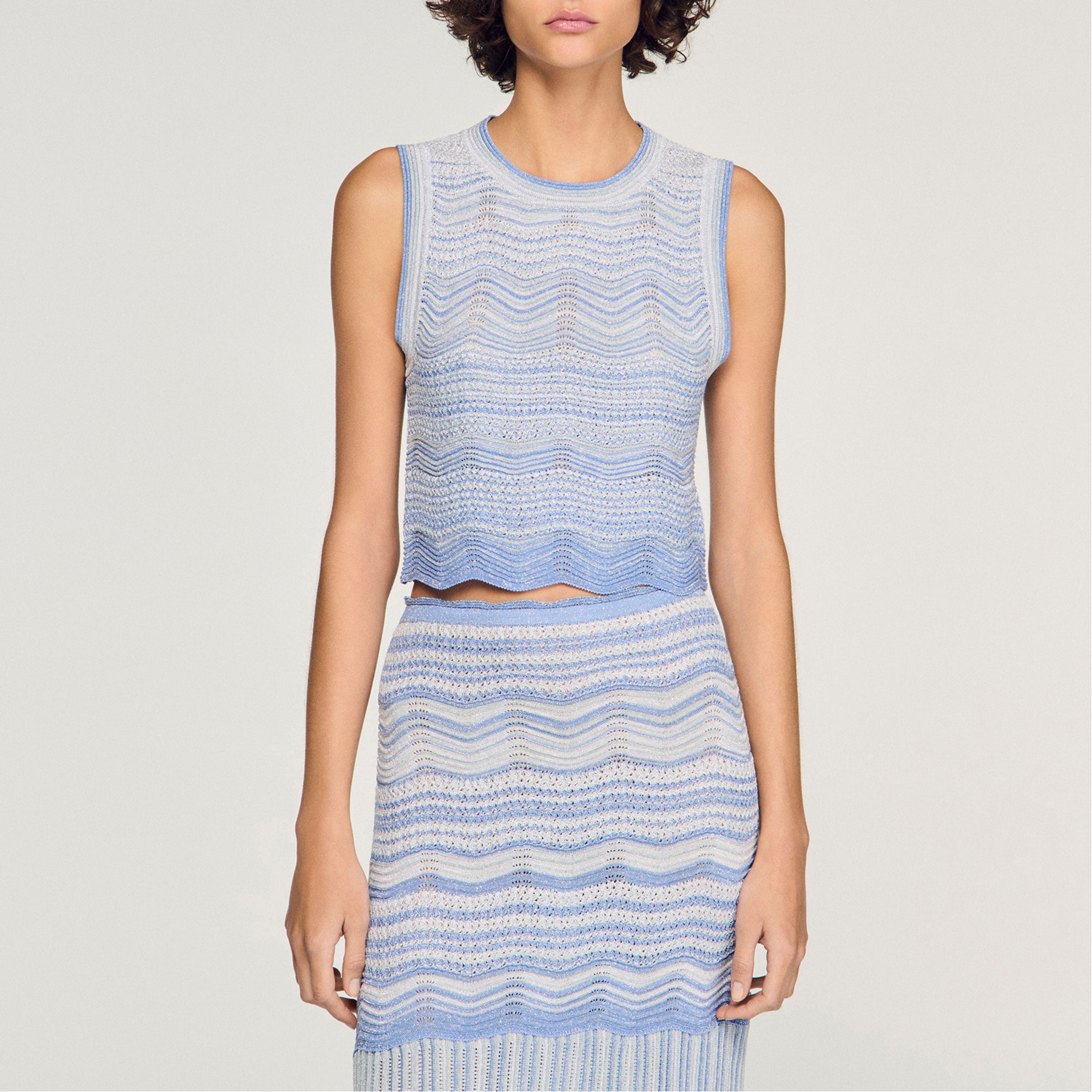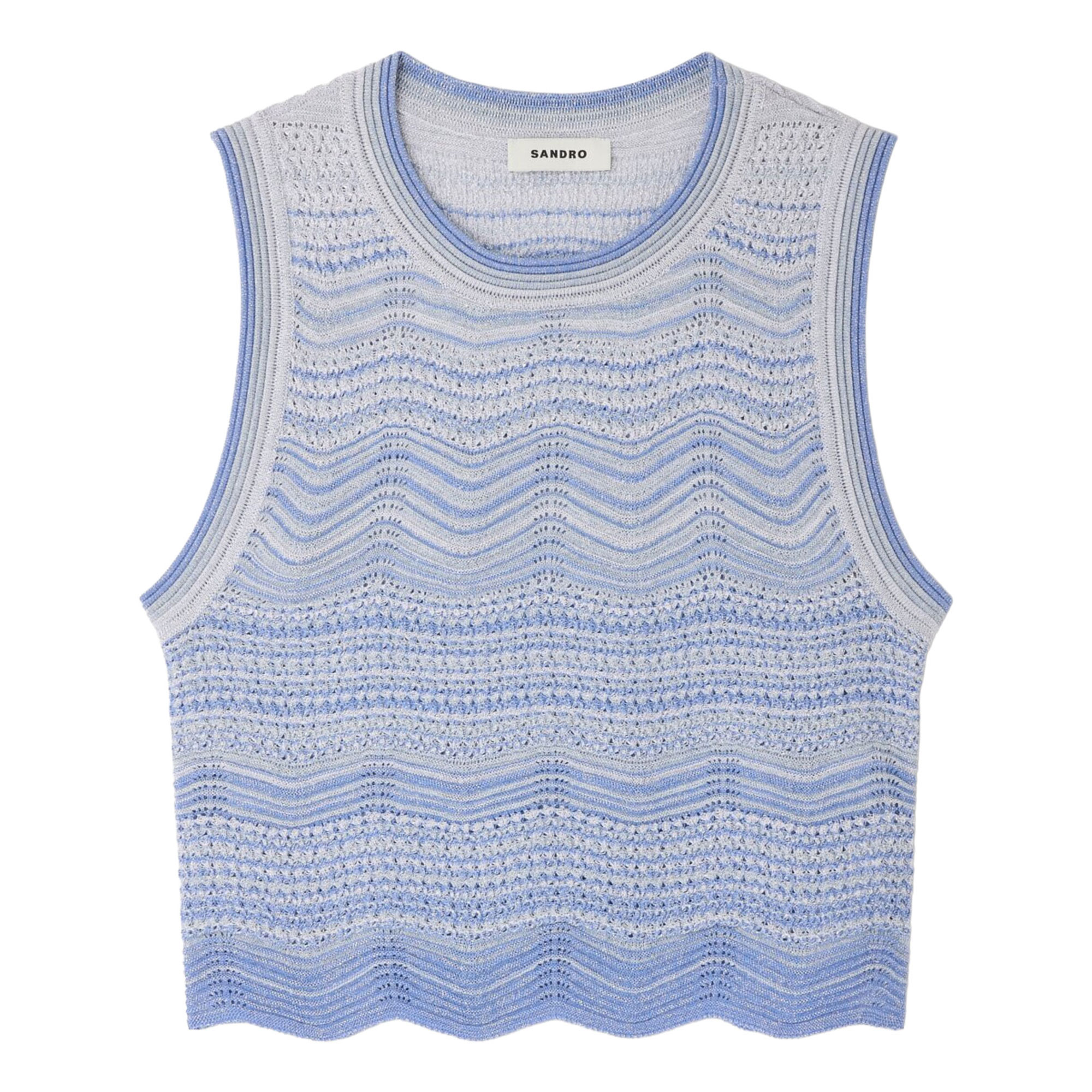 • Sleeveless, cropped, decorative ombré knit, round neck, wavy hem