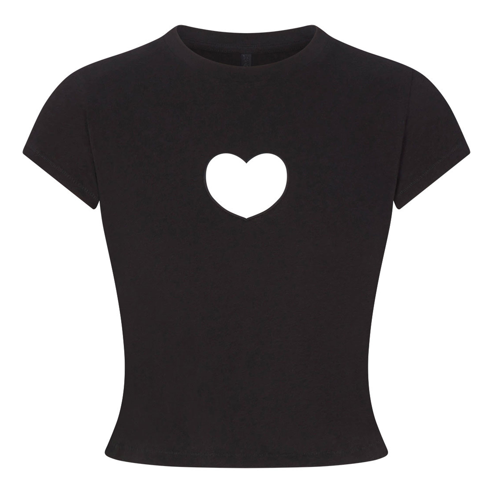 • Crew neckline, short sleeves, heart cut-out at centre front, logo label at centre back neck
