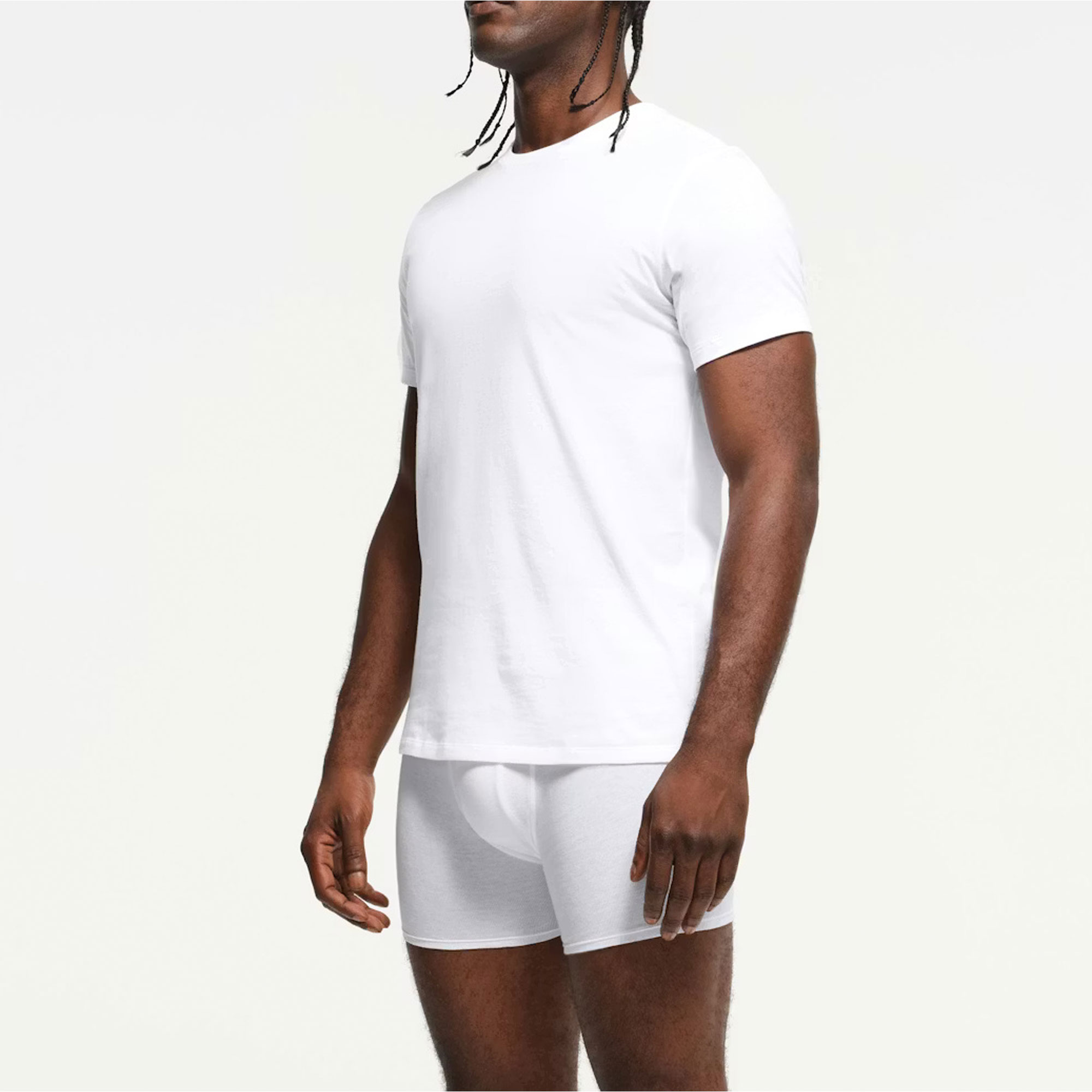 The ultimate undershirt, this 3-pack of tees featuring a slightly longer length than the SKIMS Cotton Mens Classic T-Shirt. Made from 100% lightweight cotton with a dry hand feel and clean seam lines for an invisible look under clothes. Includes ribbing at the crewneck.