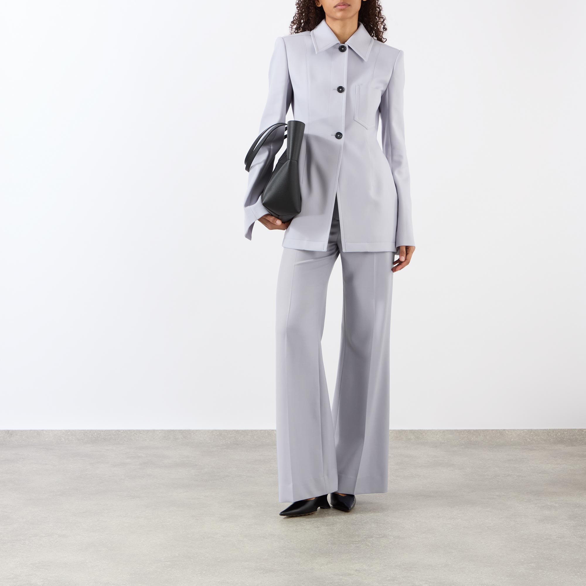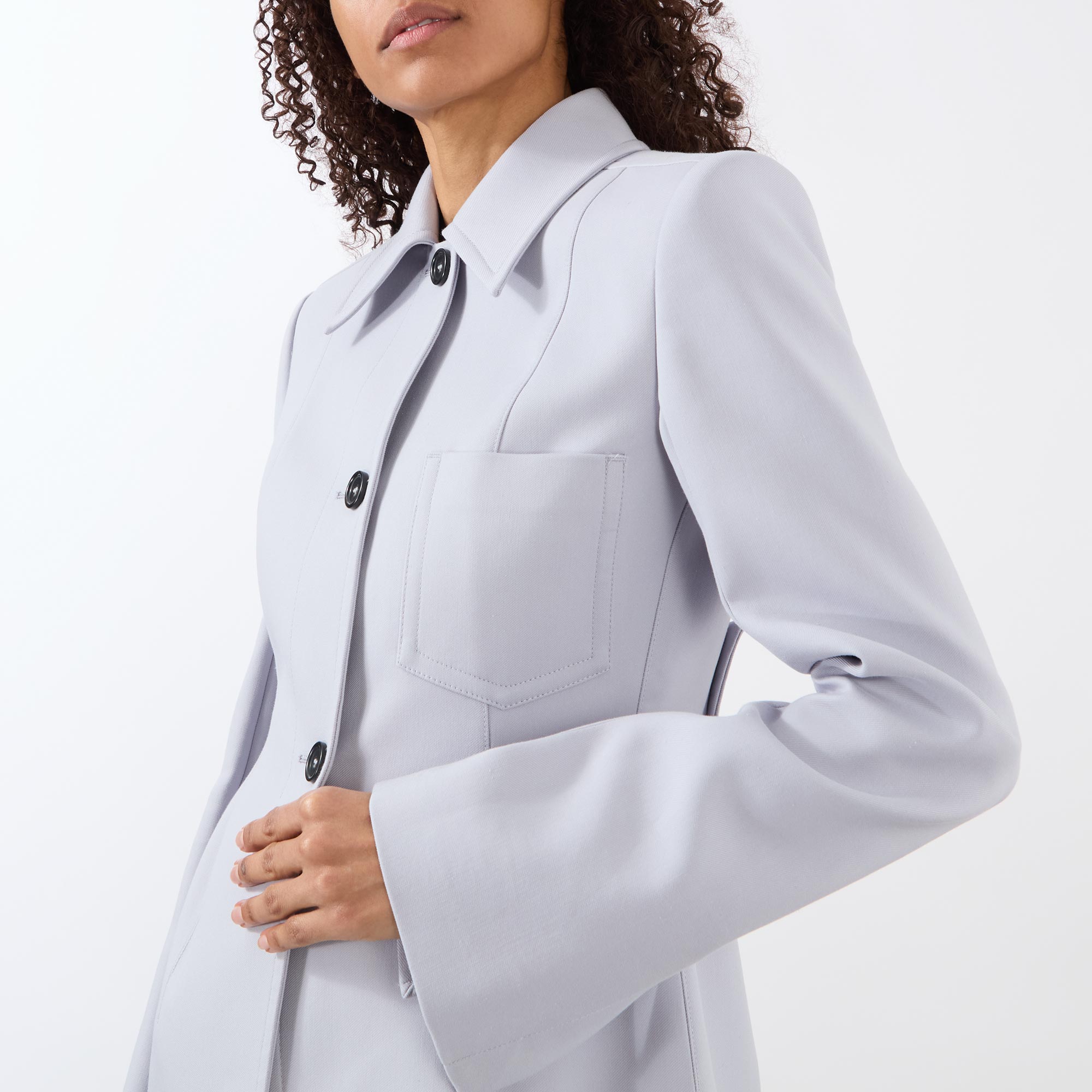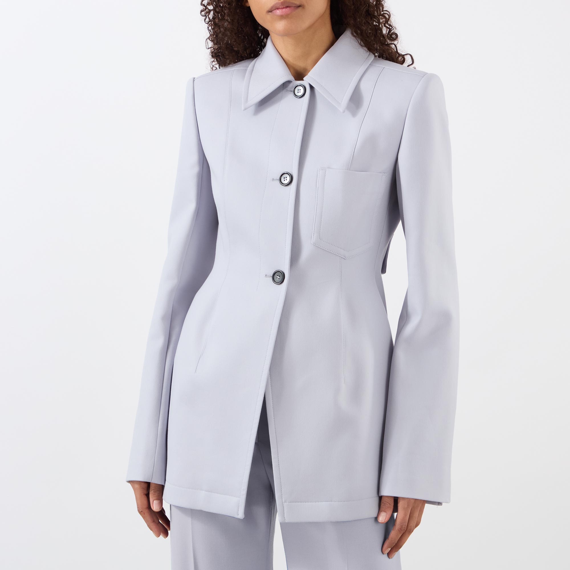 - Point collar, long sleeves, split cuffs, one chest patch pocket, front button fastening, rear martingale, rear vent, darting throughout, tonal stitching, smooth finish