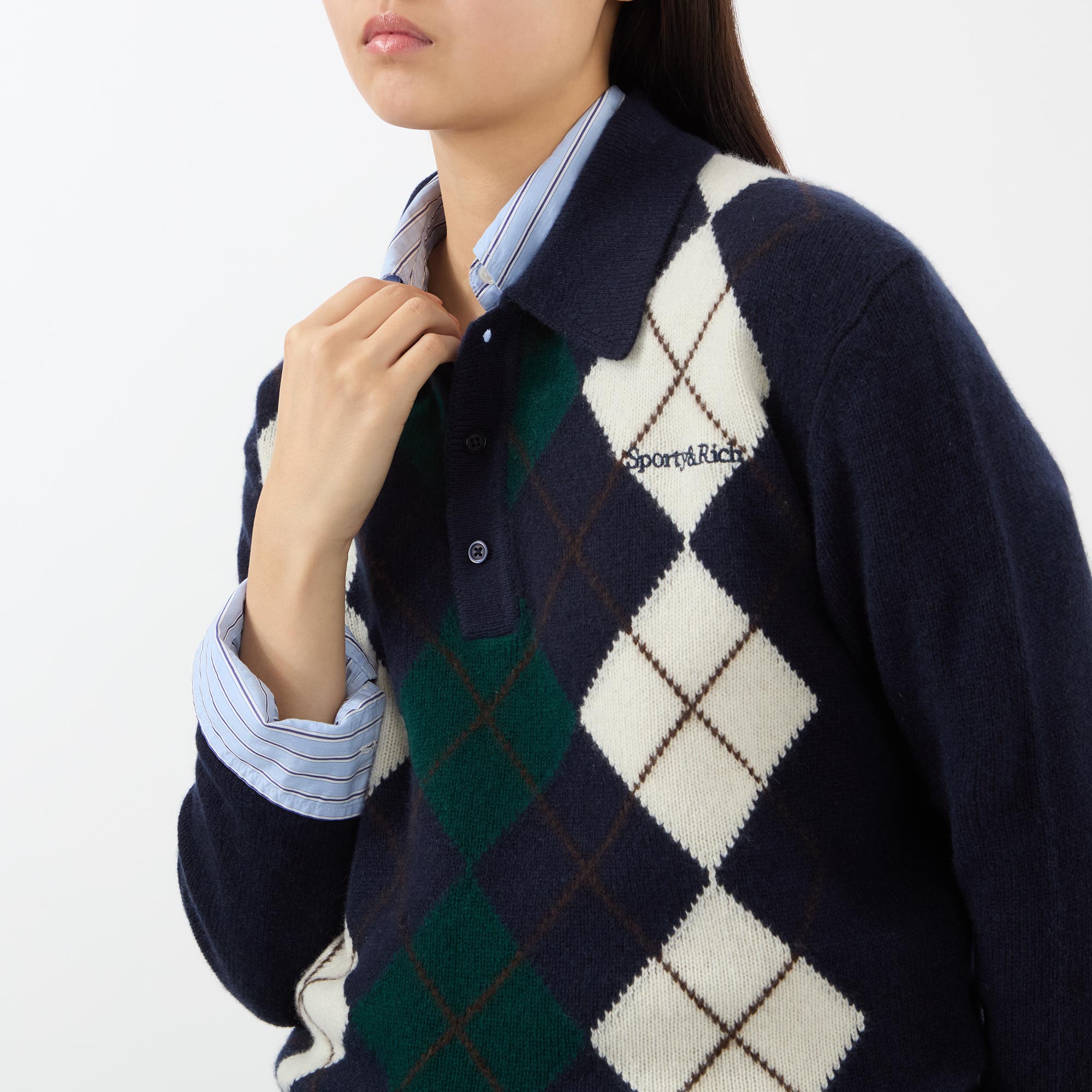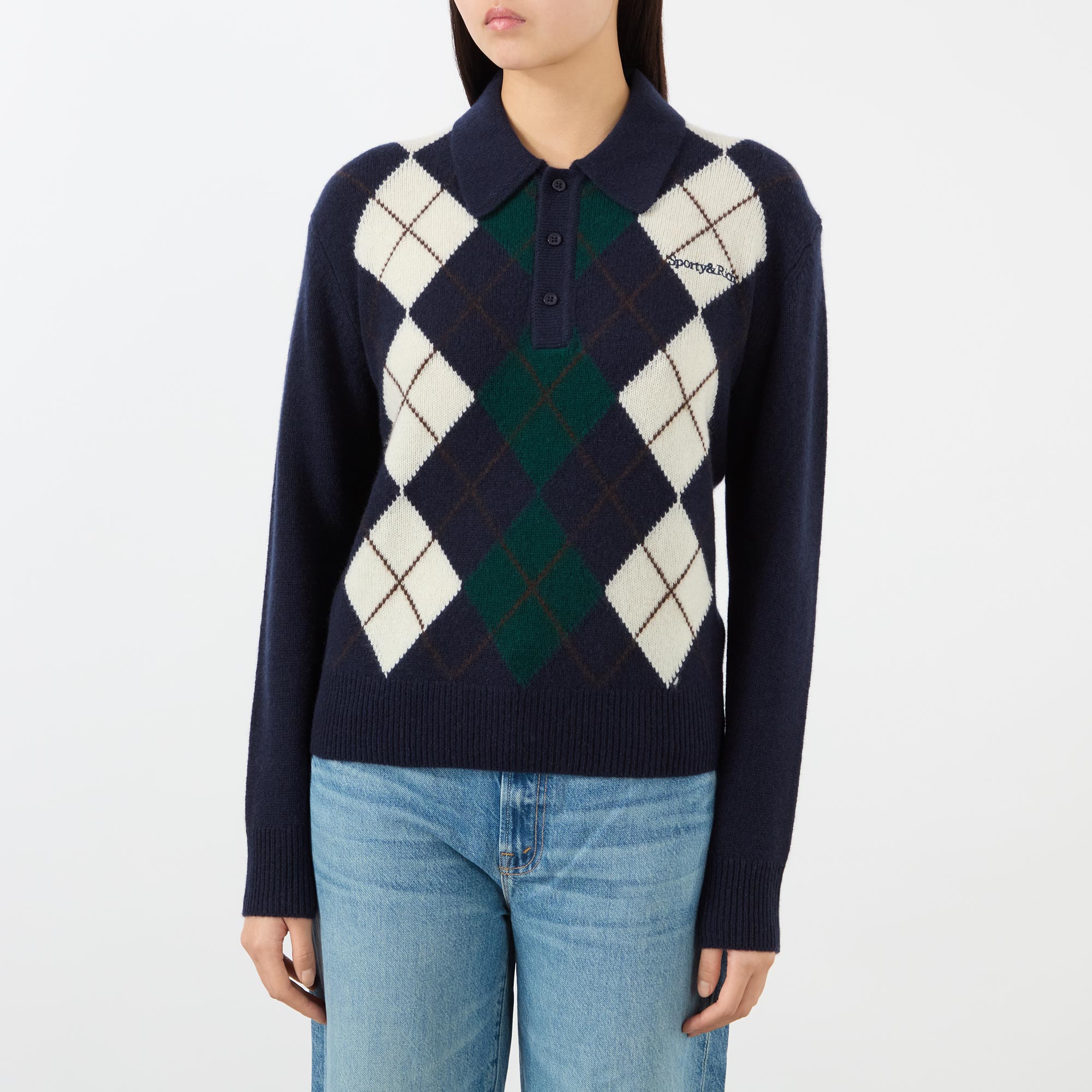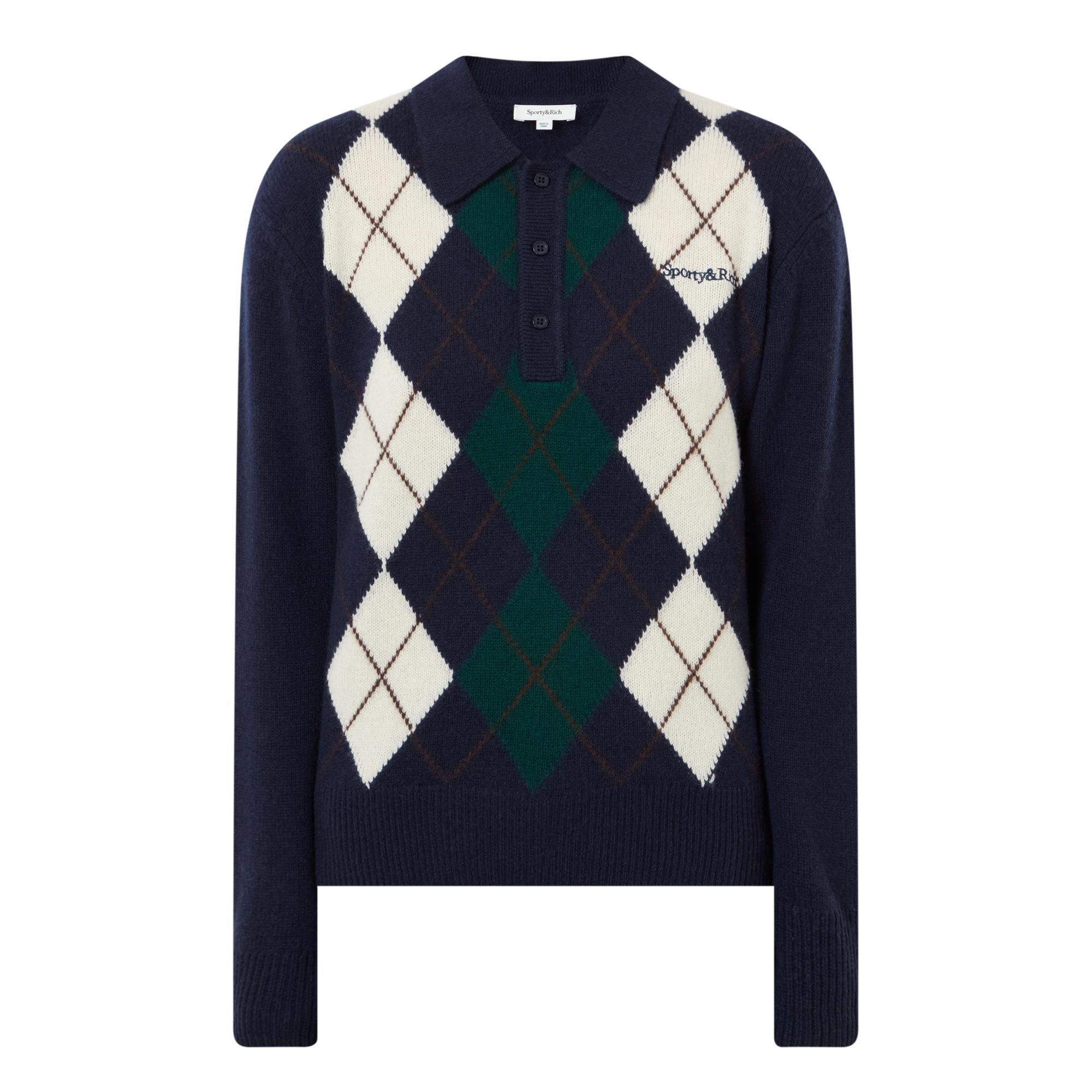 SPORTY & RICH Argyle Knitted Polo Shirt