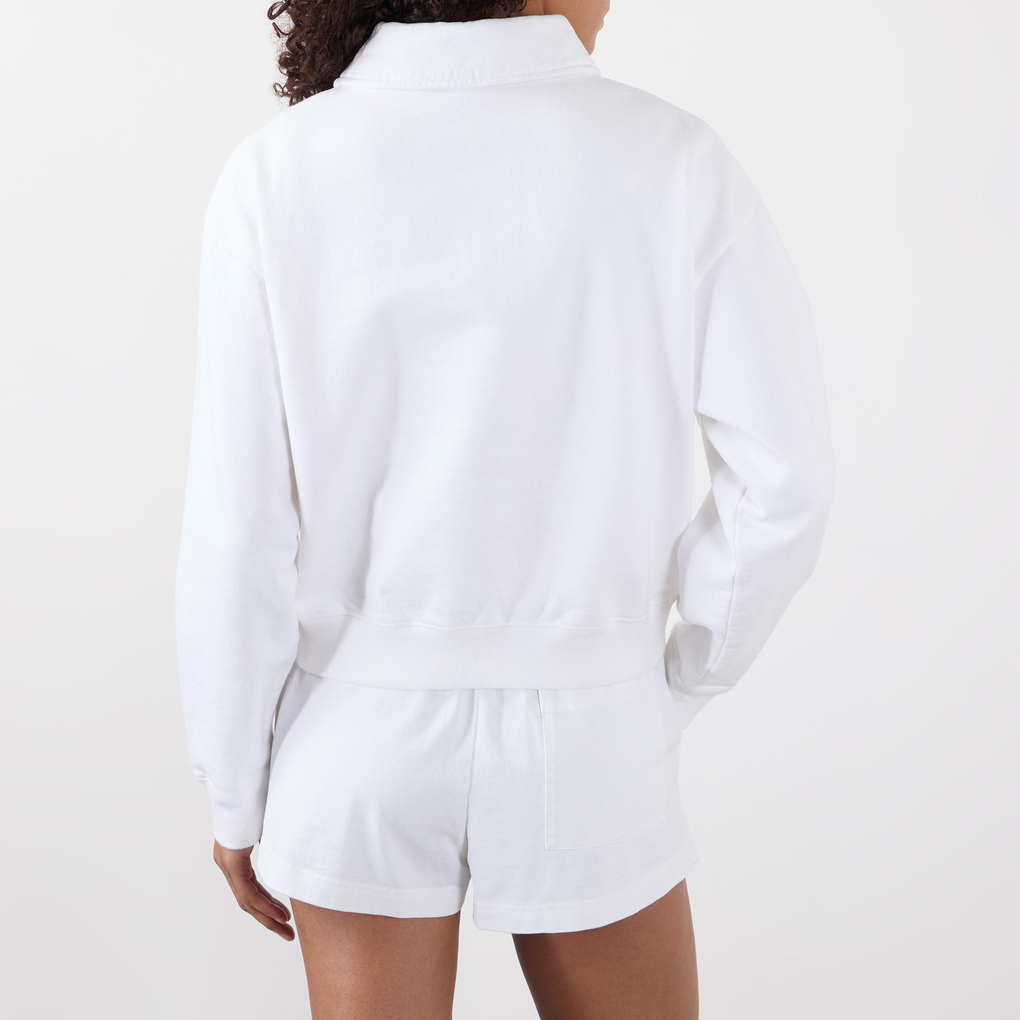 - Polo collar, long sleeves, straight hemline, button fastenings, logo detail