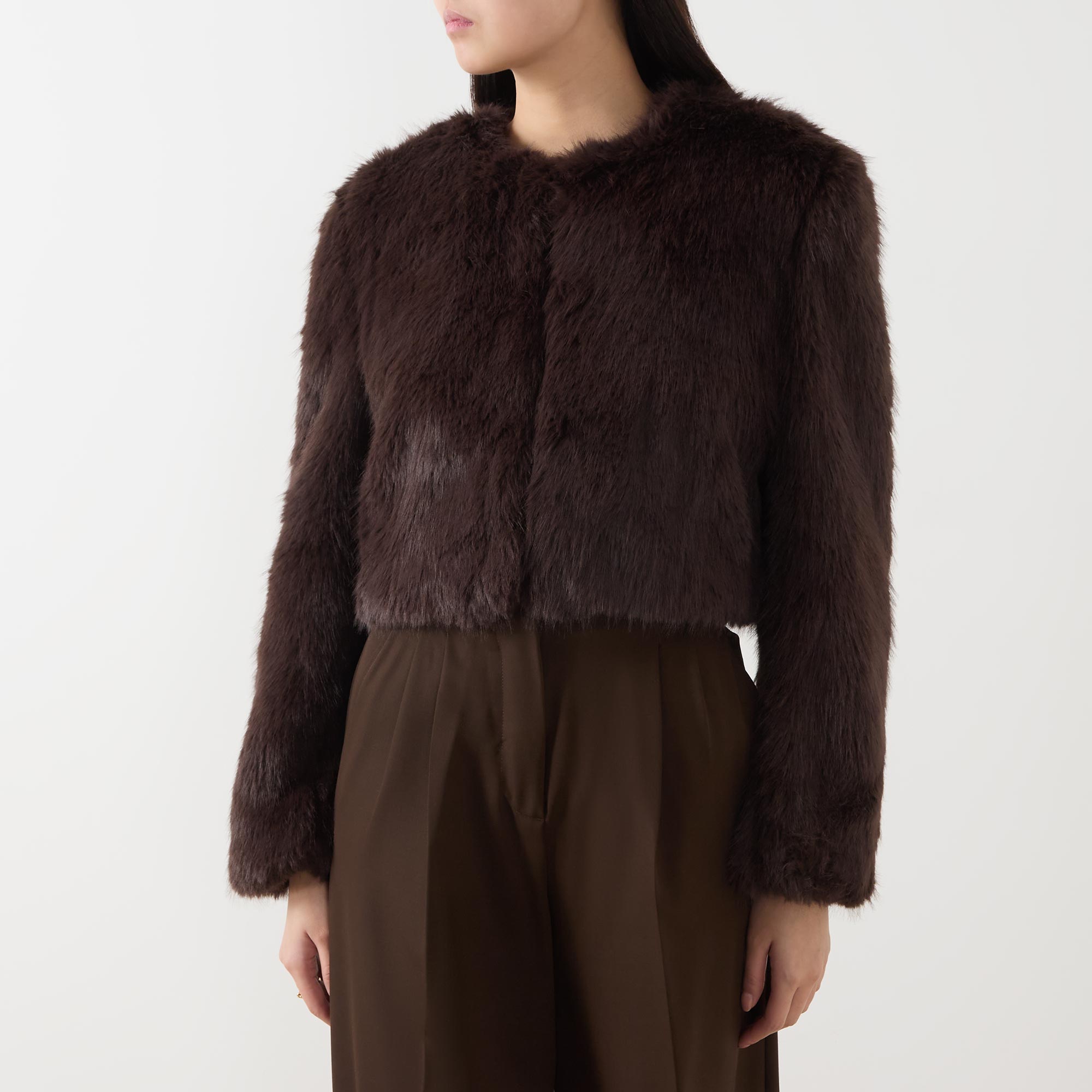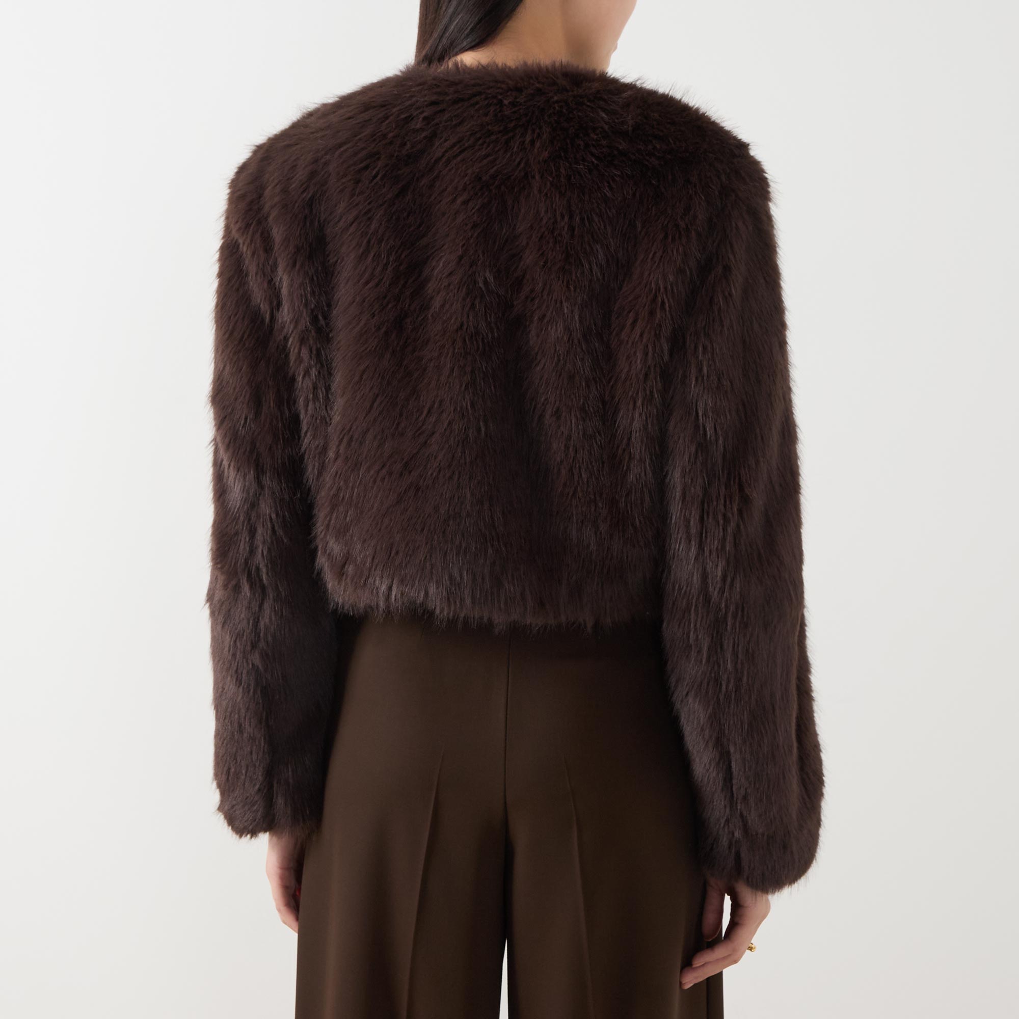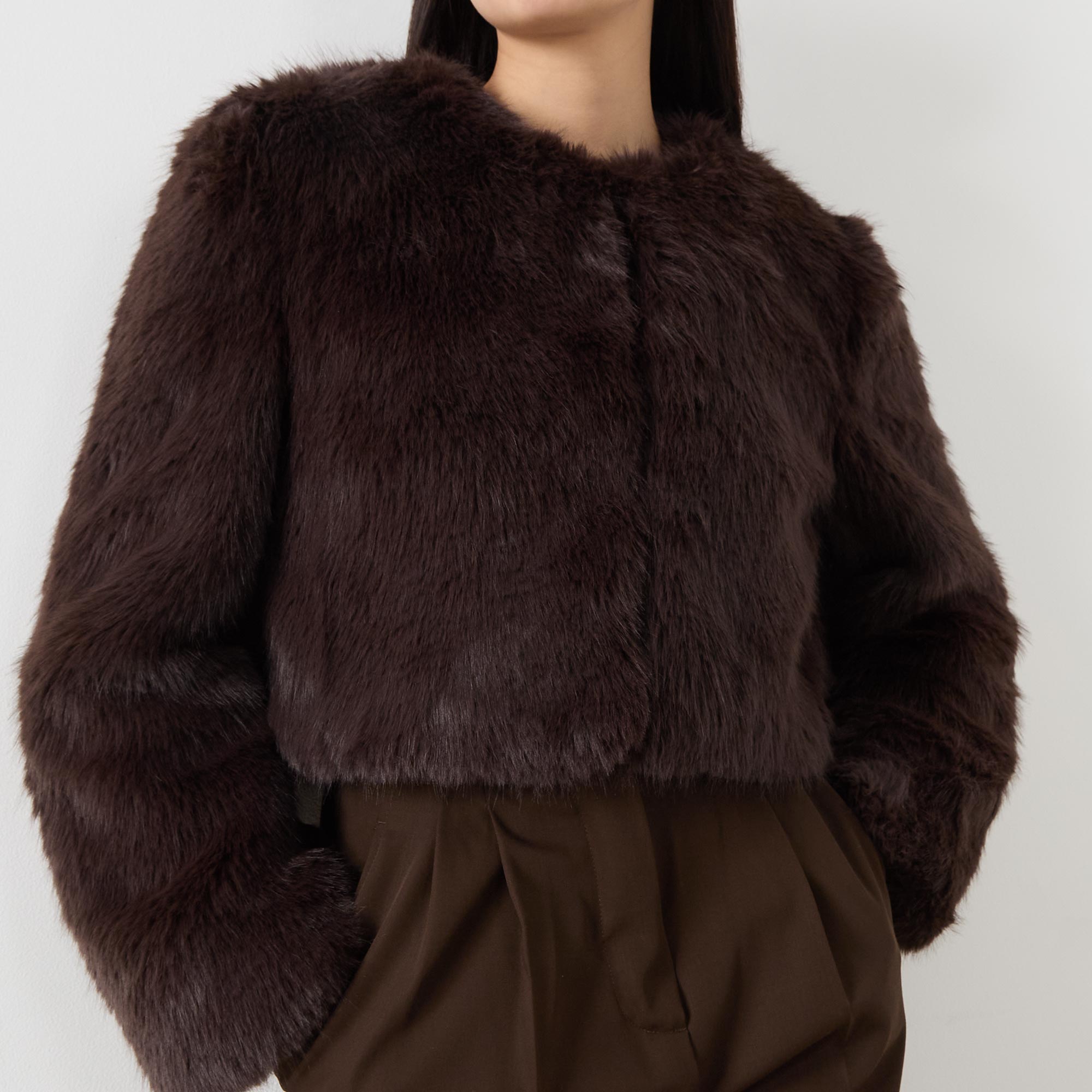 - Round neckline, long sleeves, concealed fastening, soft faux shearling finish