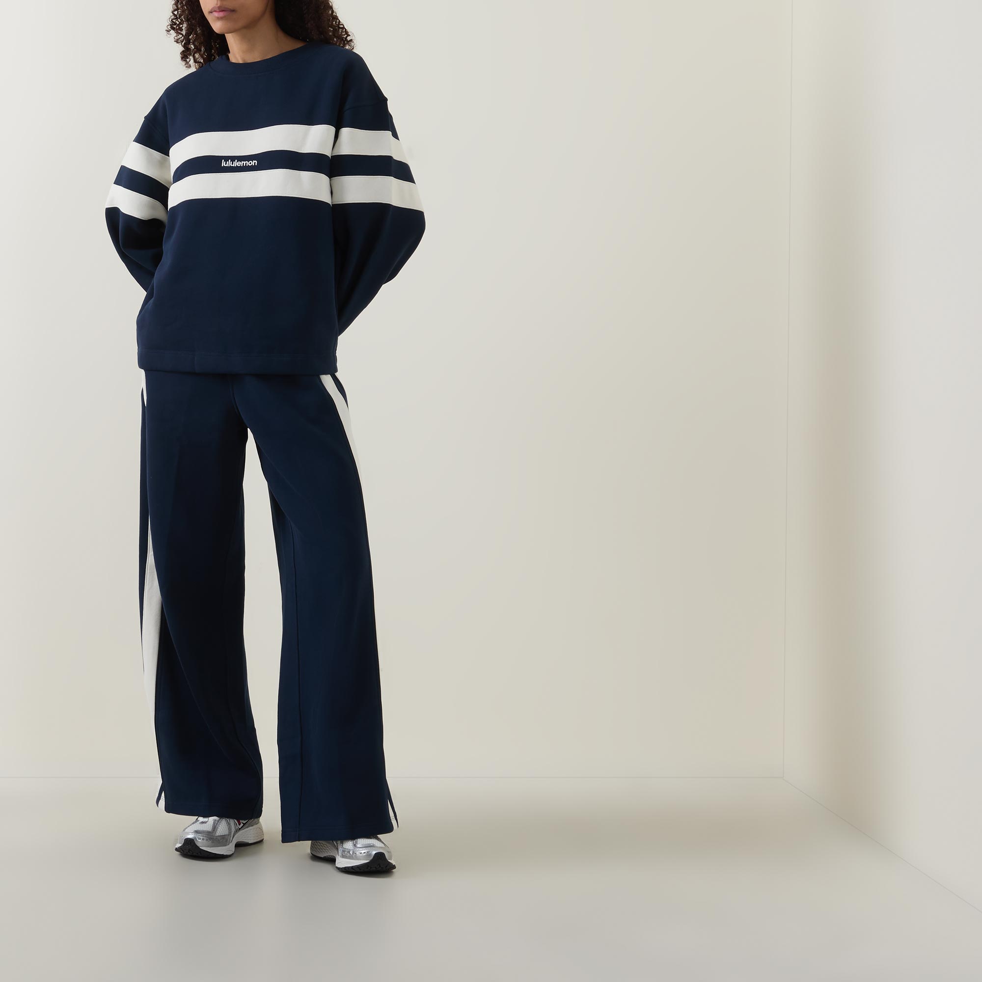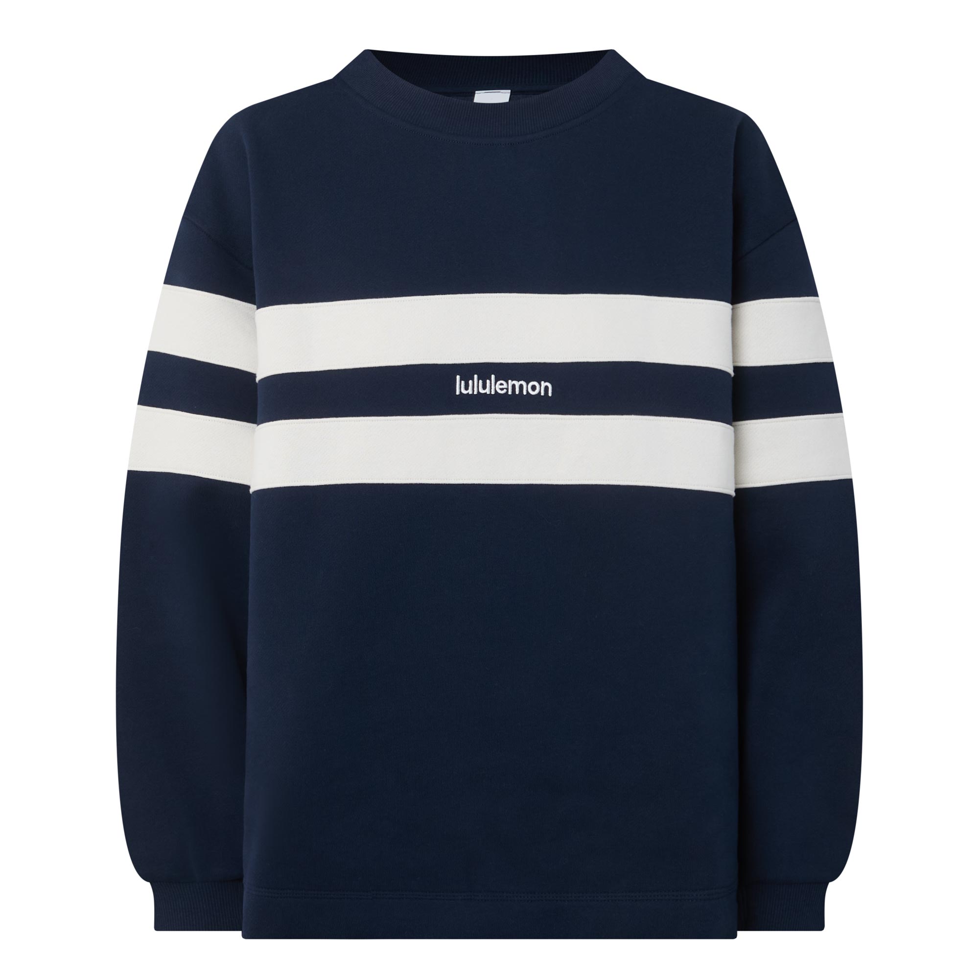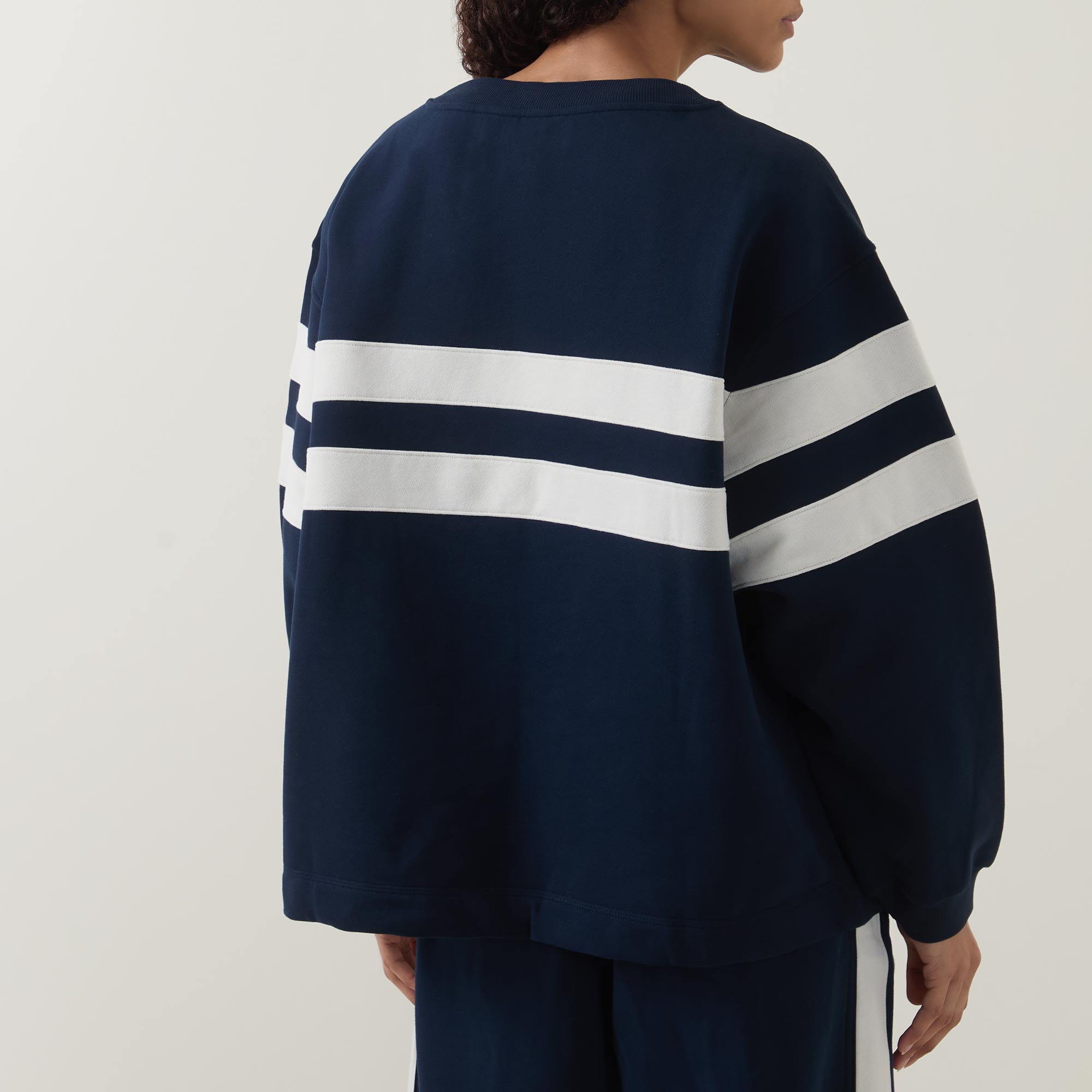 - Features: Crew neck, long sleeves, stripe design, logo detail