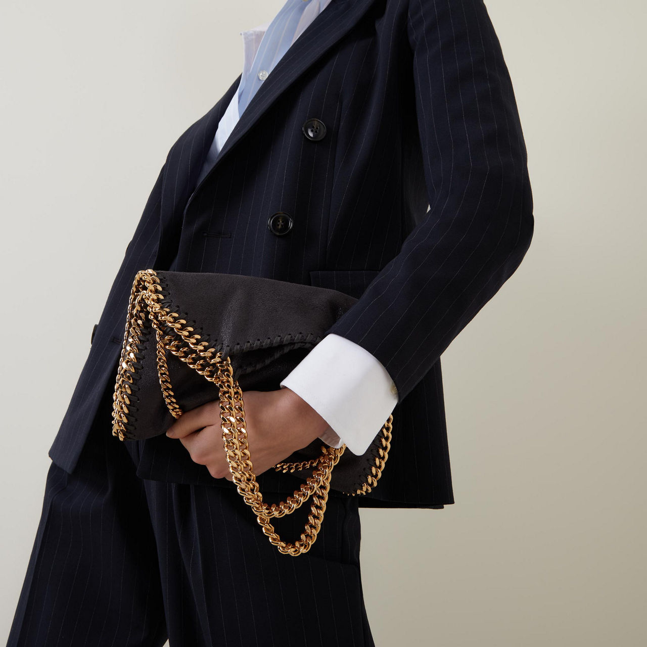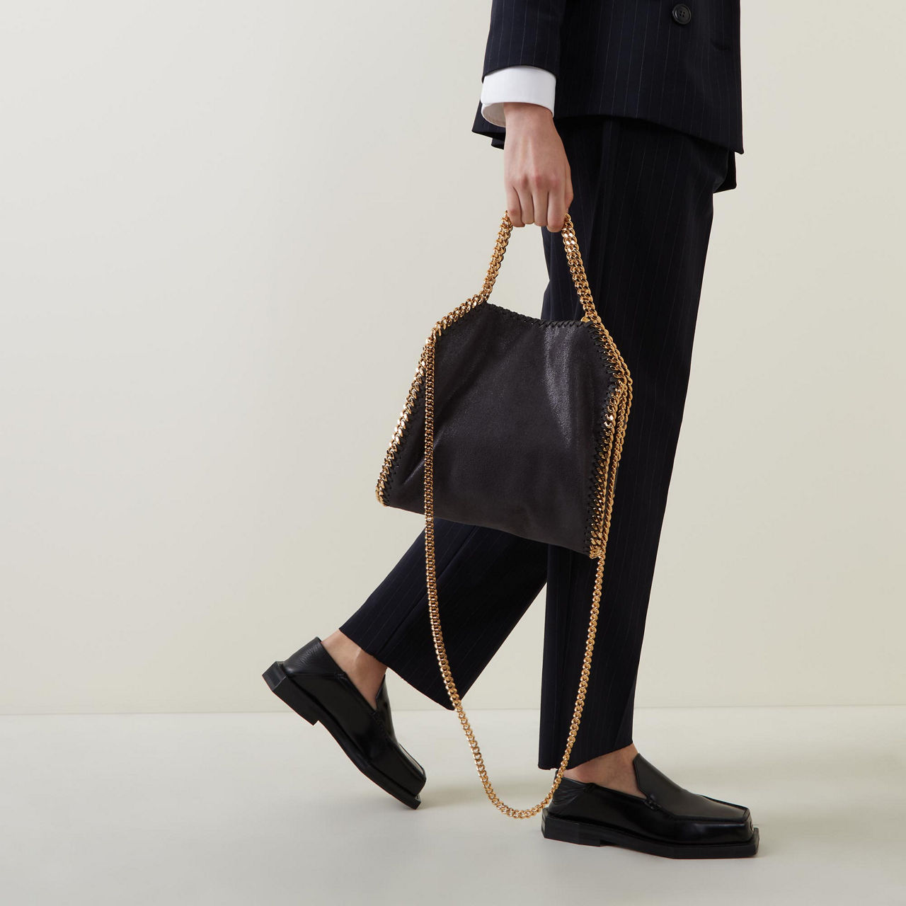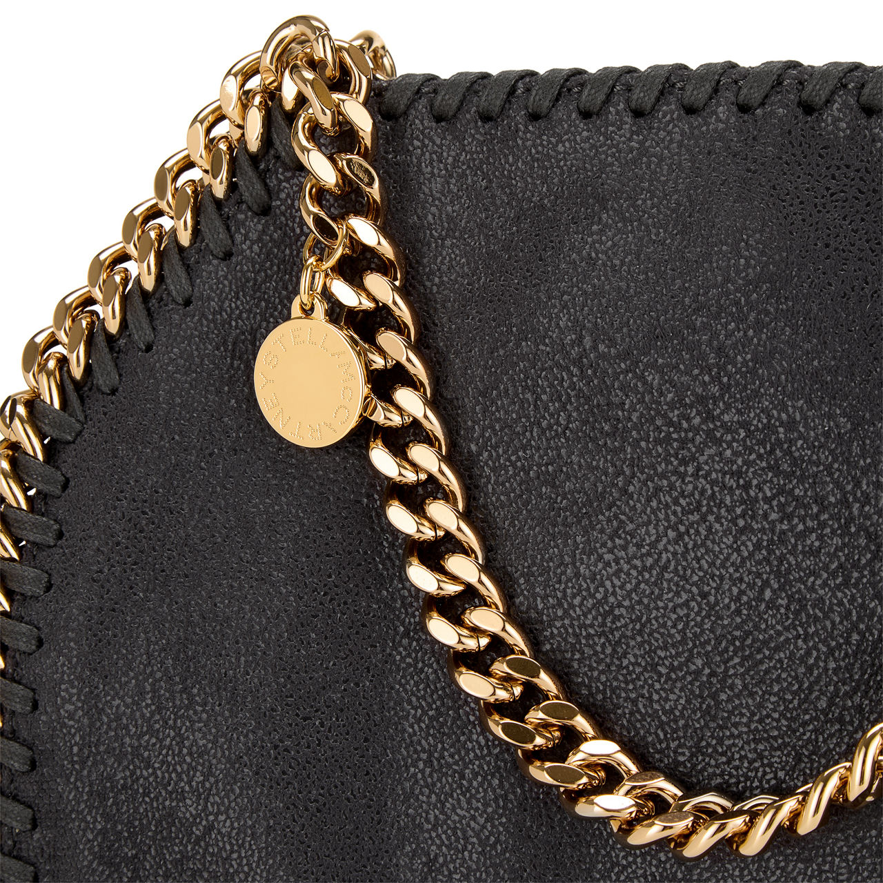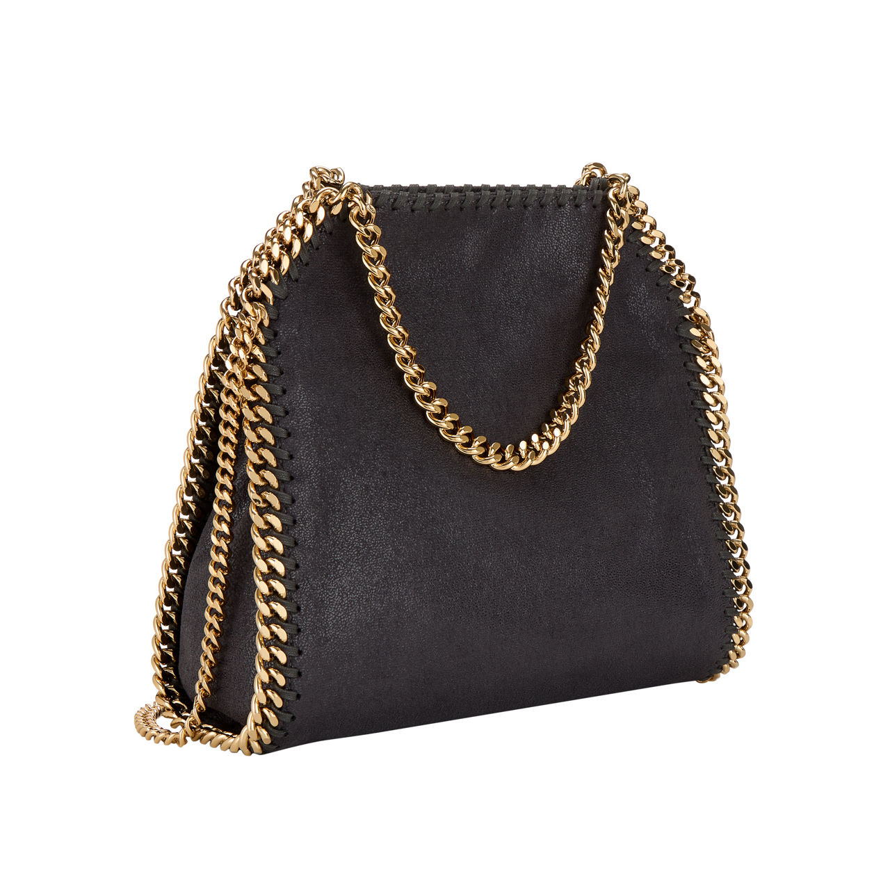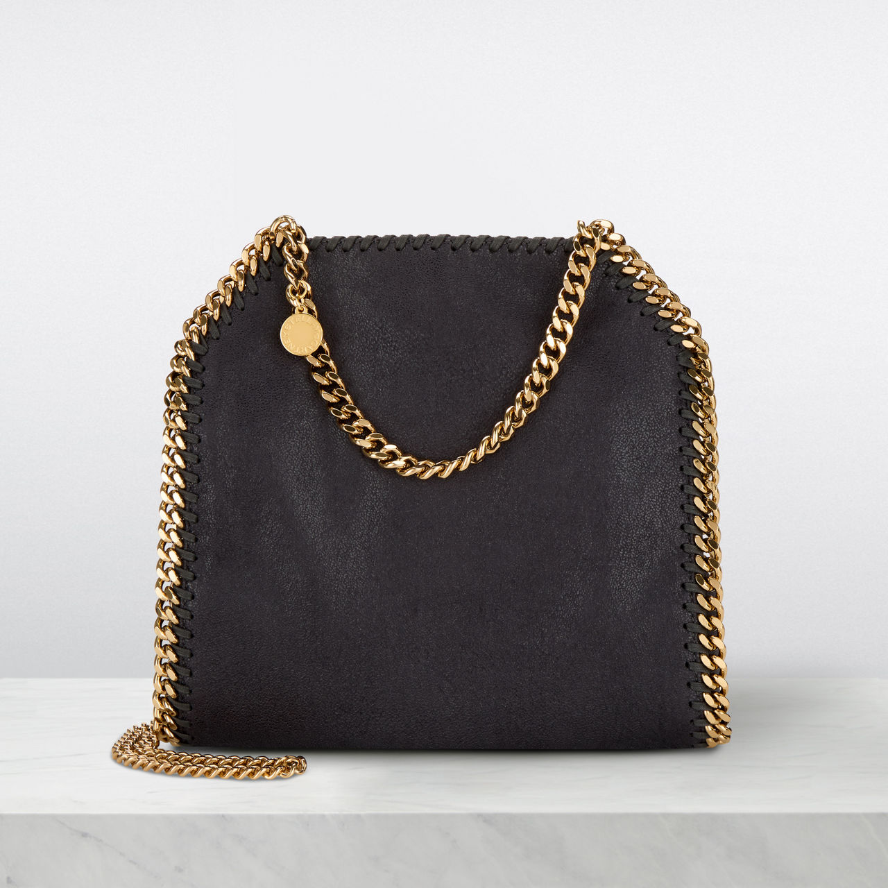 Stella McCartney scales down its iconic Falabella bag this season. A mini version of the London label’s mainstay tote, it’s cut from grained faux leather and trimmed with the signature curb chain.