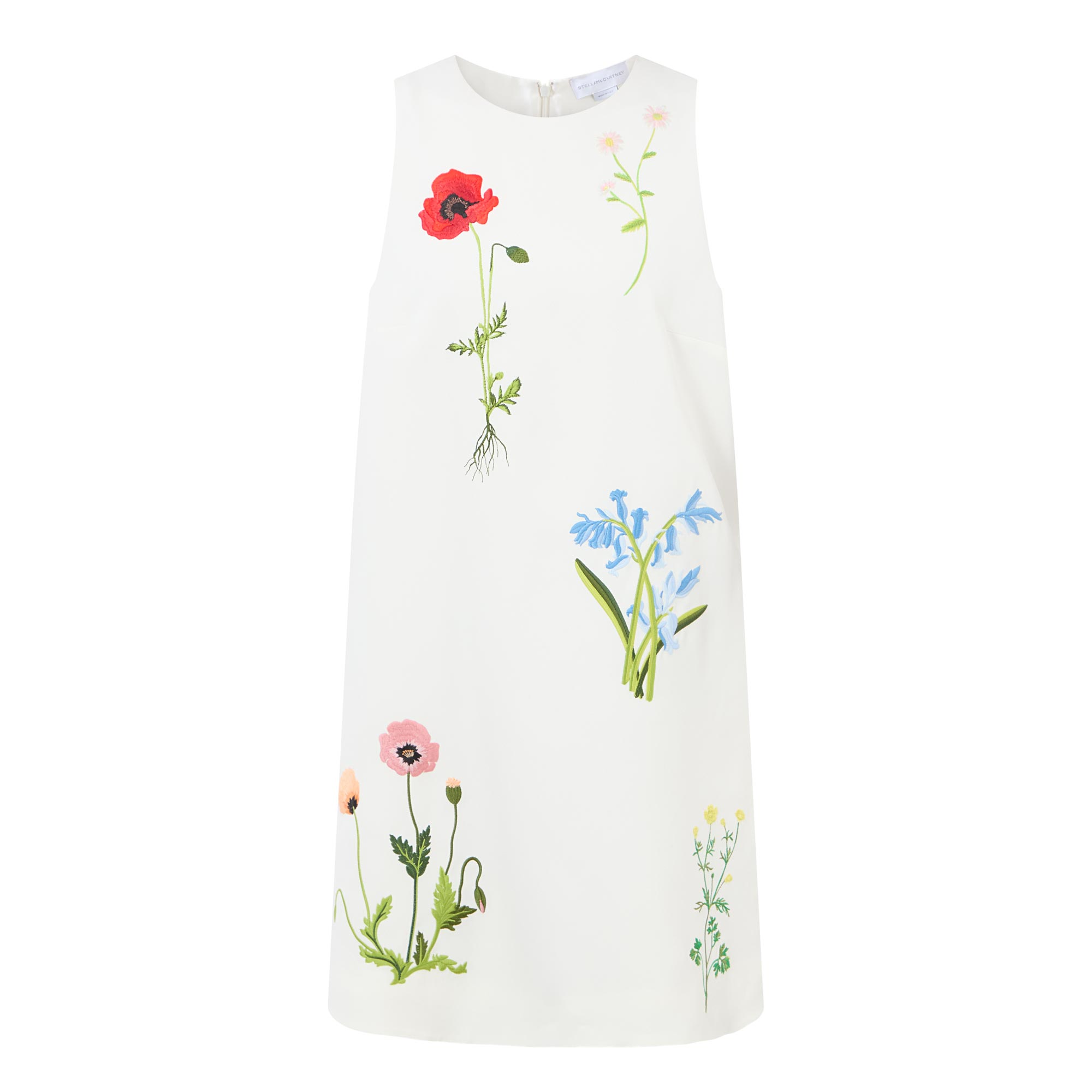 For the new SS26 collection, Stella McCartney turns her focus to Mother Earth, drawing on flora and fauna as key motifs. Take this dress: cut to an elegant shift silhouette, it’s delicately embroidered with flowers across the front, echoing the collection’s theme. Finished with a zip fastening at the back, it falls to a classic mini length- perfect styled with pumps and a clutch for your next garden party.
