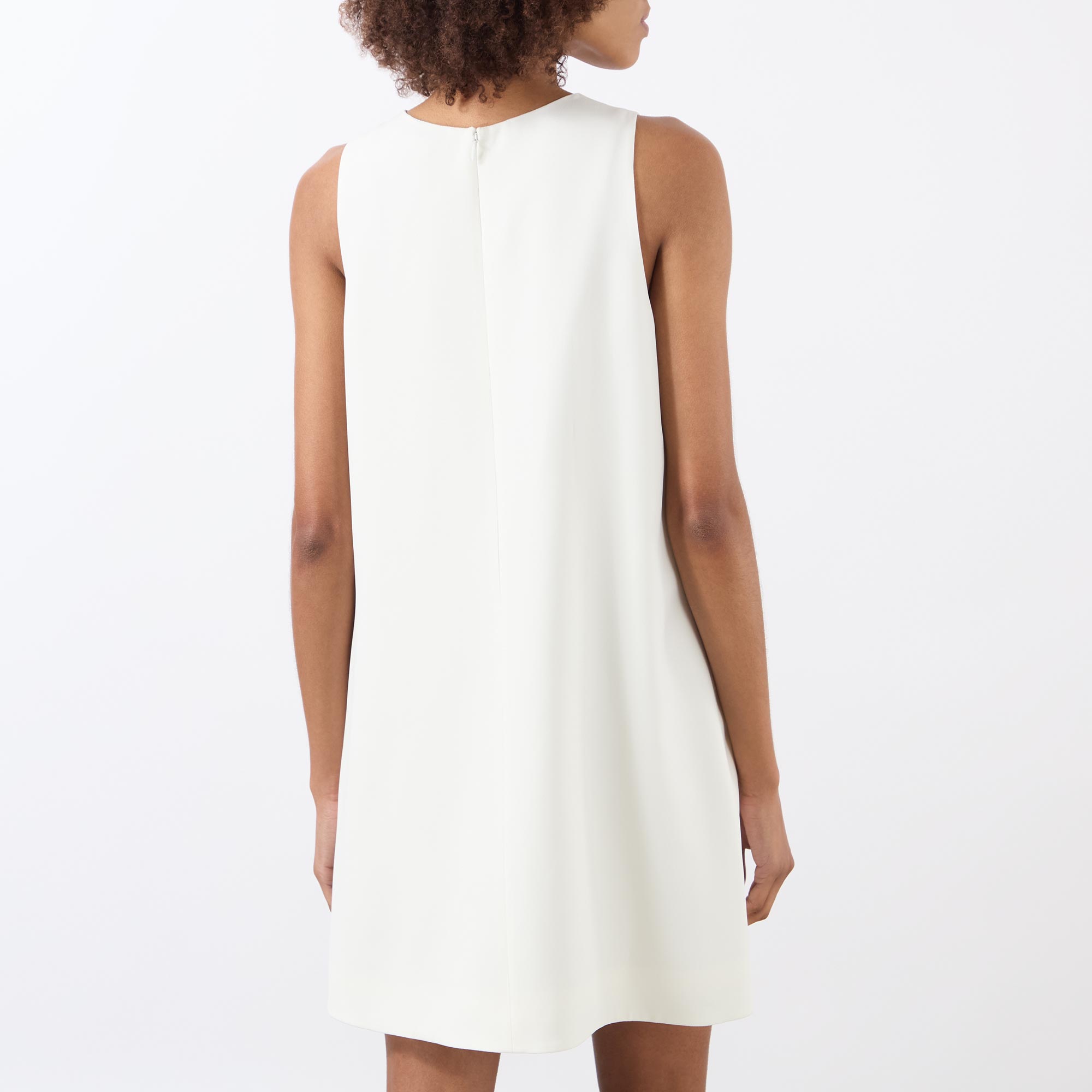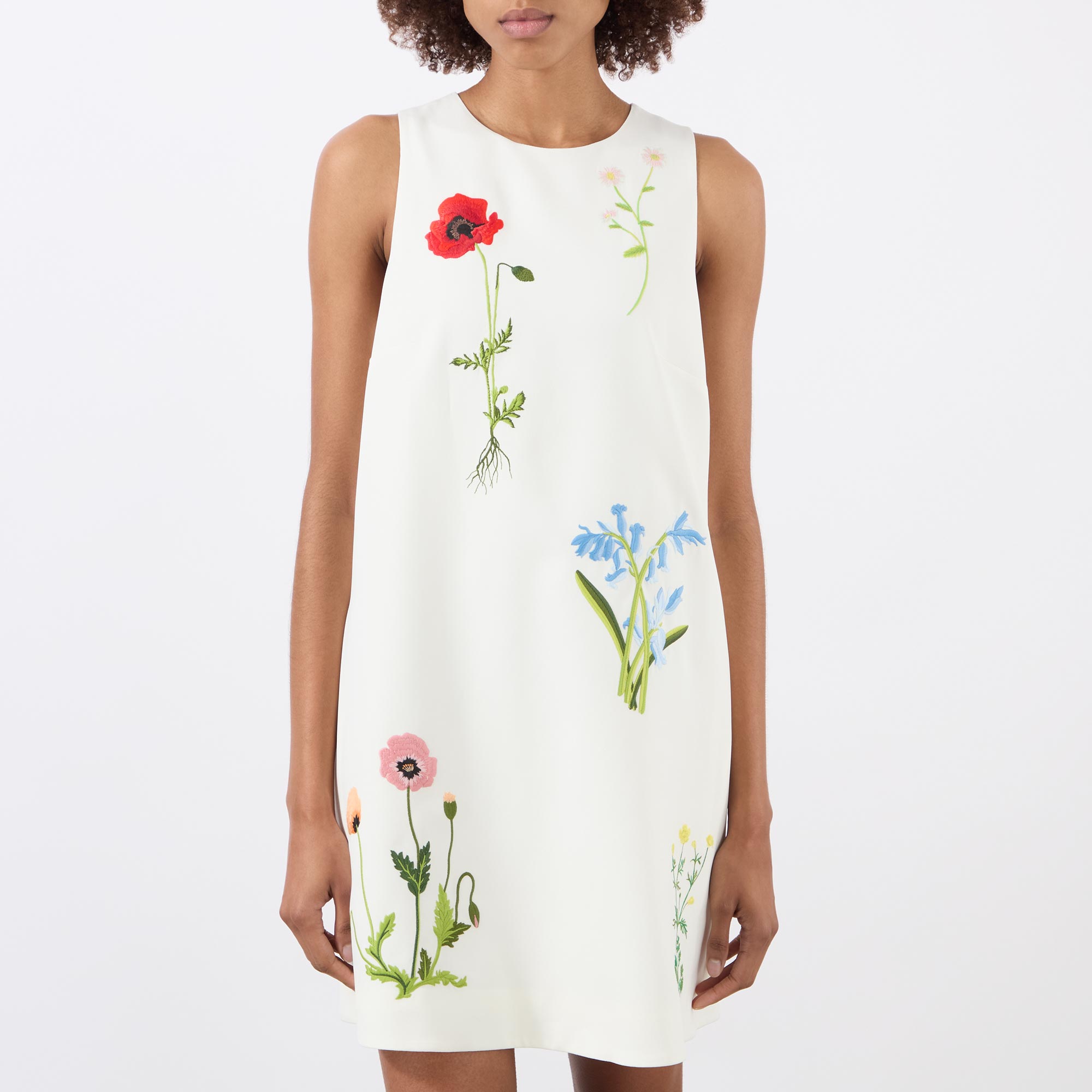 • Sleeveless, round neckline, back zip-fastening closure, floral embroidery, shift silhouette, mini length, smooth fabric