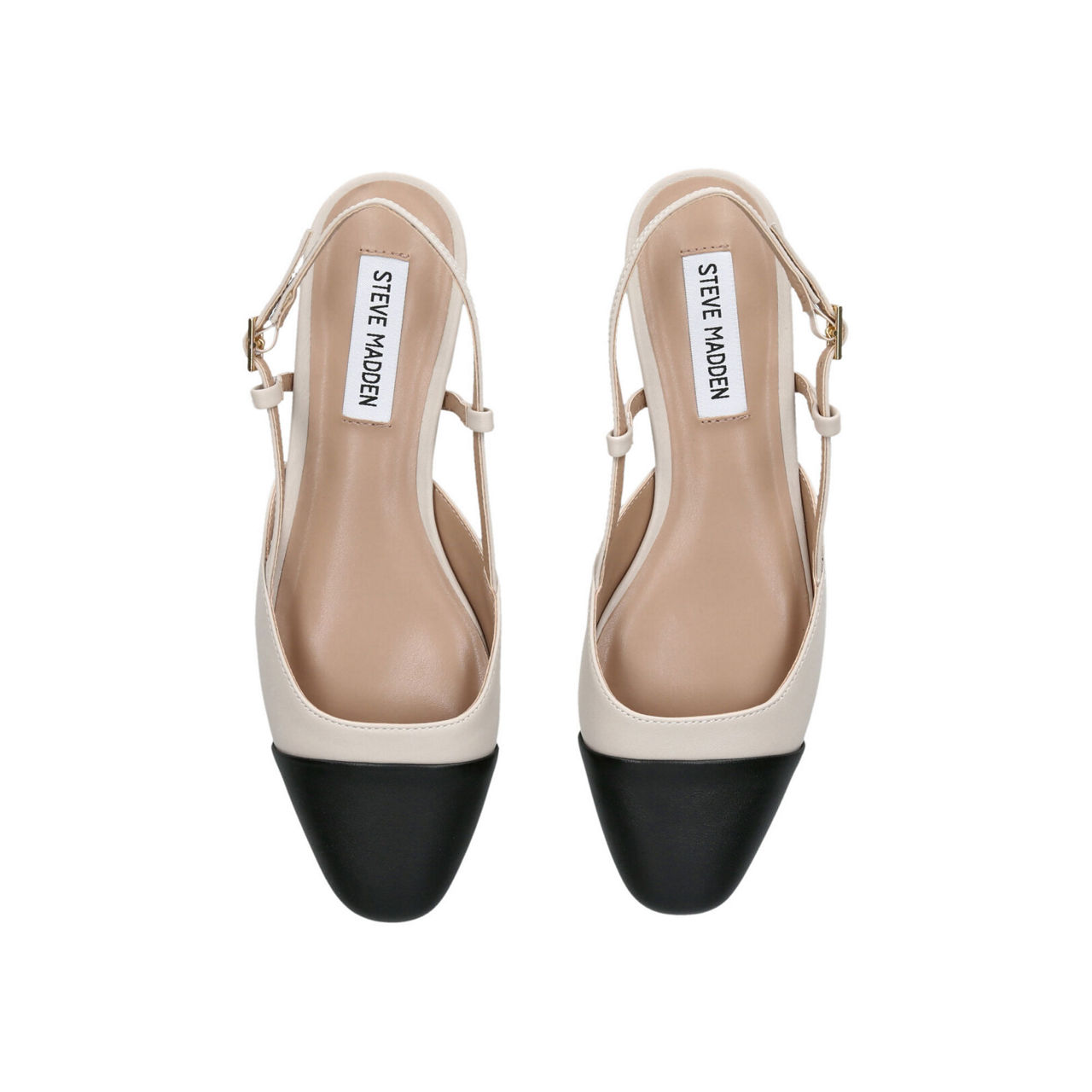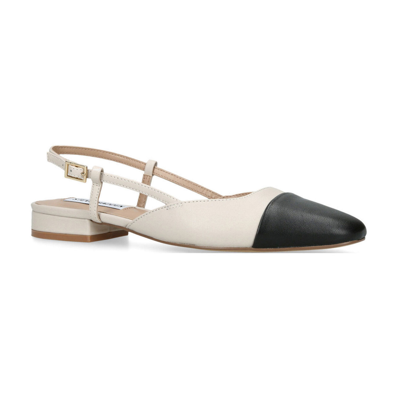 - Almond-shape toe, low vamp, slingback style, buckle fastening, adjustable fit, contrast toe box