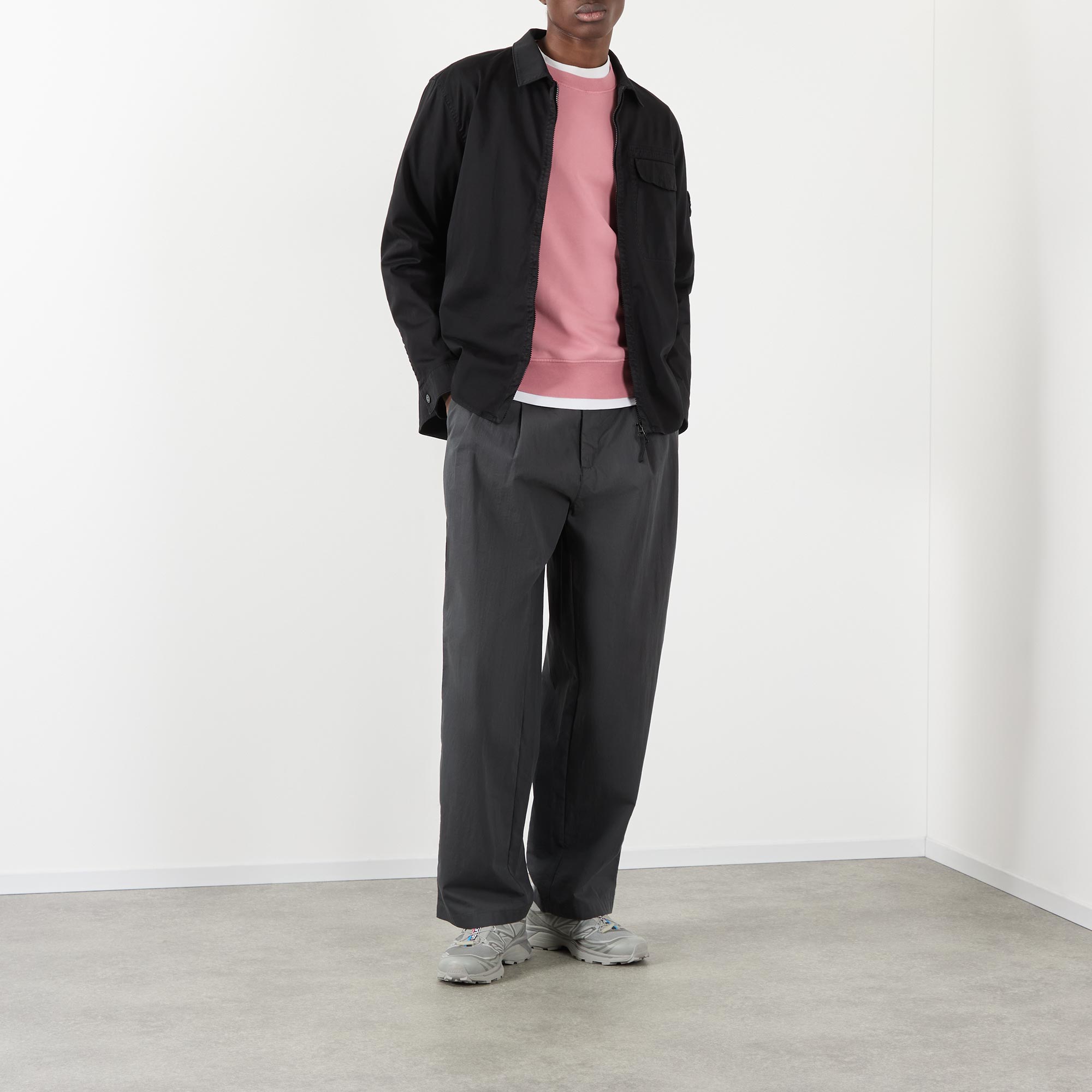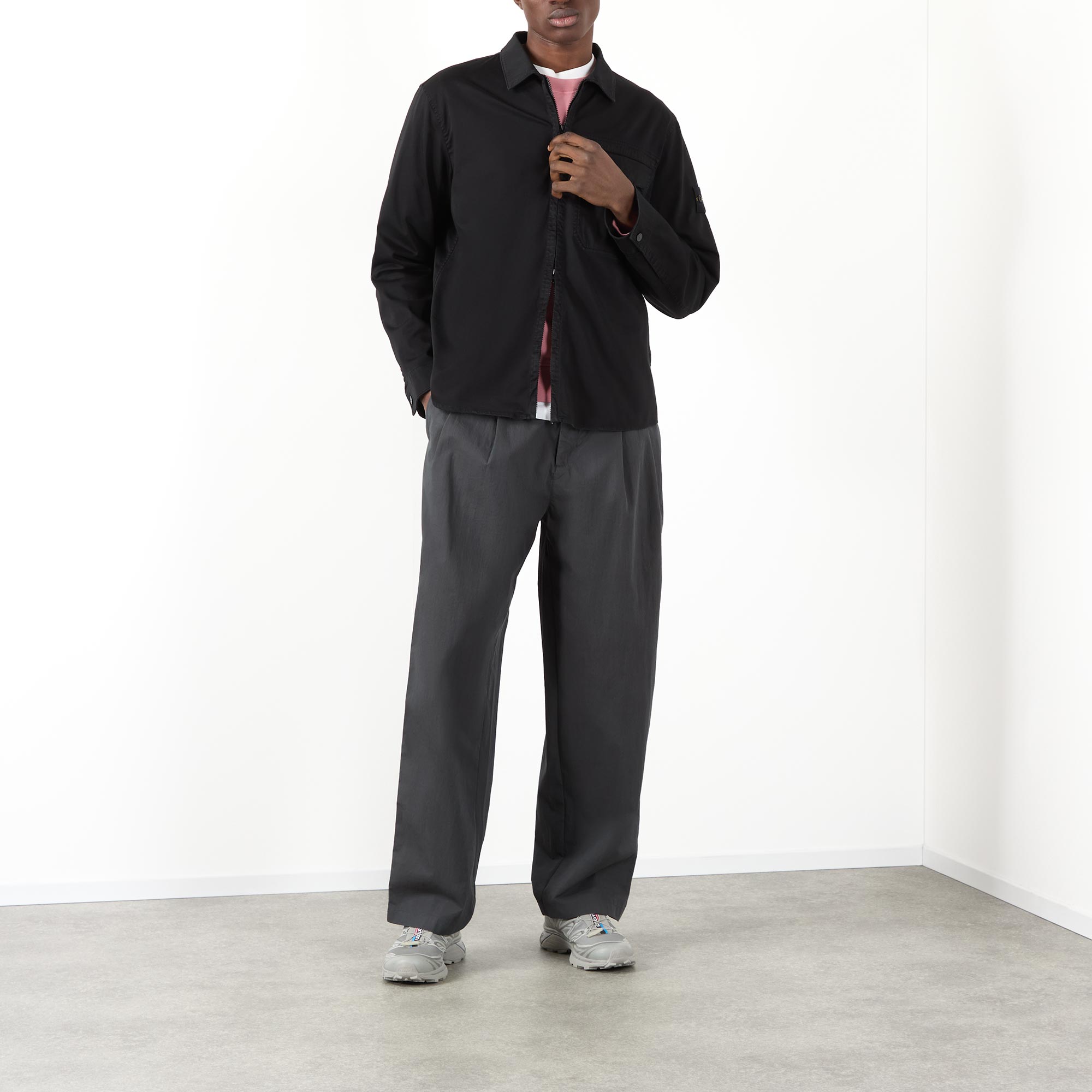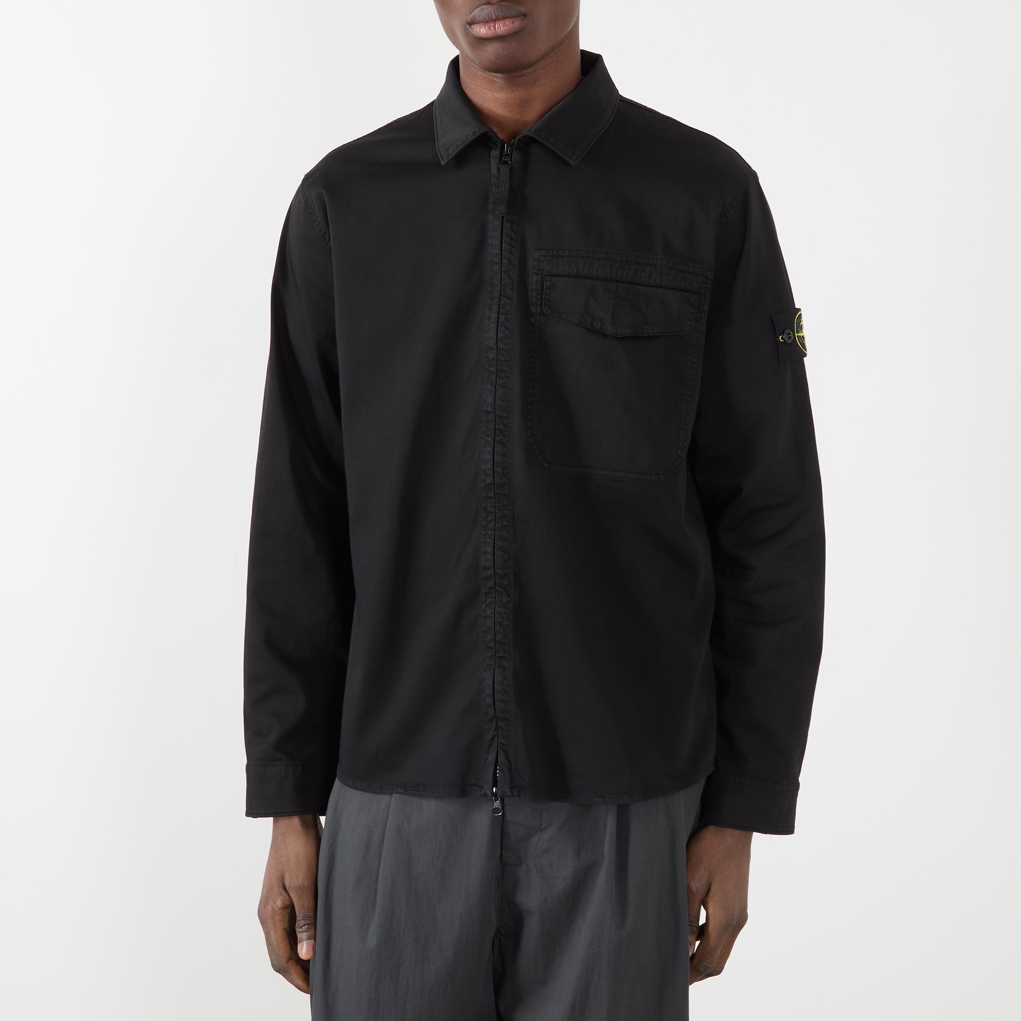 - Garment-dyed, long sleeves, pointed collar, zip fastening, chest pocket, logo patch on sleeve