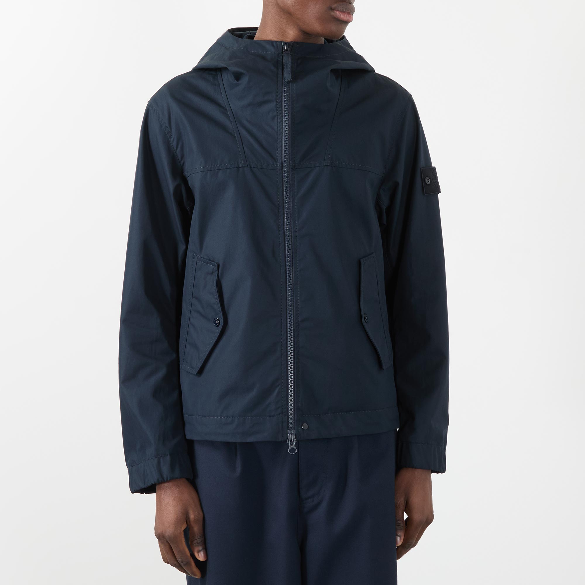 - Fixed hood, long sleeves, two-way tonal front zip fastening, two angled flap pockets with snap button fastenings, straight hem, tonal logo patch