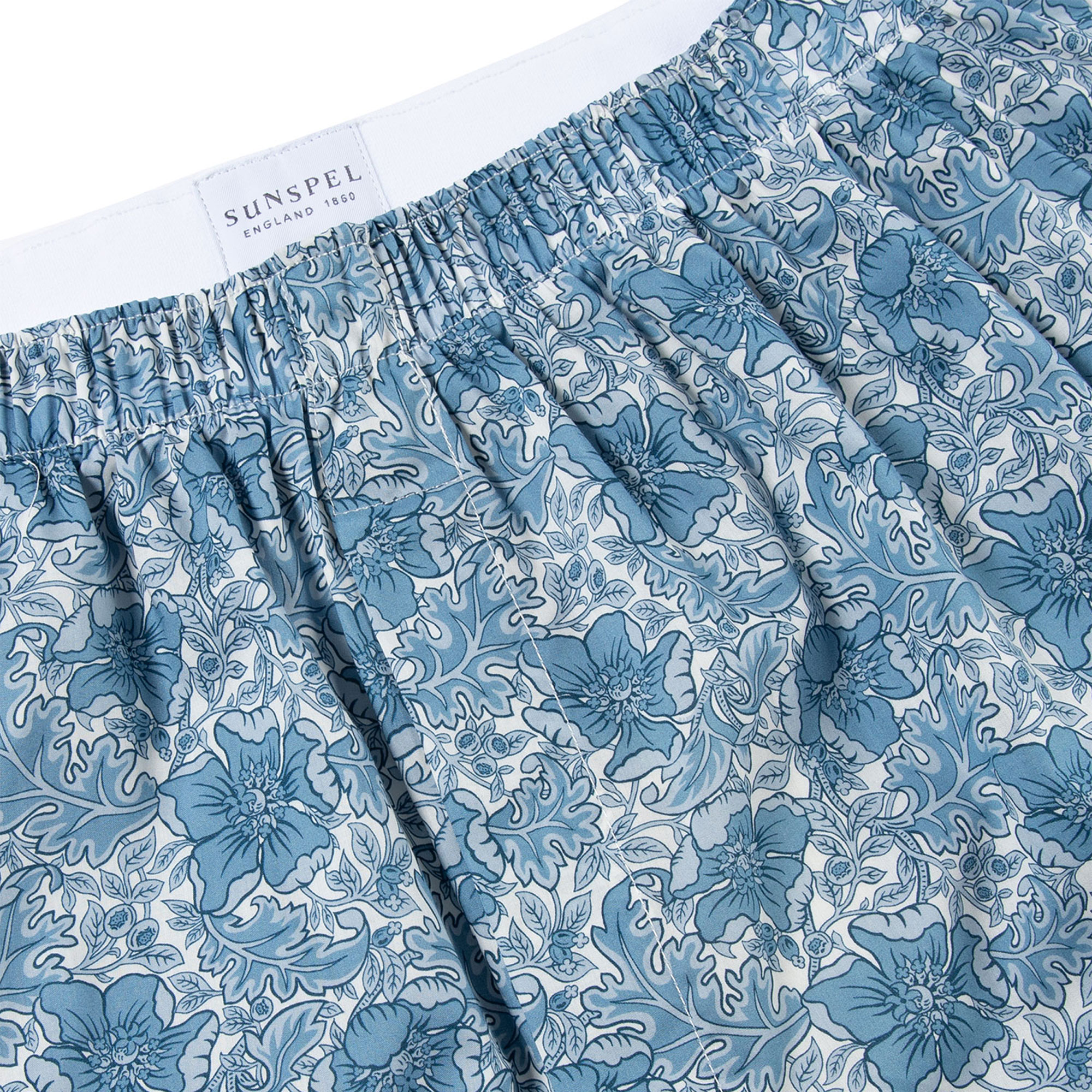 - Open fly, back panel, enclosed seams, elasticated waist, Liberty floral print