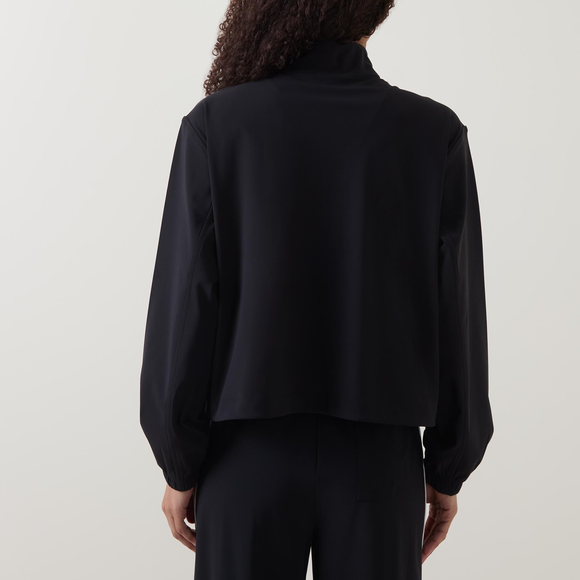 • Features:Relaxed fit with tapered sleeves and a bungee at the hem to create a blouson effect, two side pockets