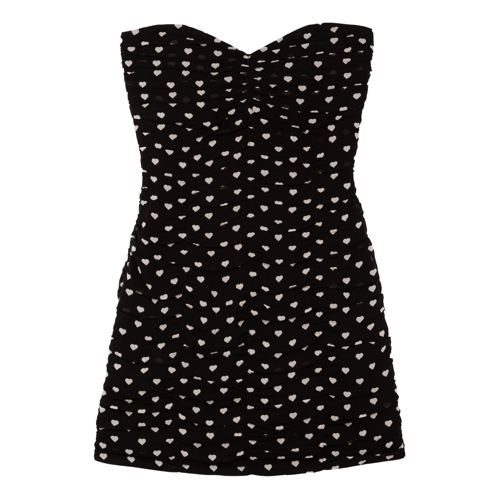 - Heart print, mini length, smocked style, strapless, zip fastening