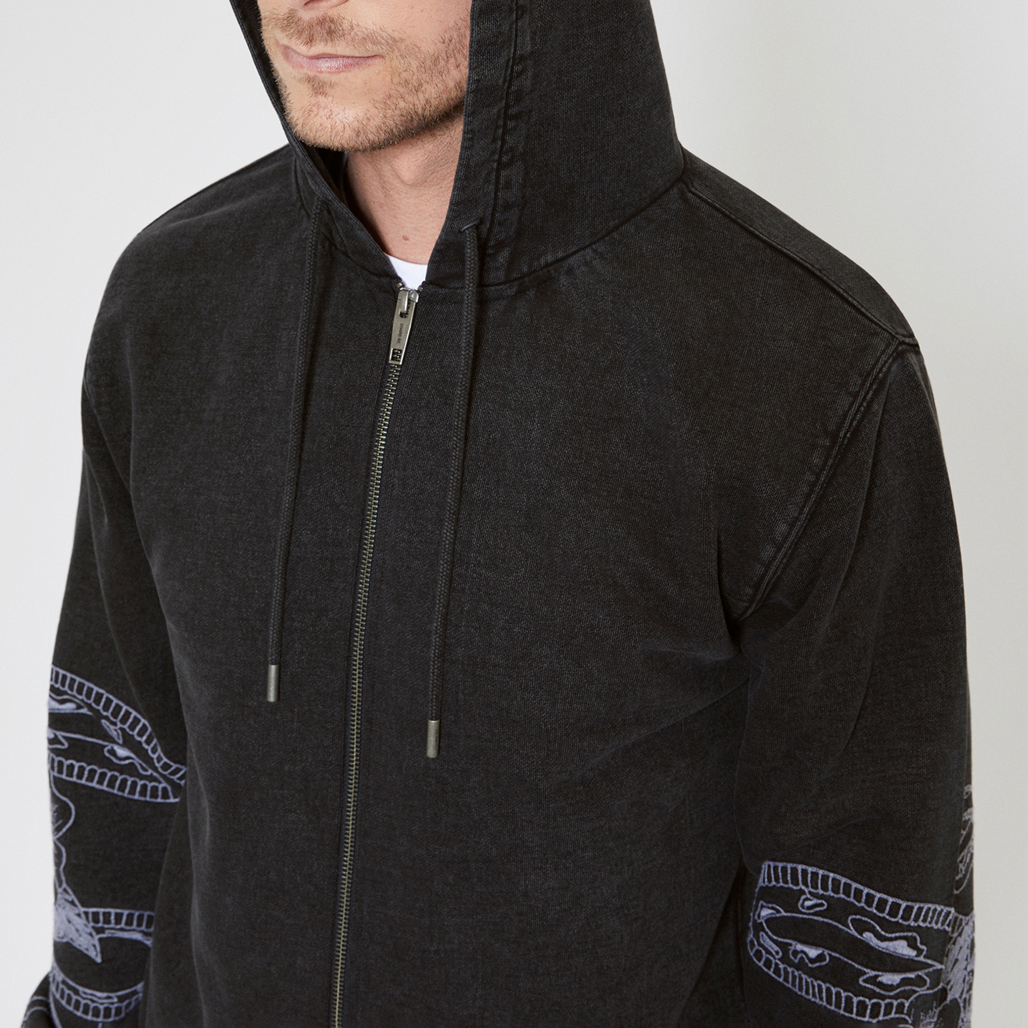 THE KOOPLES Snake Sleeve Drawstring Zip Hoodie