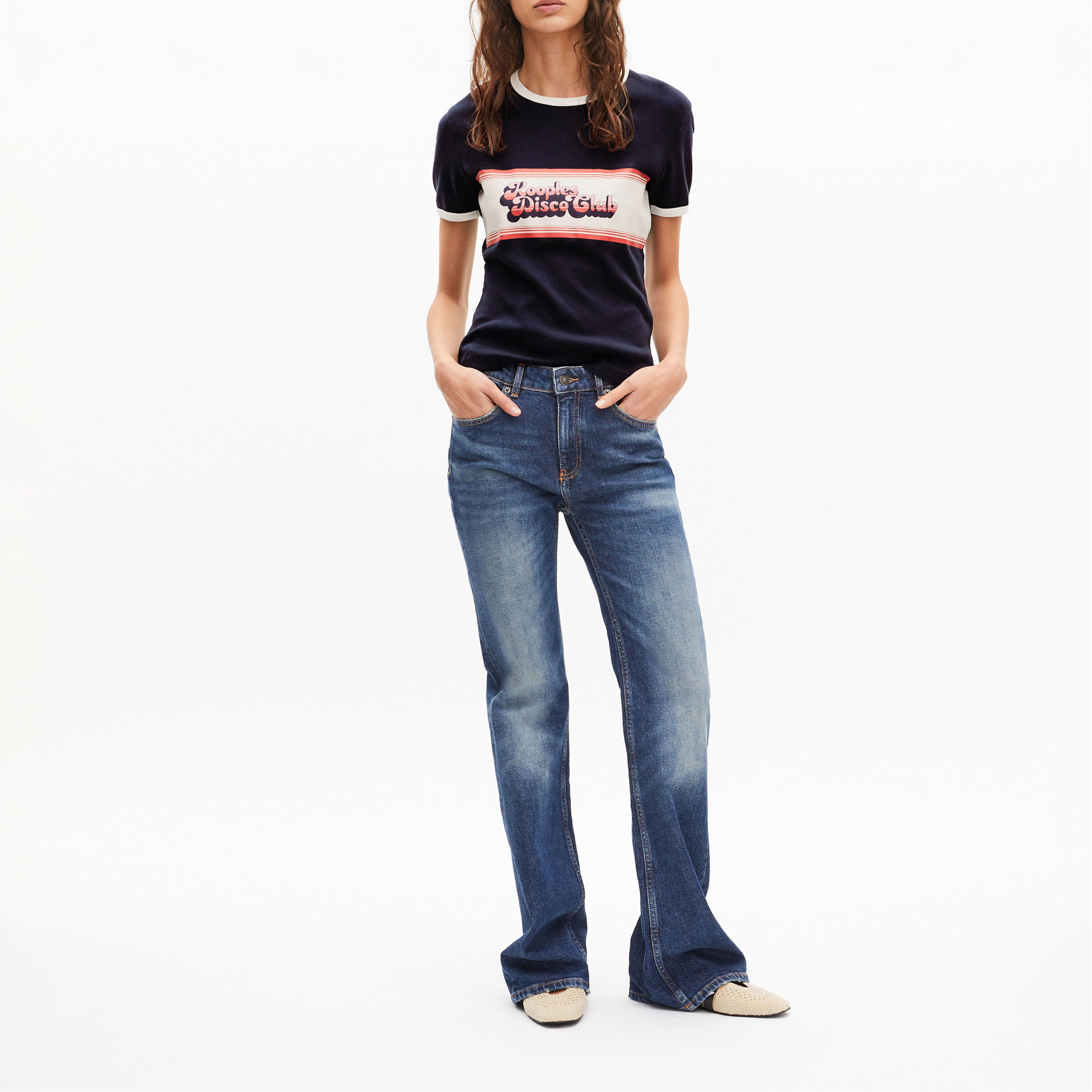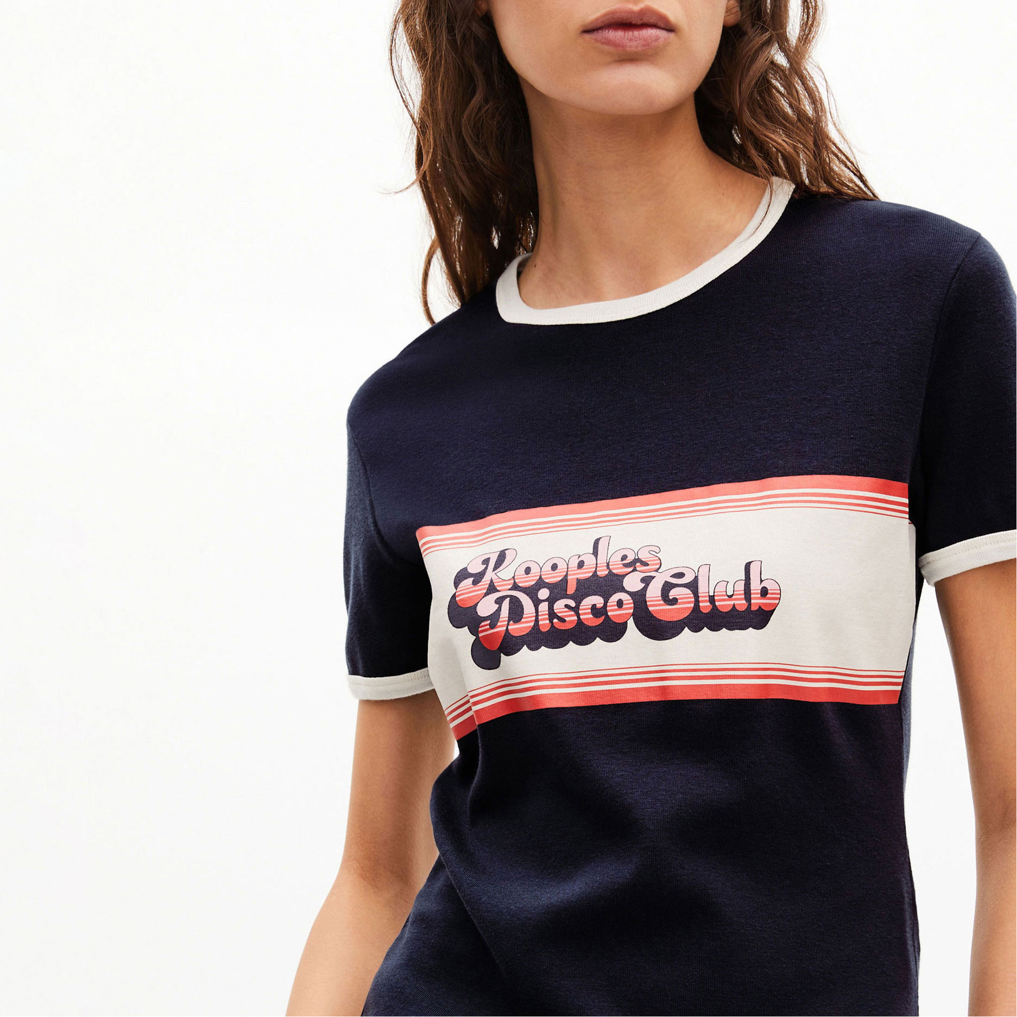 • Disco Club' silk-screen print, round neckline, short sleeves