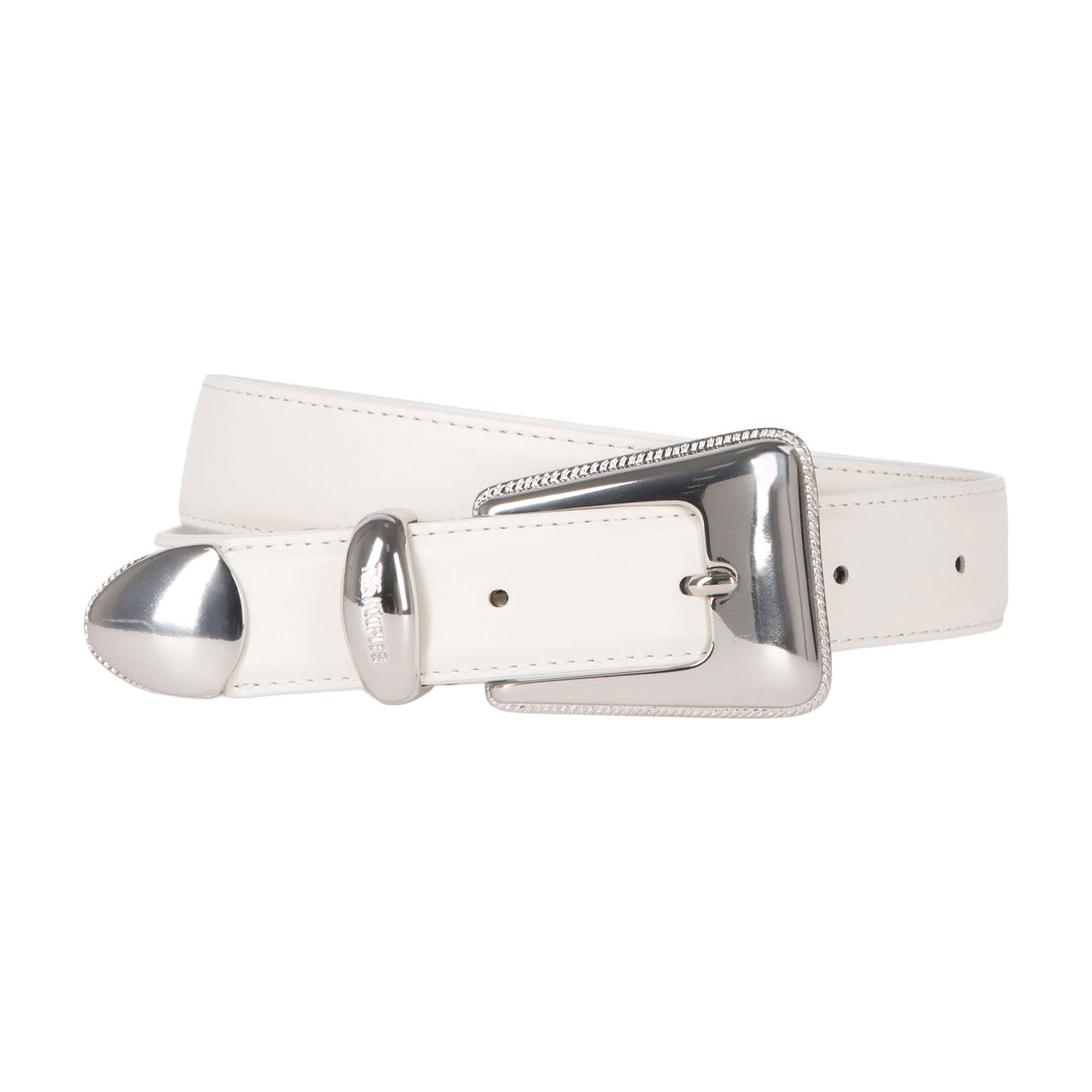 - Western style, silver-tone buckle, smooth leather