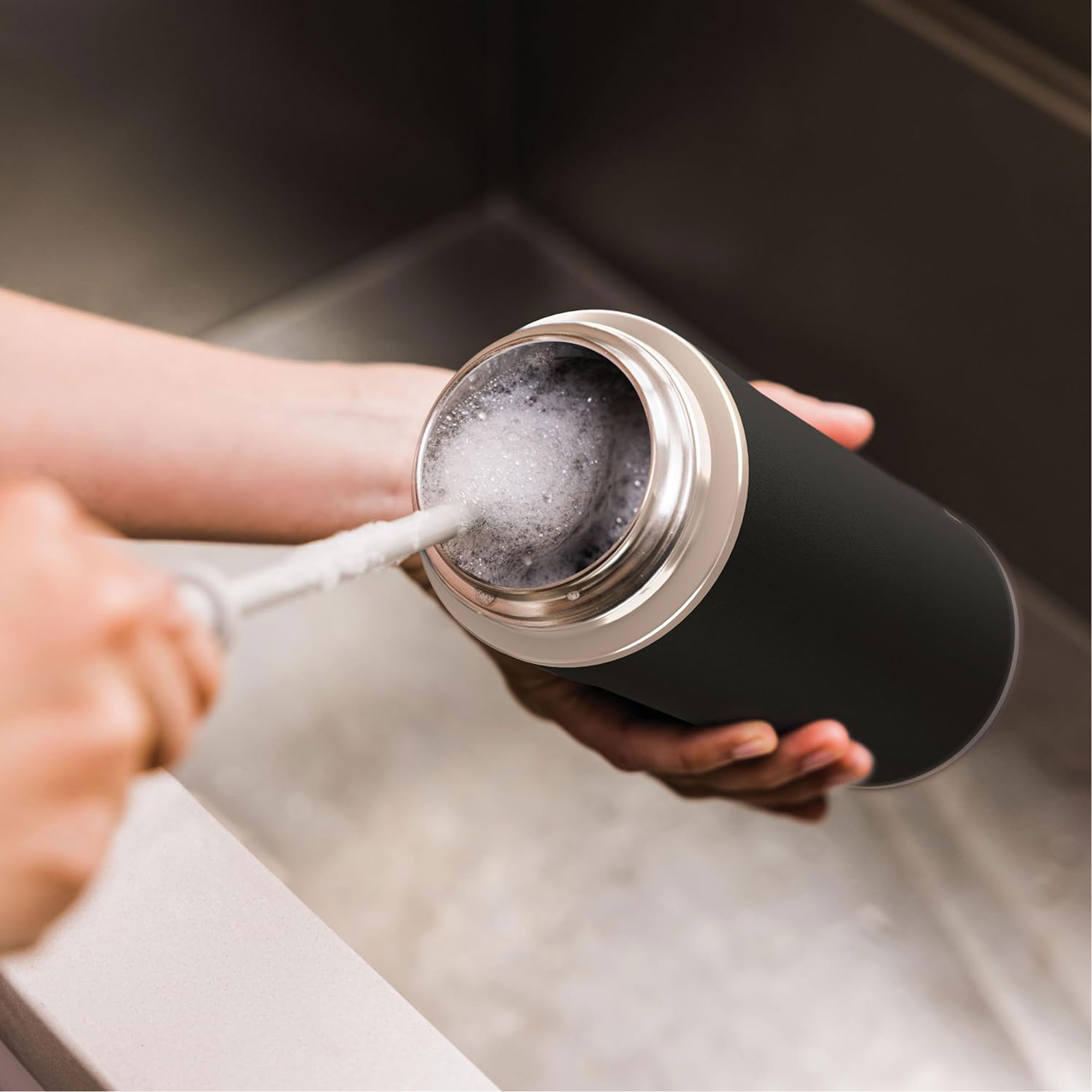 Place your travel bottle in the dishwasher when it needs a clean. To keep it in tip top shape, hand wash it with warm, soapy water. You can even remove and handwash the gaskets from the lid for a deeper clean.